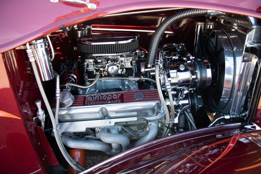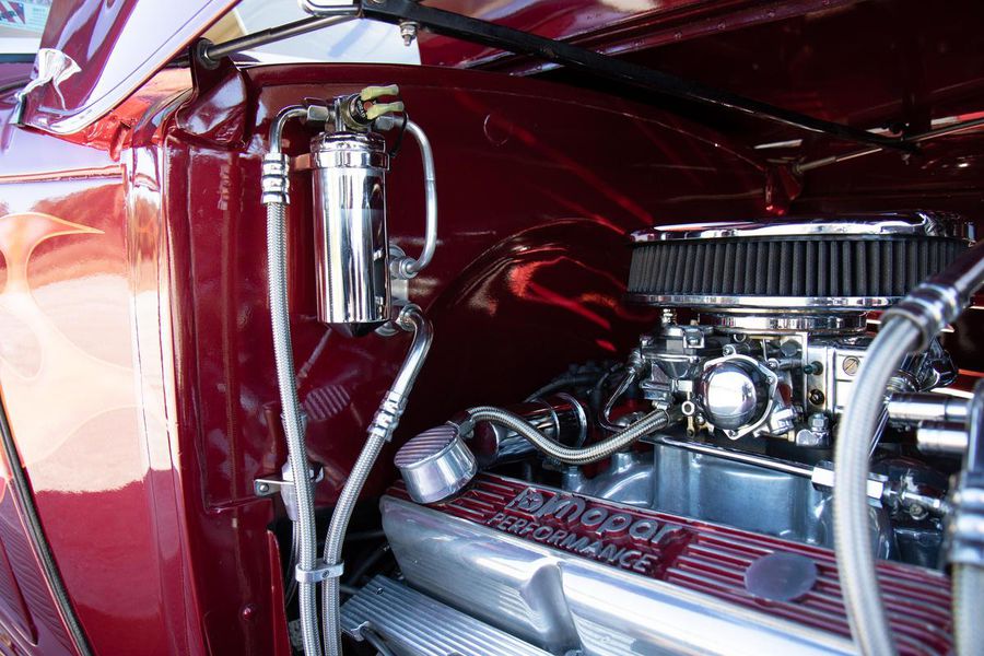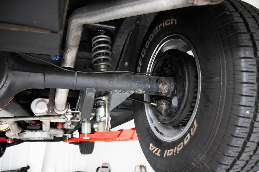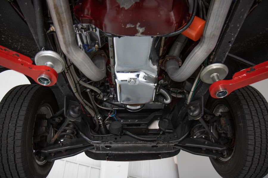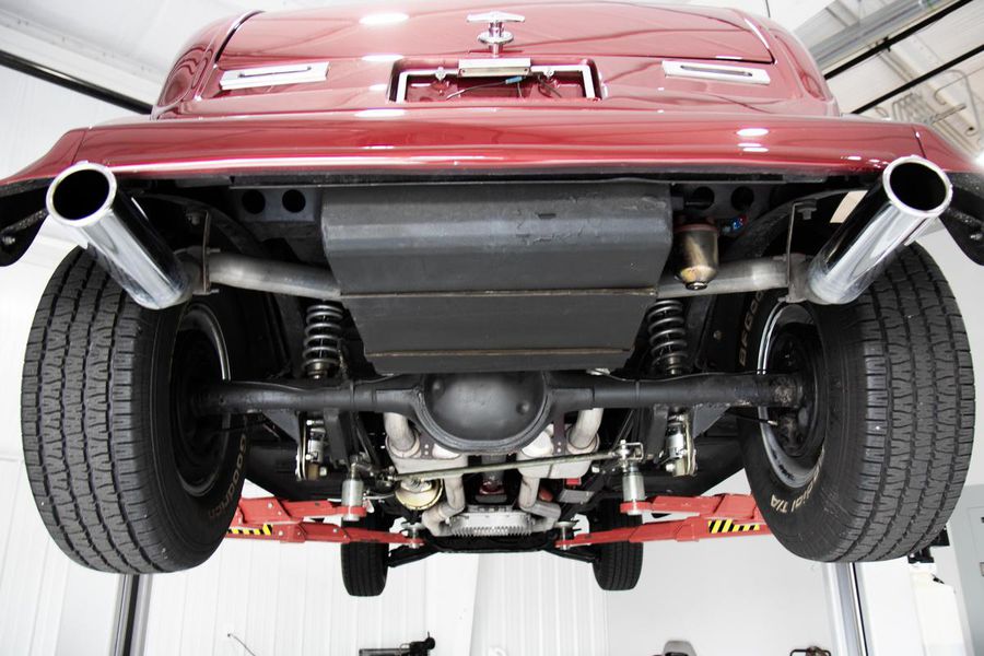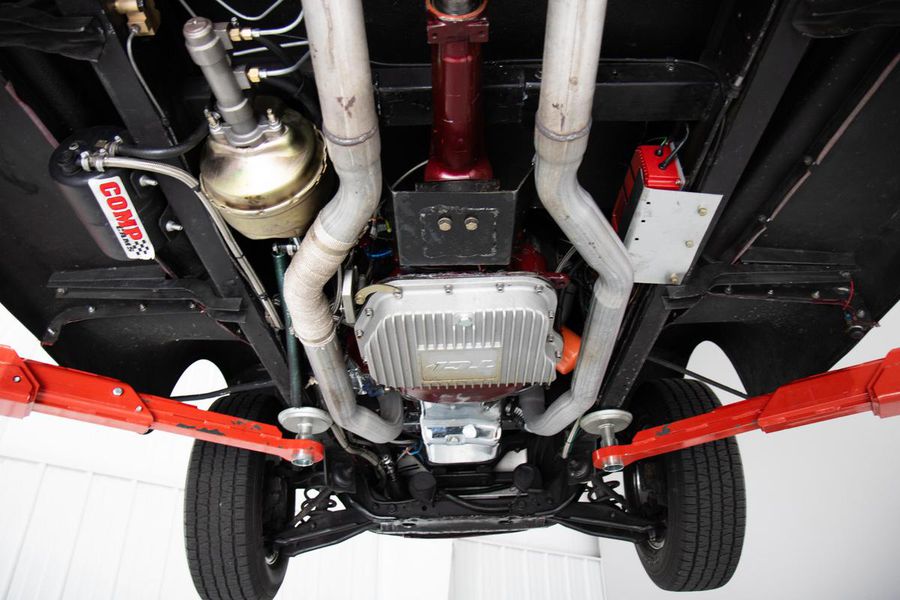 This gorgeous Dodge coupe has a professionally built and very stout 360 cubic inch small block Chrysler V-8 under its long front hood. This Mopar powerhouse features a high nickel content iron block sourced from a Little Red Wagon, bored .030 over, with drilled rear main bearing for extra oiling, ARP bolts, JE pistons, Clevite bearings, Hardland Sharp 1.5 roller rockers, Mopar hardened oil pump shaft, and Felpro gaskets throughout. On top of this were placed performance aluminum cylinder heads, Holley 670CFM polished carburetor, Edelbrock “Endurashine” RPM air gap intake manifold, and combine with a 10:1 compression ratio to make somewhere north of 400 horsepower!! All that power is routed back through a Chrysler 727 Torqueflite automatic transmission with a 2700rpm converter and performance shift kit. The driveshaft hands over torque to a Chrysler 8 3/4 inch rear axle with a 3.00:1 ratio and Sure Grip limited slip. The tires don’t stand a chance behind this monster!!
