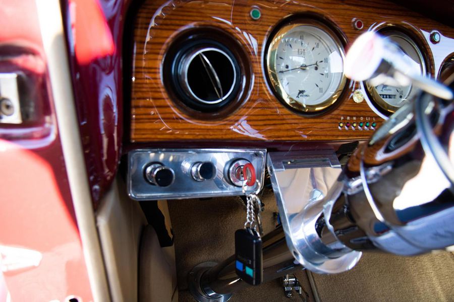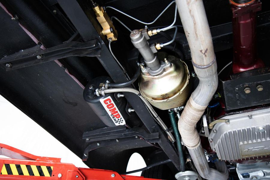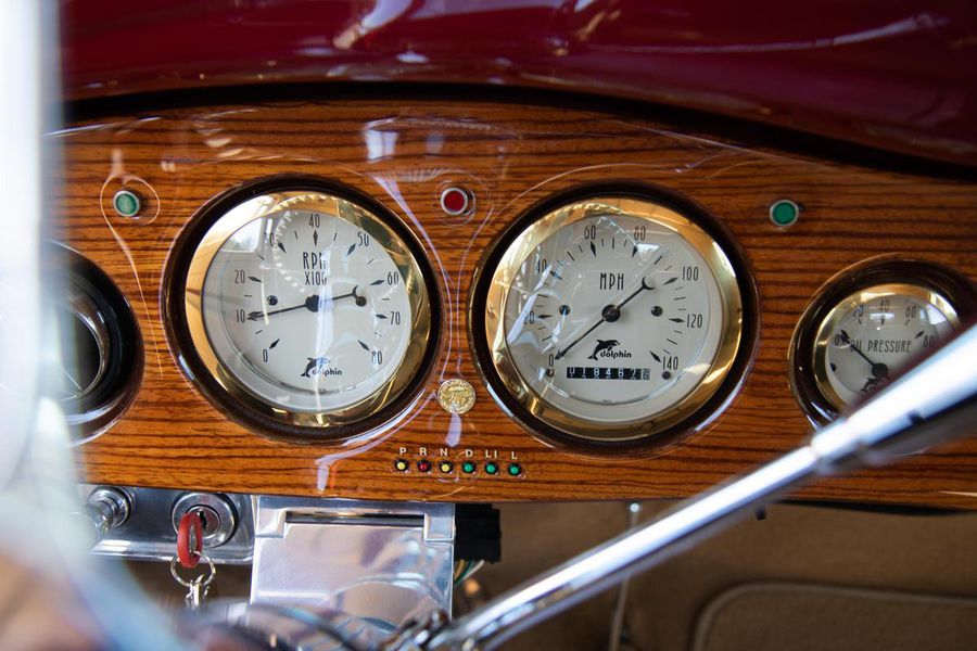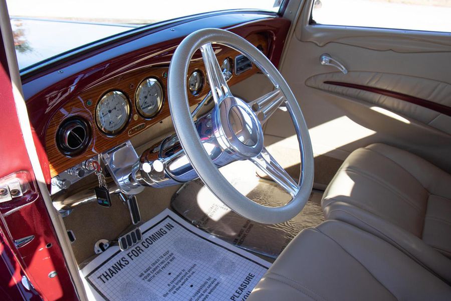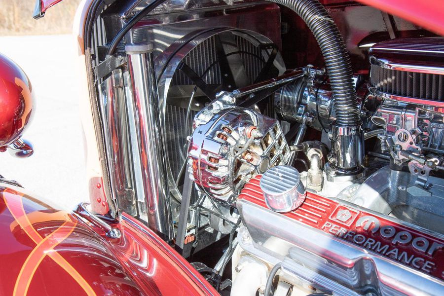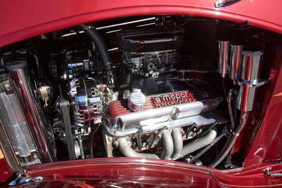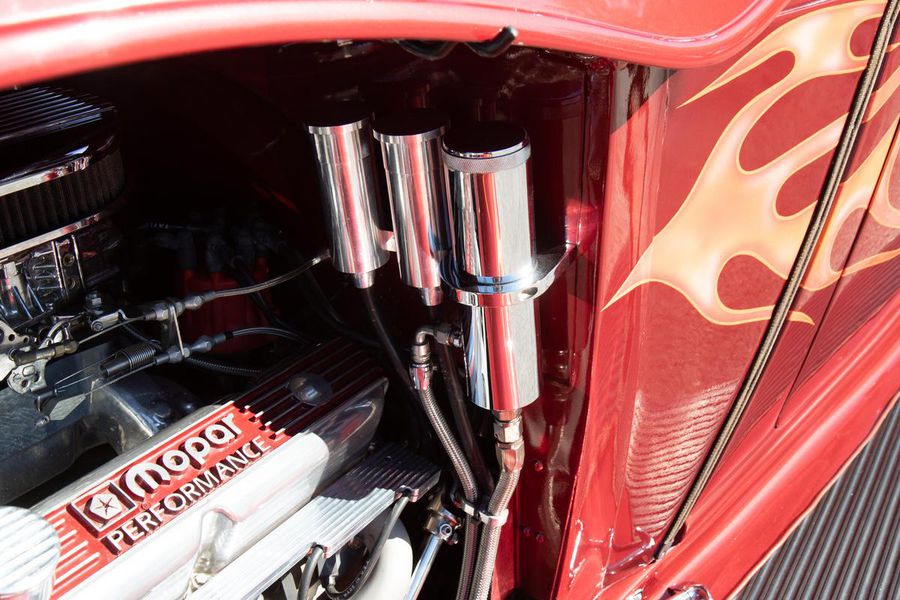 This gorgeous Dodge coupe has a professionally built and very stout 360 cubic inch small block Chrysler V-8 under its long front hood. This Mopar powerhouse features a high nickel content iron block sourced from a Little Red Wagon, bored .030 over, with drilled rear main bearing for extra oiling, ARP bolts, JE pistons, Clevite bearings, Hardland Sharp 1.5 roller rockers, Mopar hardened oil pump shaft, and Felpro gaskets throughout. On top of this were placed performance aluminum cylinder heads, Holley 670CFM polished carburetor, Edelbrock “Endurashine” RPM air gap intake manifold, and combine with a 10:1 compression ratio to make somewhere north of 400 horsepower!! All that power is routed back through a Chrysler 727 Torqueflite automatic transmission with a 2700rpm converter and performance shift kit. The driveshaft hands over torque to a Chrysler 8 3/4 inch rear axle with a 3.00:1 ratio and Sure Grip limited slip. The tires don’t stand a chance behind this monster!!