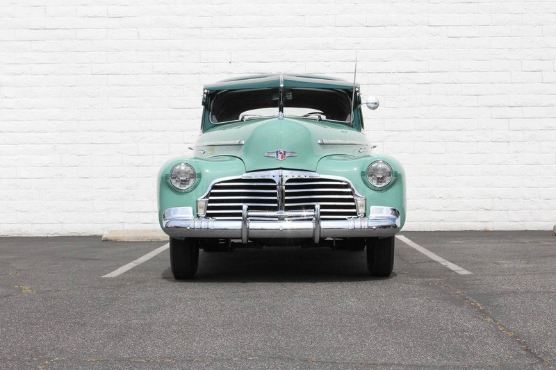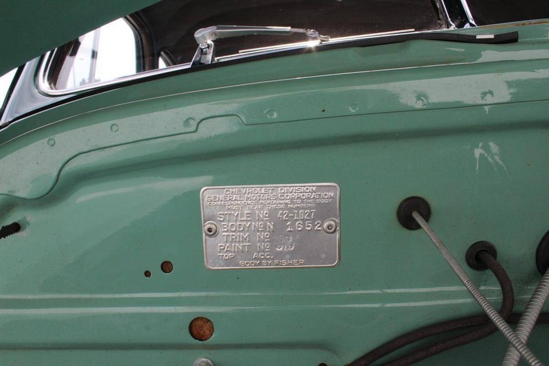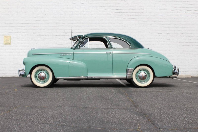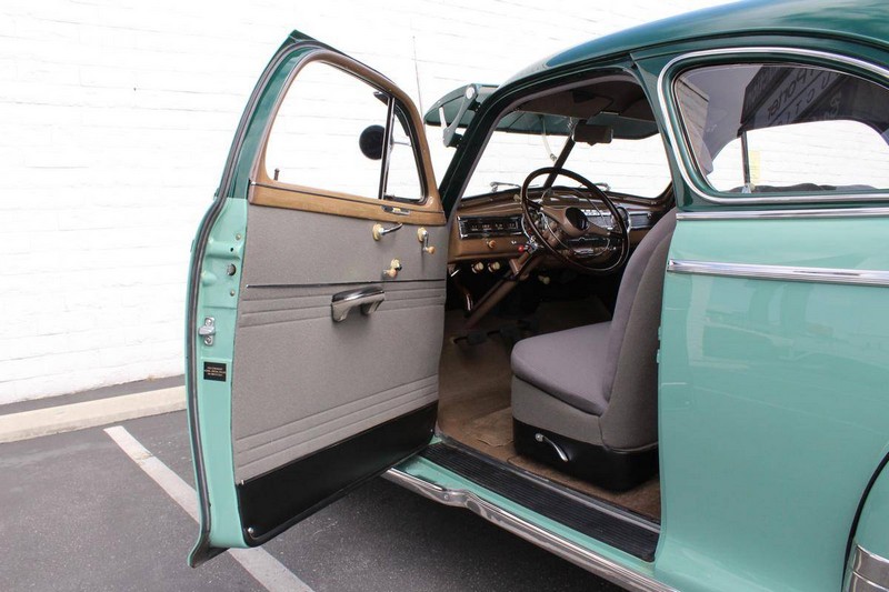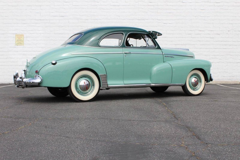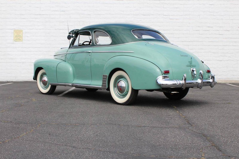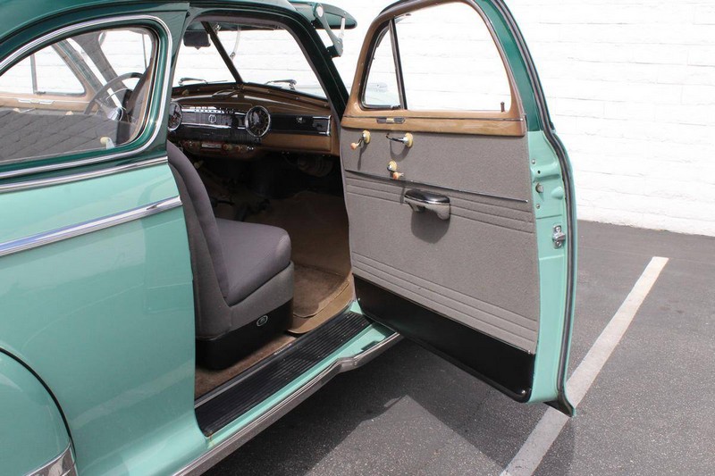 This 1942 Fleetmaster has undergone a comprehensive frame-off restoration. The body was stripped down to bare metal and painted a two-tone combination of Seafoam and Volunteer green, while the interior was completely redone in mohair and features the numerous accessories that were part of the Special Deluxe option package which include a deluxe steering wheel with horn ring, AM radio, heater, and clock, which is specific to the Special Deluxe. Additionally, this Special Deluxe is equipped with an accessory under seat heater as well. The original 216-cubic-inch inline 6-cylinder engine was completely rebuilt to factory specifications and is mated to a 3-speed manual synchromesh transmission, both of which work wonderfully. The 216 straight 6 runs like a top and is extremely quiet while the three-on-the-tree shifts super smoothly. The coupe rides on color-matched steel wheels with chrome trim rings and hubcaps wrapped in wide whitewall tires while other exterior features include an external sunshade and bumper guards. This green-on-green 1942 Fleetmaster is one the last Chevrolets built before production was suspended for wartime and comes with an extensive collection of restoration photos along with documentation of the work required to return the coupe to its original 1942 condition and it has completed just under 1,400 miles since restoration.