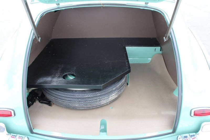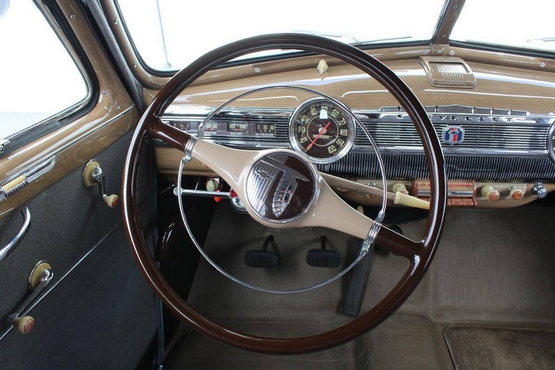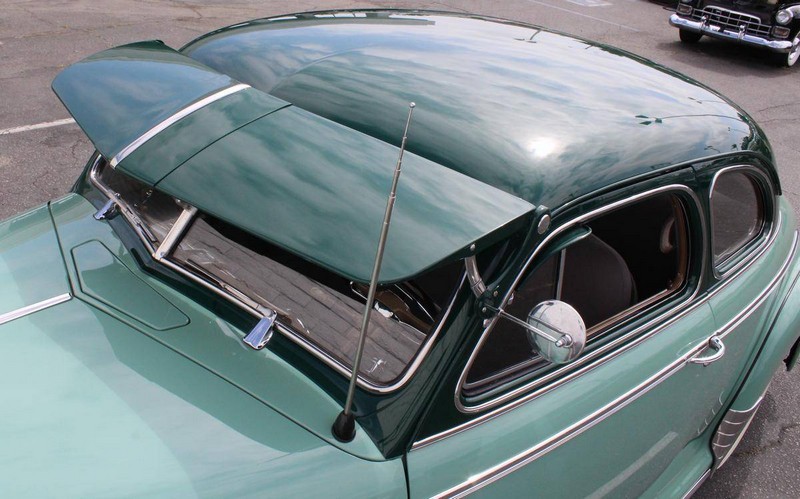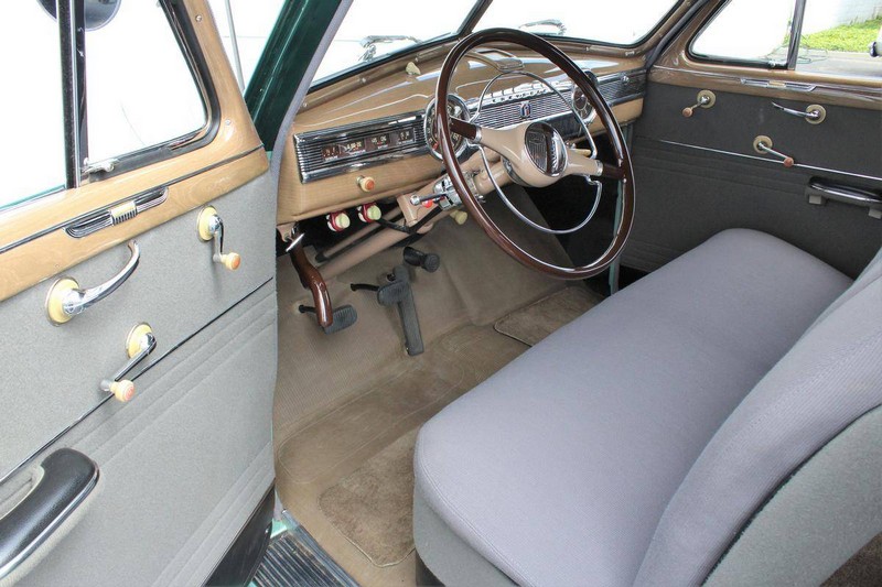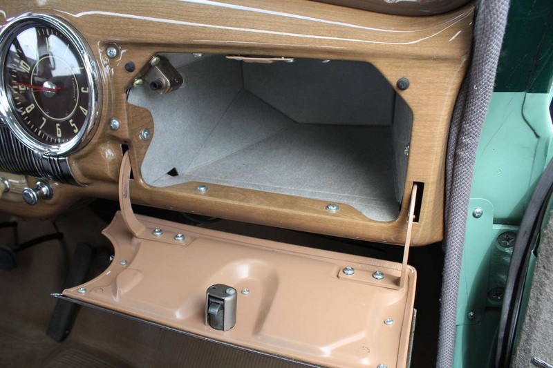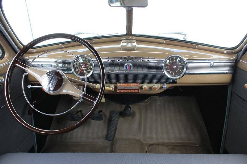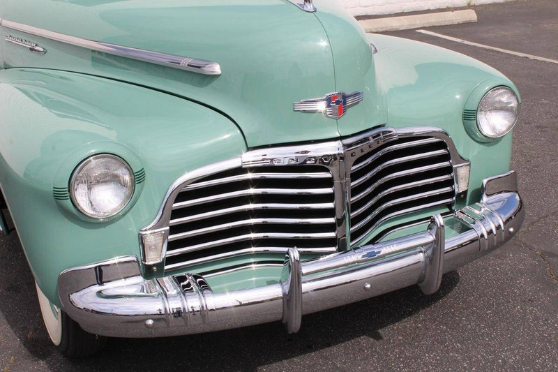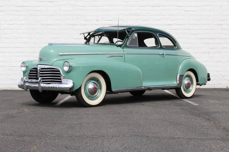 This 1942 Fleetmaster has undergone a comprehensive frame-off restoration. The body was stripped down to bare metal and painted a two-tone combination of Seafoam and Volunteer green, while the interior was completely redone in mohair and features the numerous accessories that were part of the Special Deluxe option package which include a deluxe steering wheel with horn ring, AM radio, heater, and clock, which is specific to the Special Deluxe. Additionally, this Special Deluxe is equipped with an accessory under seat heater as well. The original 216-cubic-inch inline 6-cylinder engine was completely rebuilt to factory specifications and is mated to a 3-speed manual synchromesh transmission, both of which work wonderfully. The 216 straight 6 runs like a top and is extremely quiet while the three-on-the-tree shifts super smoothly. The coupe rides on color-matched steel wheels with chrome trim rings and hubcaps wrapped in wide whitewall tires while other exterior features include an external sunshade and bumper guards. This green-on-green 1942 Fleetmaster is one the last Chevrolets built before production was suspended for wartime and comes with an extensive collection of restoration photos along with documentation of the work required to return the coupe to its original 1942 condition and it has completed just under 1,400 miles since restoration.