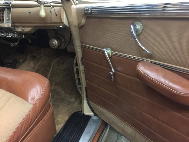This is an older restoration of a completely rust-free example of a well-preserved car. Cosmetically, the Town & Country is exceptional. The Catalina Tan paint is in lovely condition with very few flaws. Fit and finish are nice and the doors shut like they did when new. The glass appears original and in good condition with no lamination. The chrome on the dash is original and still holding up well. Exterior chrome has been re-plated to a quality standard. The interior has been well taken care of. The electronics work well, including the instruments, heater, radio, wipers and clock. The black top (Top code #1) is still nice and the top mechanism works really well, too.