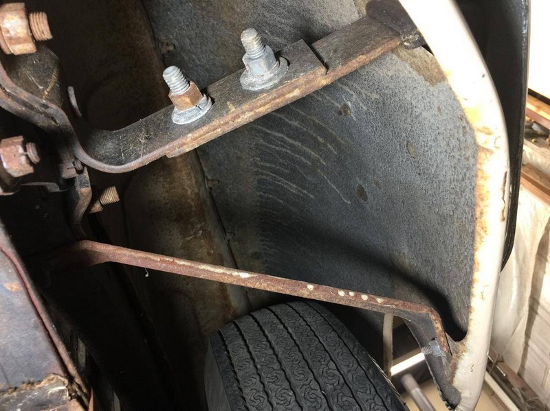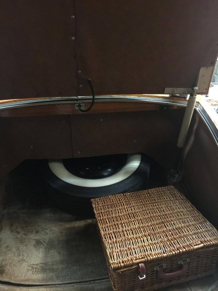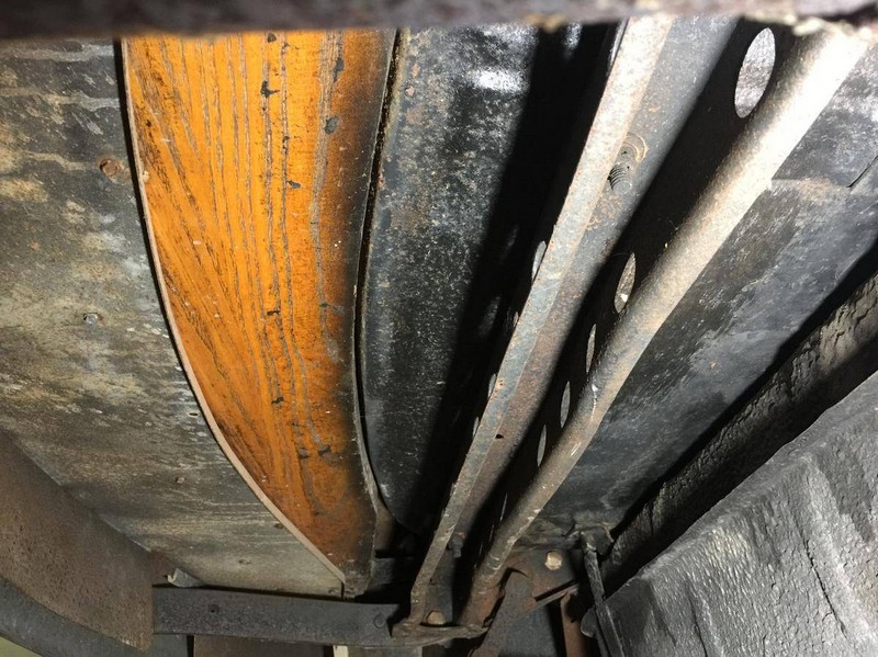 The chassis is completely free of rust and has not been restored or detailed. There are no patches or issues with this Woodie. It has the original exhaust system with some small holes that need to be repaired or replaced. The factory spark plug cover that says “Spitfire” is missing. The starter has been changed to a button. The starter components are still in the carburetor.