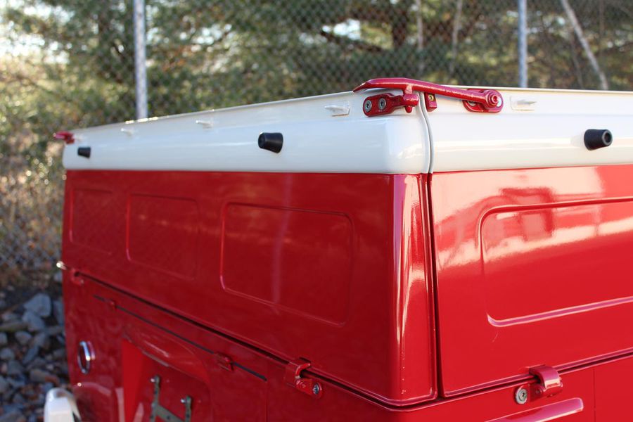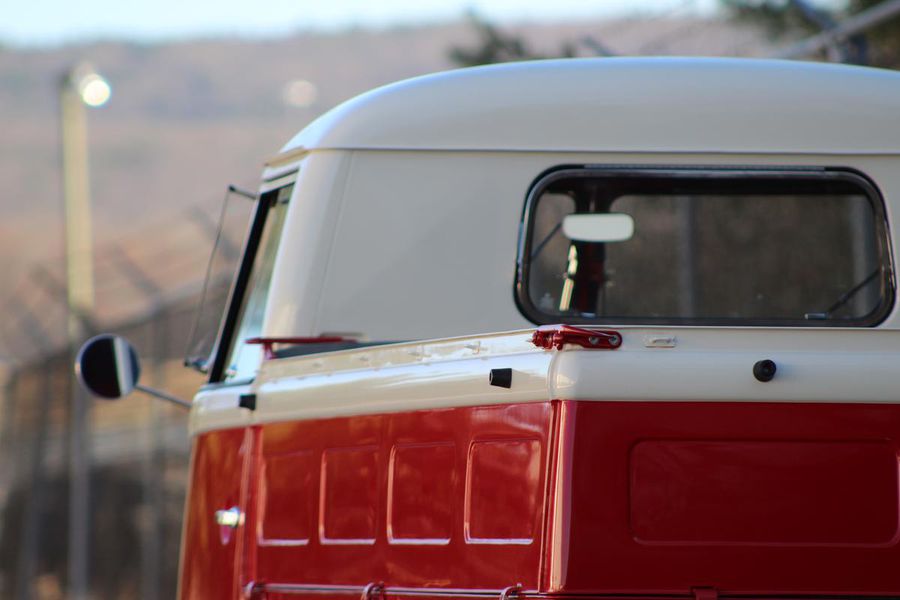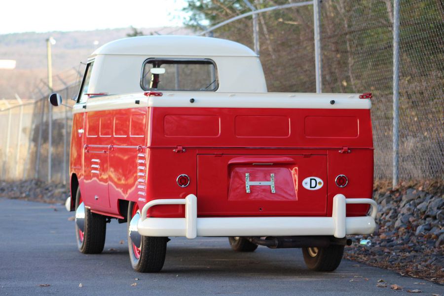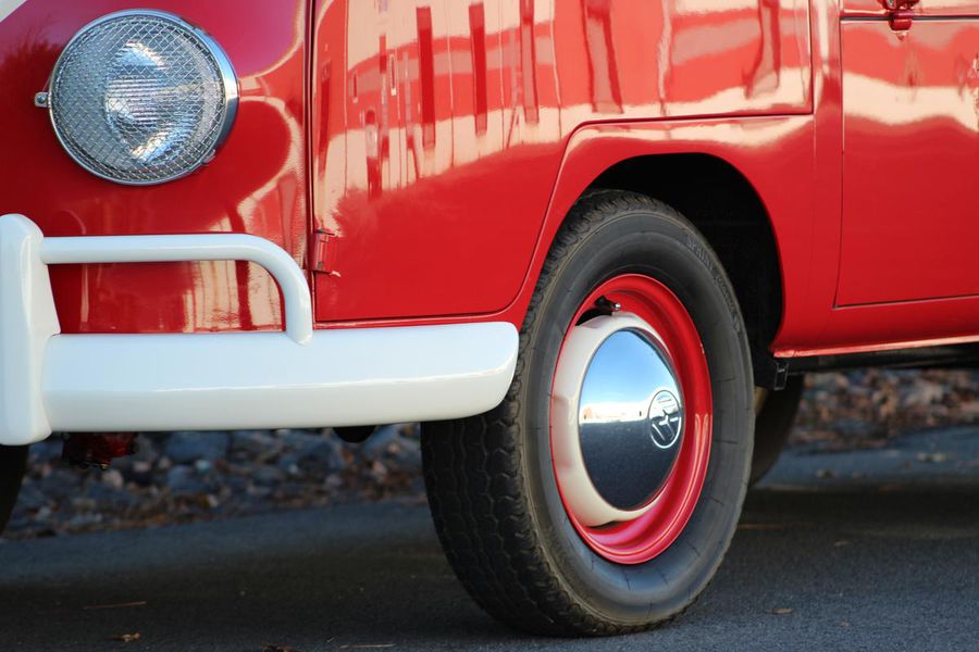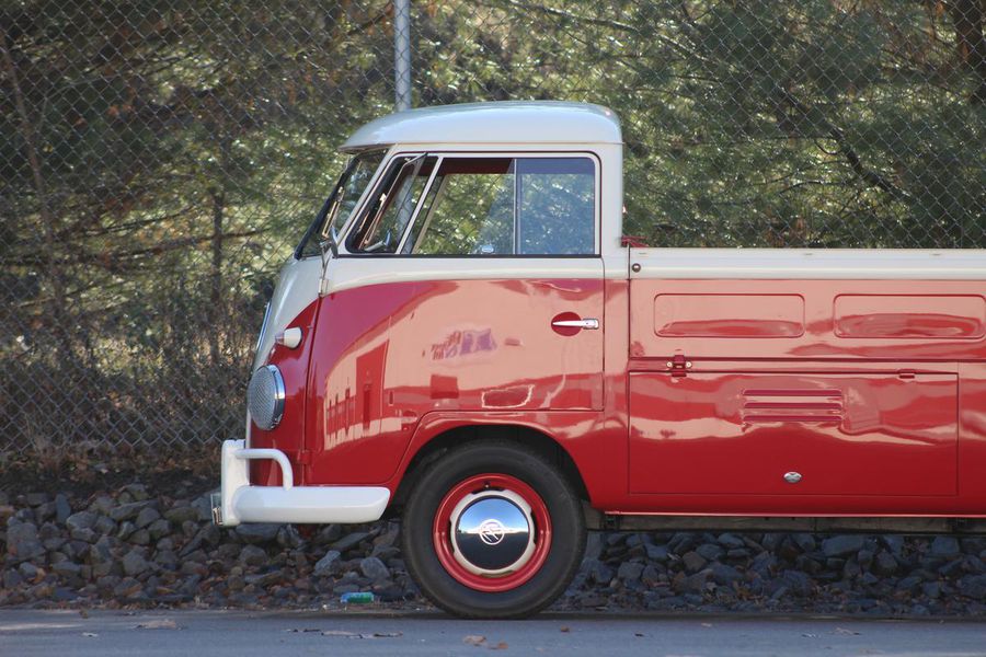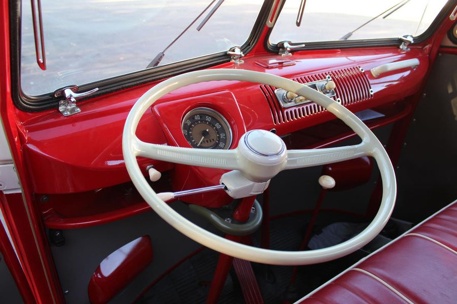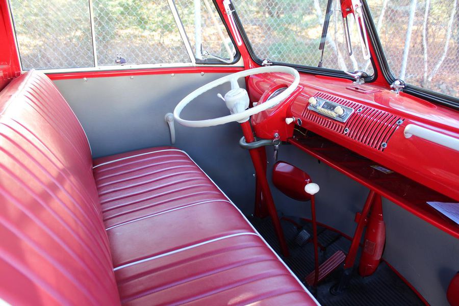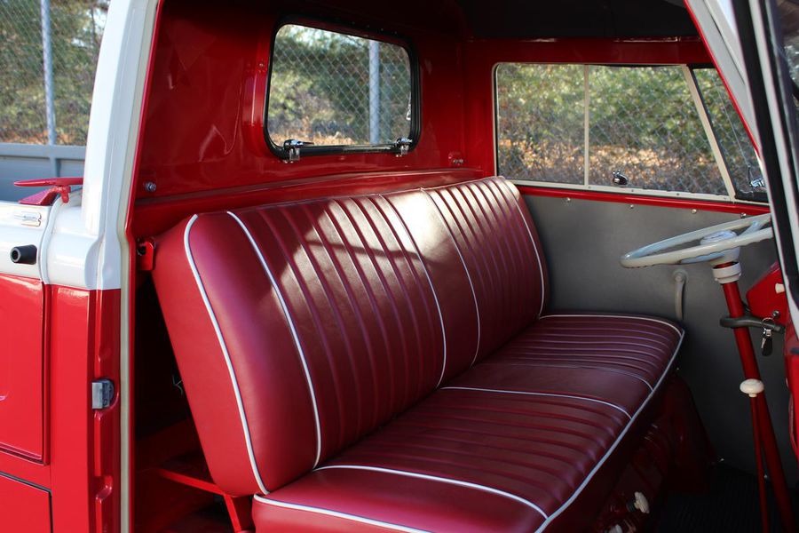 This classic pickup spent its early life on the West Coast until it was restored in 2009. It now gleams with a two-tone classic red and white exterior paint combination, white bumpers and chrome accents. Restoration expert Paul Willison of Brumos Porsche completed the mechanicals and final detailing. With a recent fuel system service, a 4-speed manual transmission and a 4-cylinder 1200 cc engine, this Type 2 purrs along with 40 hp. The vintage look is completed by steel wheels with chrome hubcaps and Sprint Classic 165/80R 15-inch tires.