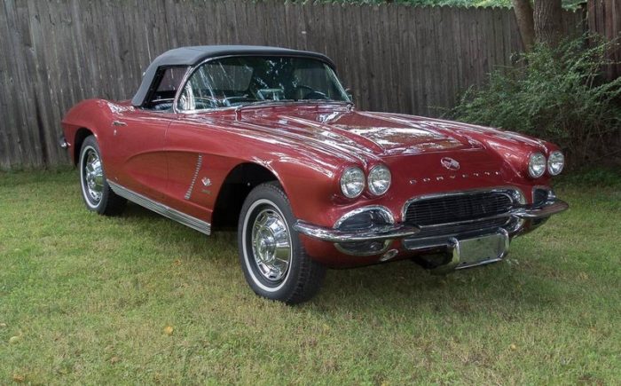 1962 Chevrolet Corvette 327 / 360hp Fuelie. 70,000 miles – Manual. With its new 327ci engine. The body is exceptional, with proper body lines and gaps. The exterior finish painted in base coat / clear coat is excellent, as are the chrome bumpers, stainless molding and emblems. The interior restoration includes new carpeting, dash pad, door panels and seats. The frame is rust free. This is a turn key car needing nothing other then to be proudly driven and thoroughly enjoyed.