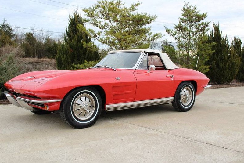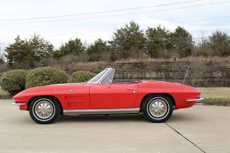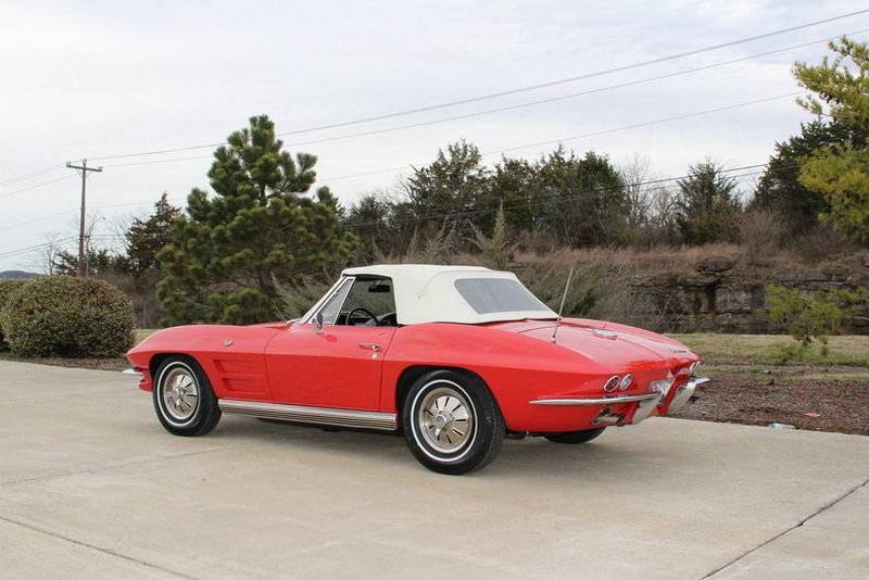 1964 CORVETTE CONVERTIBLE, 327/250HP 2 SPEED POWERGLIDE TRANSMISSION, BEAUTIFUL PAINT AND BODY, NEW WHITE CONVERTIBLE TOP, ORIGINAL INTERIOR for EXCEPTION OF CARPETS APPEAR TO HAVE BEEN REPLACED,POWER STEERING, ALL SHIELDING IS PRESENT AS WELL AS CORRECT AIR CLEANER, VERY SOLID FRAME AND CAR FITS WELL, NICELY DETAILED ENGINE COMPARTMENT, OVERALL CAR IS NICELY DETAILED, SUPER NICE DRIVER QUALITY CAR THAT’S READY TO RIDE!!