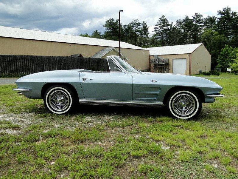 1964 Chevrolet Corvette Convertible is in very good condition from the silver blue paint to the newer blue interior upholstery with leather seating. The period correct 327 cubic inch motor with 4 speed manual transmission runs beautifully and pulls strongly down the road on this solid Corvette Convertible.