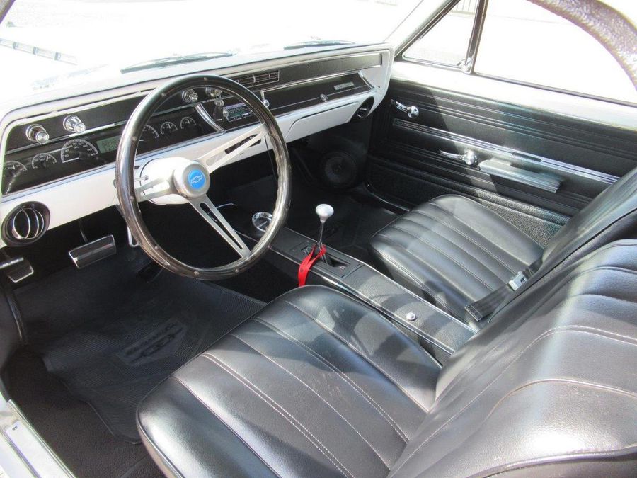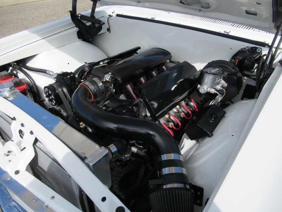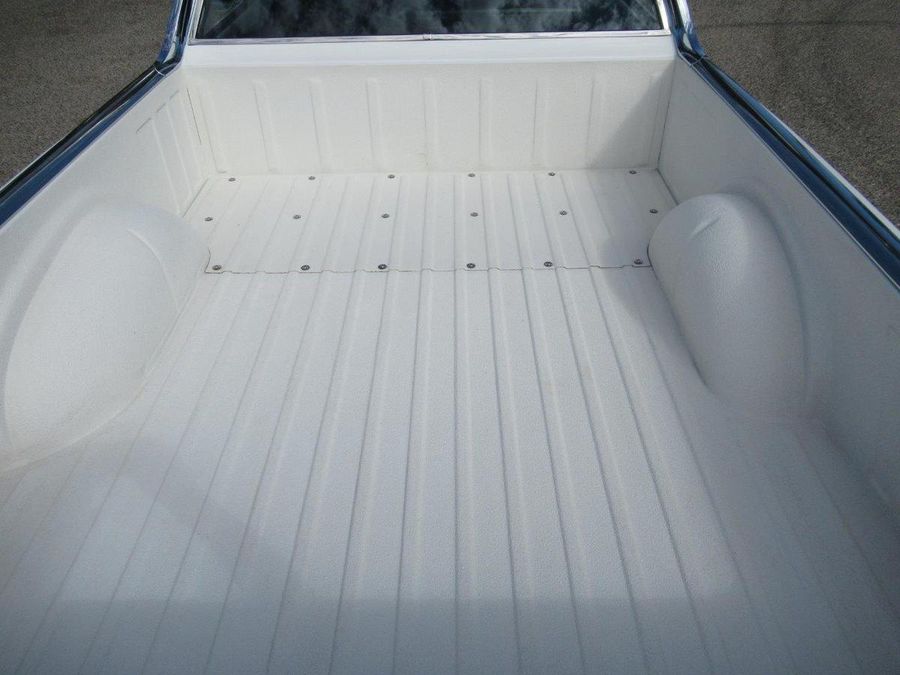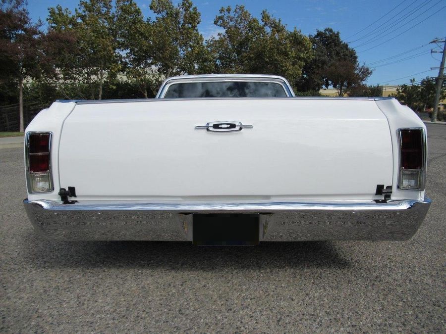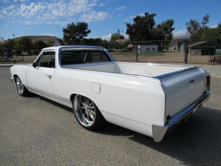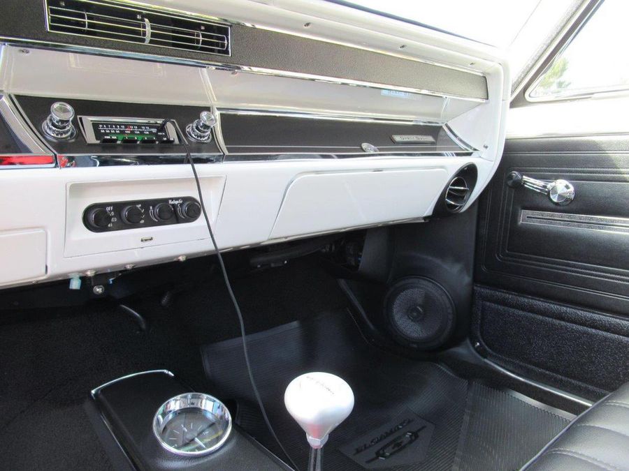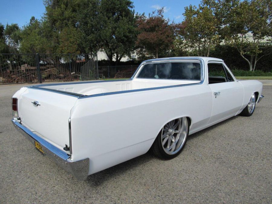 This beautiful El Camino has had countless hours and dollars spent on making it a modernized reliable cruiser that will turn heads. With only 2600 miles on a frame off restoration it’s ready for fun. Finished in Bright White with a hint of pearl, all new chrome and stainless trim, vented SS Hood, white spray in bedliner, tinted windows and some killer 18 and 20 inch staggered US Mags to complete the look. The interior has original black bucker seats with center console, Lokar floor shifter, Dakota Digital Analog gauge package, custom retro sound stereo system with aux output, tilt steering column and custom wheel. Under the hood sits a performance built LS motor with lots of aluminum custom accessories and billet front runner system, aluminum radiator with electric fans, Vintage A/C, 4L60E automatic overdrive transmission, 12 Bolt rear differential with 4.11 ratio, powder painted chassis with all new bushings, tubular control arms with complete air ride system, complete Hotchkis suspension and Wilwood power disc brakes on all four corners.