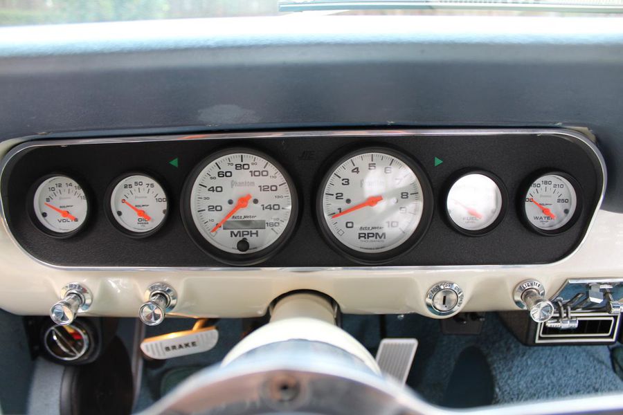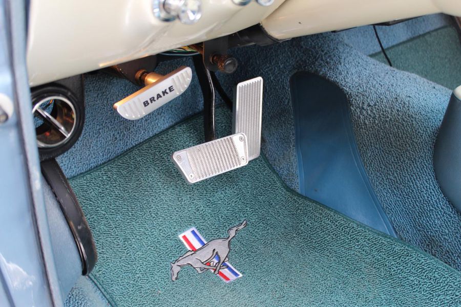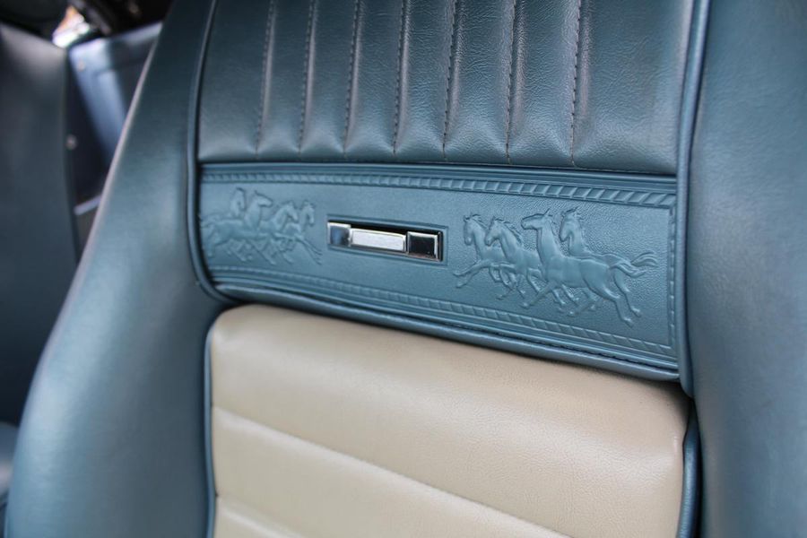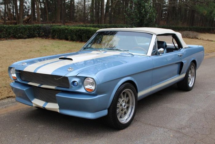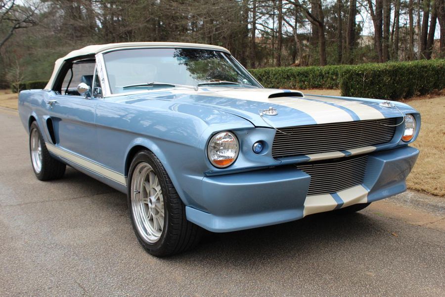FANTASTIC RESTO CLONE BUILT TO AMAZING SPECS, SPECIAL ‘R’ CODE FRONT END, SCULPTURED FRONT END WORK WITH DOUBLE GRILL, SPECIAL LED LIGHTING, SIDE SCOOPS, SHELBY REAR END, STRIKING ACAPULCO BLUE WITH WHITE LEMANS STRIPES, STRONG BUILT 289, UPRATED ALUMINUM TOP END-COMP CAM-HEADS-PERFORMANCE CAM, 4-WHEEL BAER DISCS, 9” CURRIE POSITRACTION REAR END, UPRATED SUPPORT UNDERCHASSIS, 10 SPOKE SHELBY ALLOYS, MODERN RADIALS, 4-SPEED AOD PERFORMANCE TRANSMISSION, UPRATED TWO-TONE PONY BUCKETS WITH ADJUSTABLE HEADRESTS, AIR CONDITIONING, GREAT HISTORY FILE OF SPECS.