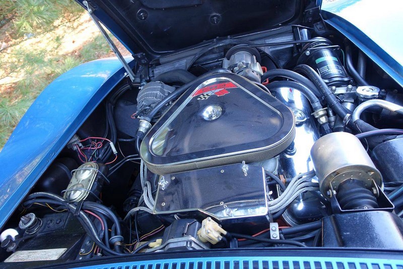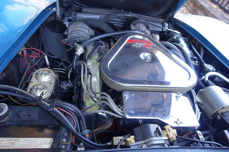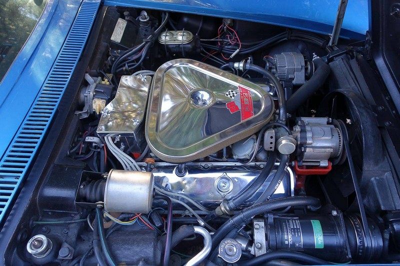 427ci tri-power engine in the Corvette. The car, with 51,145 documented miles, is nicely optioned with: power steering; power windows; AM-FM radio; Tinted Glass; Rear Window Defogger; Speed Warning Indicator; Headrests; Air Conditioning and has the original Corvette Order Copy (Tank Sheet) and Protect-O-Plate. GM side exhaust have been added and the car is currently powered by a GM service replacement 427ci CE short block, with all the other original engine components in place. The original engine block (fully operational), original exhaust system, original rocker panel moldings, and original rear valance go with the car; so, the car can easily be brought back to original factory configuration, if one wanted pursue NCRS or Bloomington Gold judging awards.