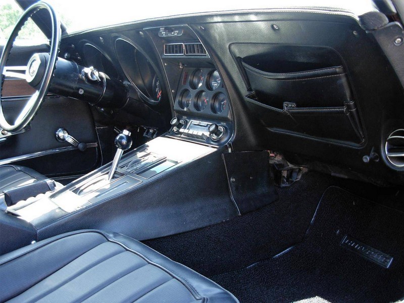 This C3 is also nicely equipped and features power steering, power brakes with front disc, power windows, 4 season factory air conditioning, bucket seats with center console, AM FM stereo, tilt / telescopic steering column, and correct rally wheels wrapped in Kelly Charger radial tires. It does not get any better than a big block Corvette with factory air conditioning especially one that is numbers matching!