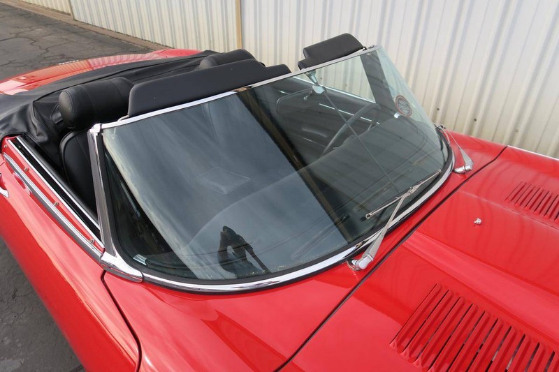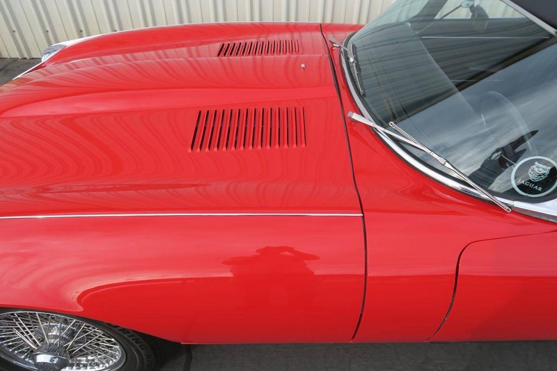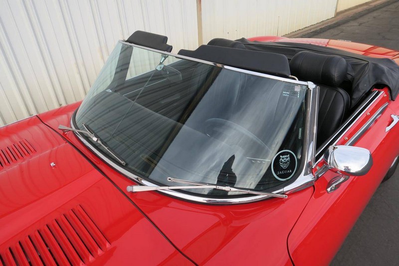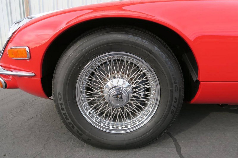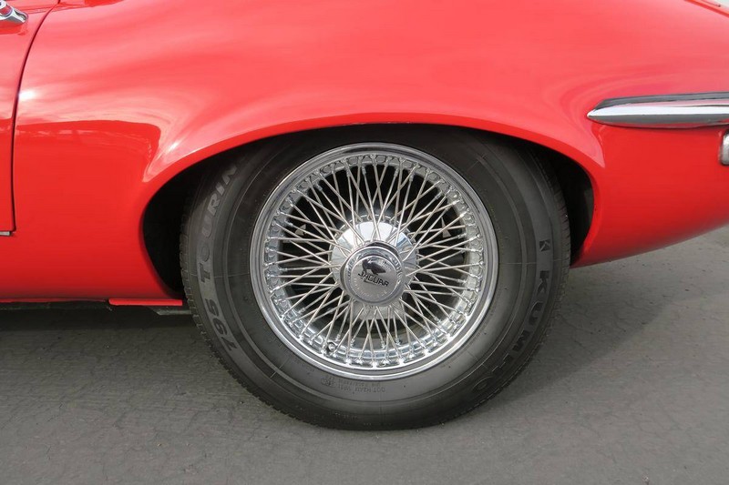 This color combination shows so well for the Jaguar E-Type. Paint is in great shape. Body-lines all align nicely. Owners manual. Air conditioning and power steering. Tools and jack set. Car has always been serviced. She is ready for a new home and tons of enjoyment for the new owners.