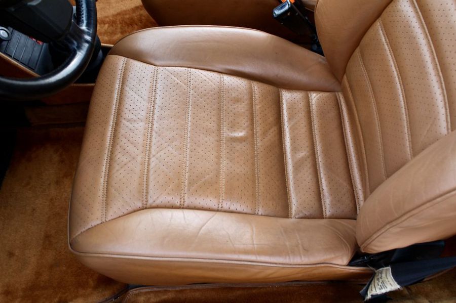 The interior was the subject of intensive preservation, as is trimmed in the original and unrestored partial tan leather seating areas and original carpeting. The seating areas are in beautiful condition, with no rips, tears, or wear evident. The door panels are also in the same condition as is the trim. All of the accessories, including the climate control, are in perfect working condition. The windows power up and down and work perfectly.