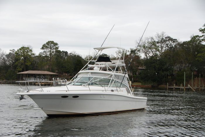 This is a one owner vessel that has always had a full time captain to maintain her. She’s clean, powered correctly, propped perfectly and ready to take the next owner on whatever adventure you can dream up. Her Twin Caterpillar engines run and handle the boat assertively to make docking, trolling or traveling a dream. The cabin, salon and engine room are clean and ready to accommodate your gear. Either fishing or cruising this is an excellent representation of a do all, be all boat.