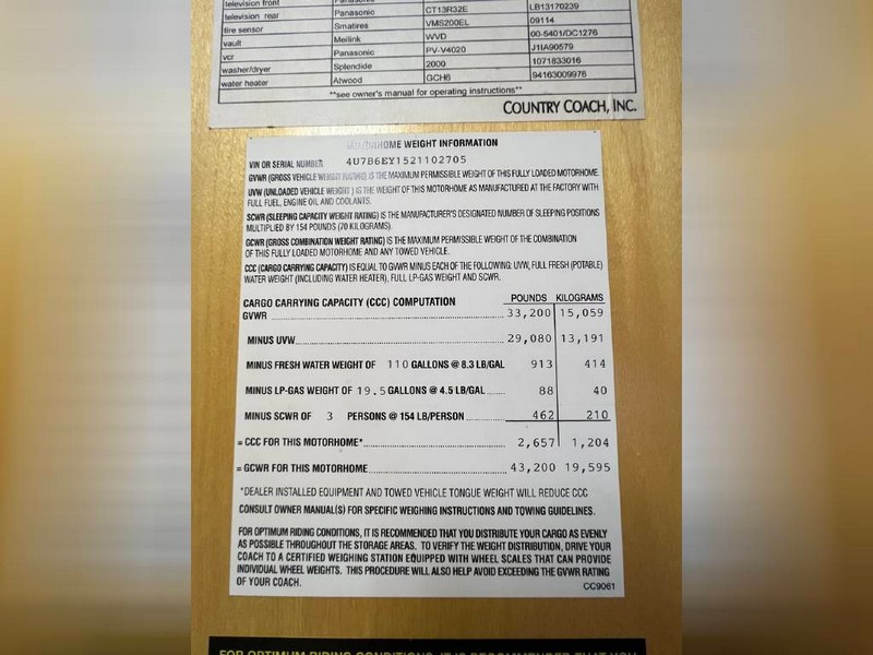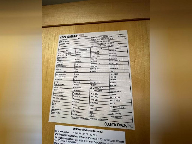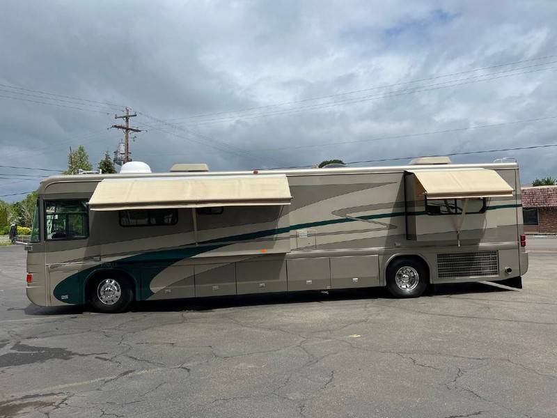 02 40” Country Coach Intrigue Suite of Dreams. Maple Cabinets, 2 slides, Hurricane Diesel Boiler, Upgraded Pioneer Bluetooth in Dash, 97k Miles Full Body Paint, Girad Auto Awning, Samsung LED TV.