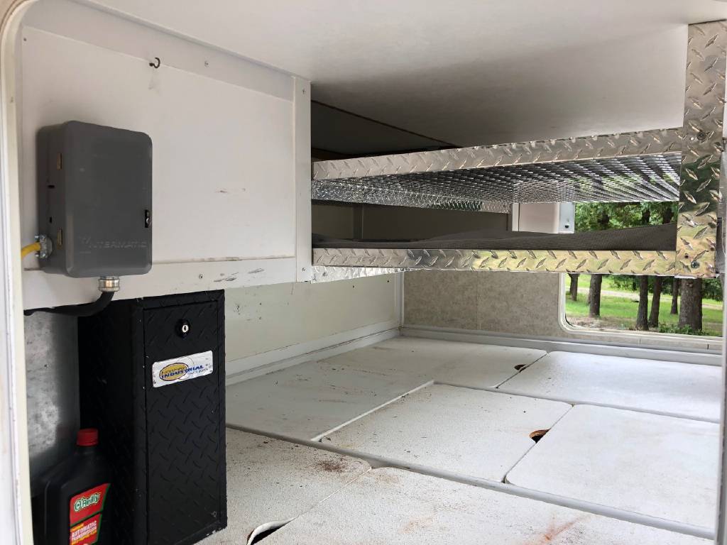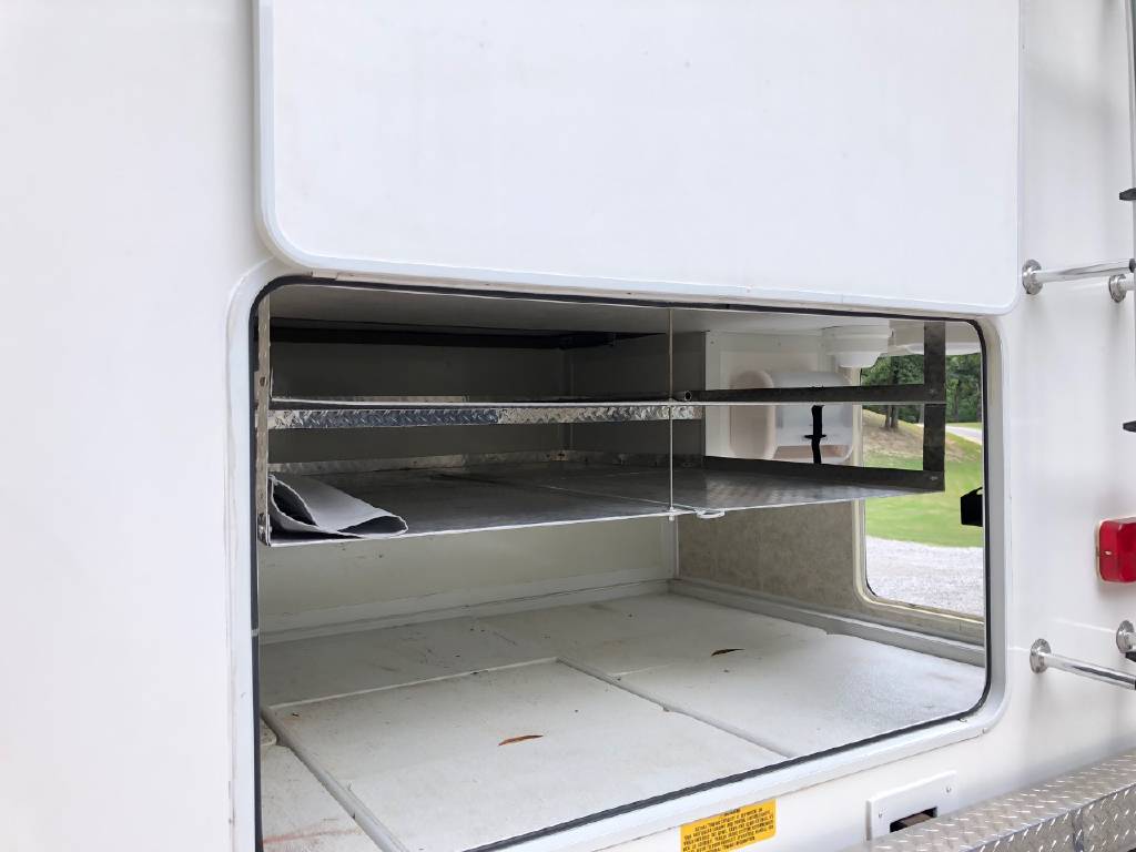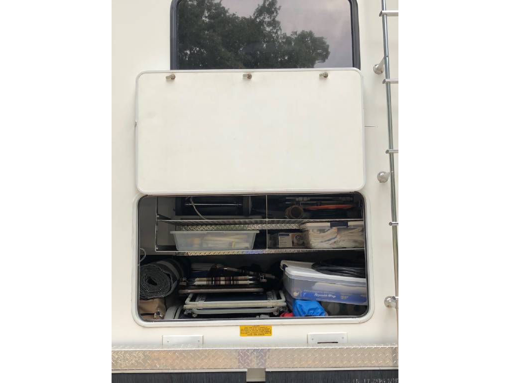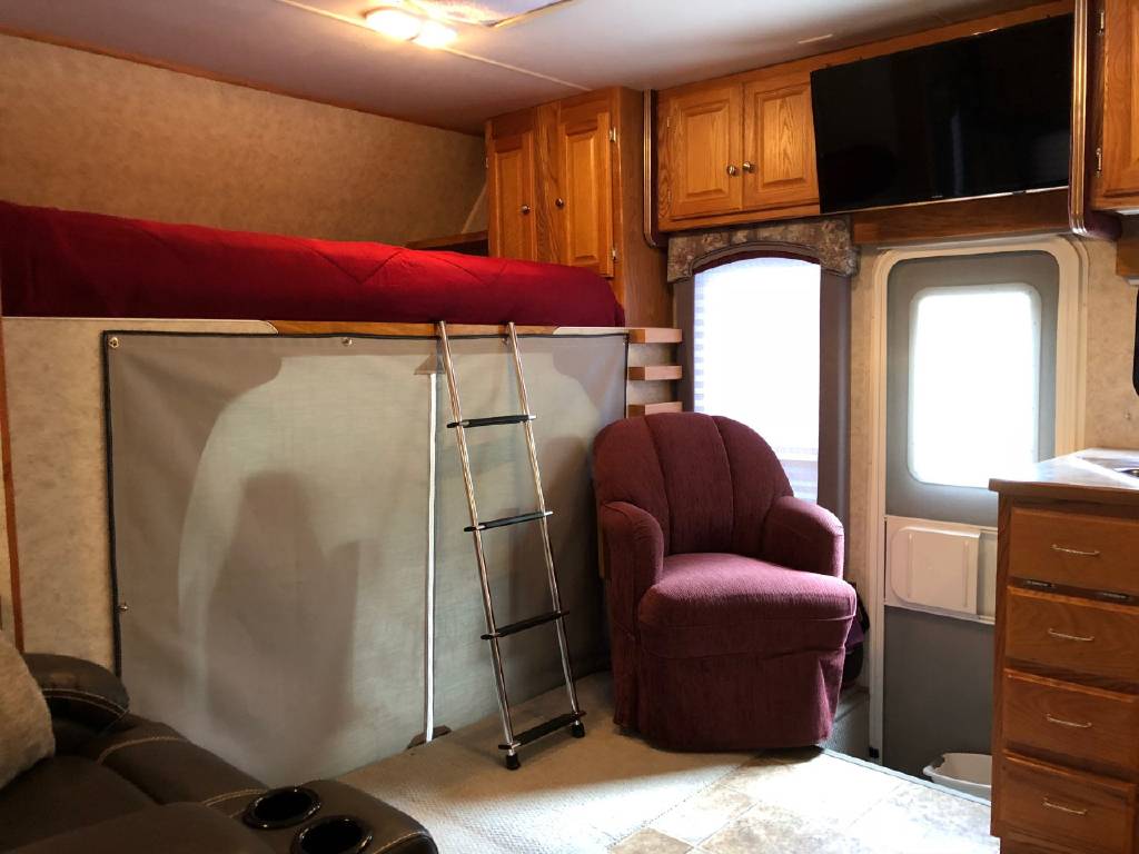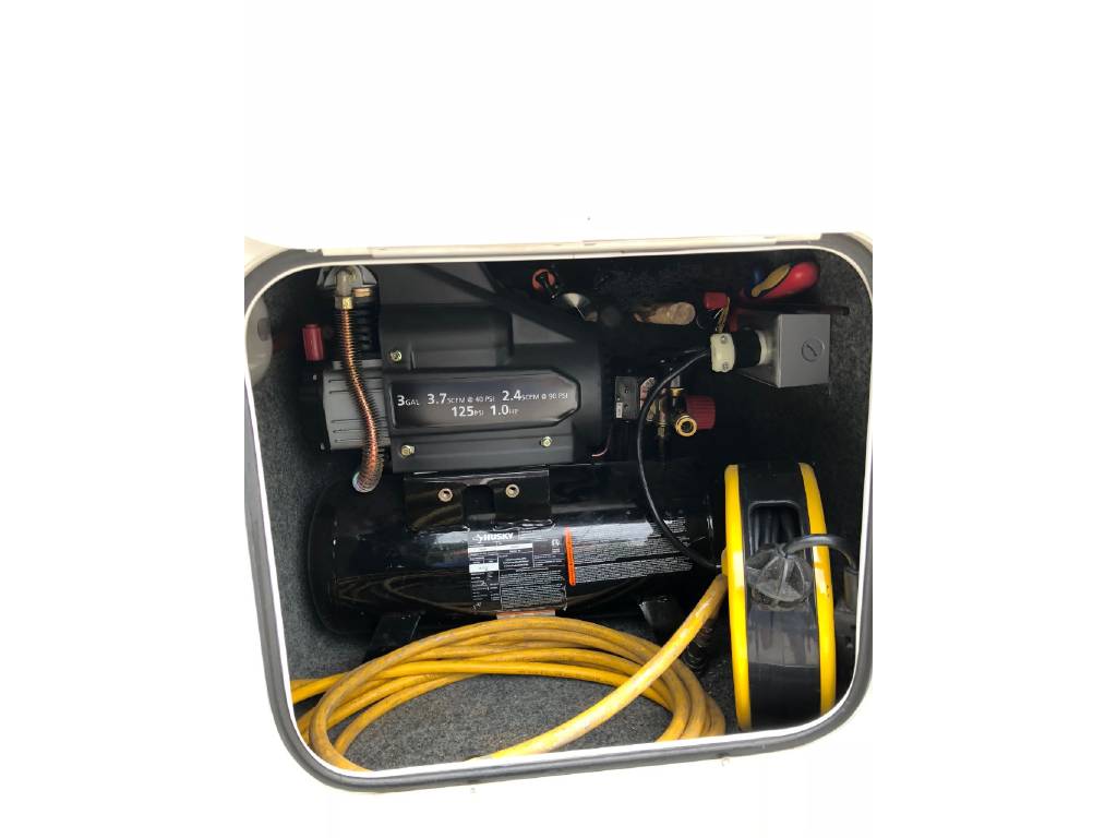 This motorhome has many upgrades, including stainless steel on walls in kitchen, residential size single bowl kitchen sink, additional outlets and shelves added in bedroom for charging phones, etc. Additional shelves with power outlets and closet for storage in bunk area. Sleep by number bed in bunk area. Central vac system. Steel shelving added in rear enormous garage storage compartment with four point access. Firestone airbags and ugraded shock systems. Outdoor shower and tornado tank cleanout rinsing system. 3 gallon 1 hp air compressor and tinted windows.