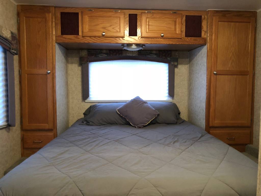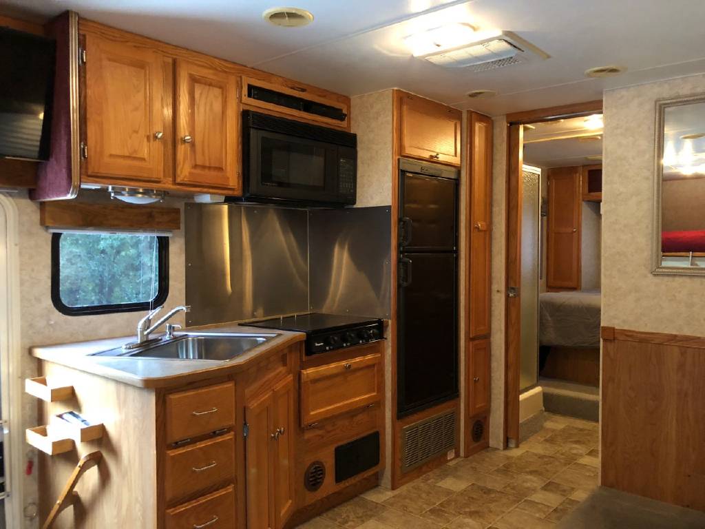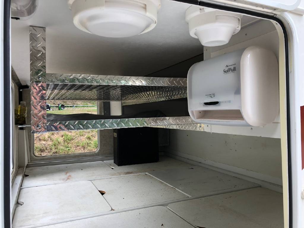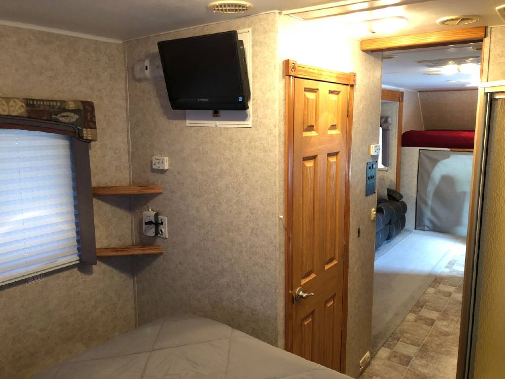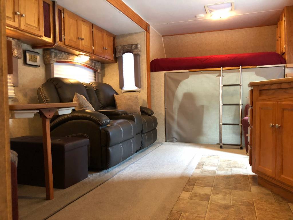 This motorhome has many upgrades, including stainless steel on walls in kitchen, residential size single bowl kitchen sink, additional outlets and shelves added in bedroom for charging phones, etc. Additional shelves with power outlets and closet for storage in bunk area. Sleep by number bed in bunk area. Central vac system. Steel shelving added in rear enormous garage storage compartment with four point access. Firestone airbags and ugraded shock systems. Outdoor shower and tornado tank cleanout rinsing system. 3 gallon 1 hp air compressor and tinted windows.
