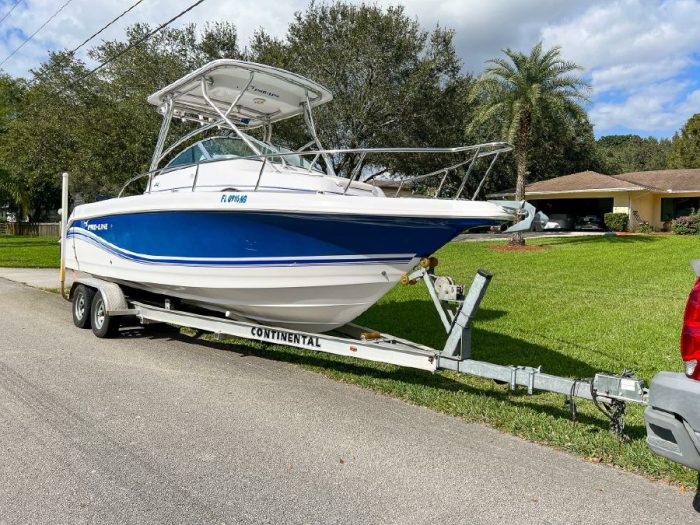 2006 Proline 24’ Walkaround powered by twin Mercury 150 Optimax’s w/ 530hrs – stored with full boat cover on trailer.