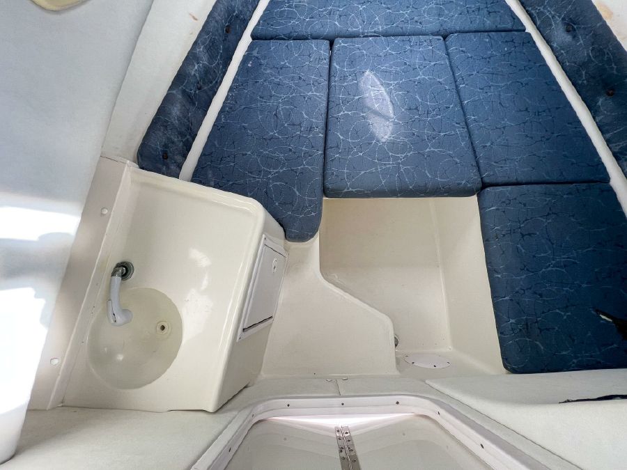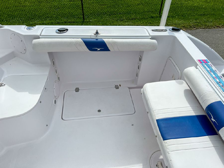 Garmin GPS, Fusion Audio sound system, updated Mercury SmartCraft gauges, Lenco trim tabs, cockpit lights, cabin lights, spreader lights, windlass, swim ladder, baitwell, full boat cover, and Continental tandem axle aluminum trailer included.