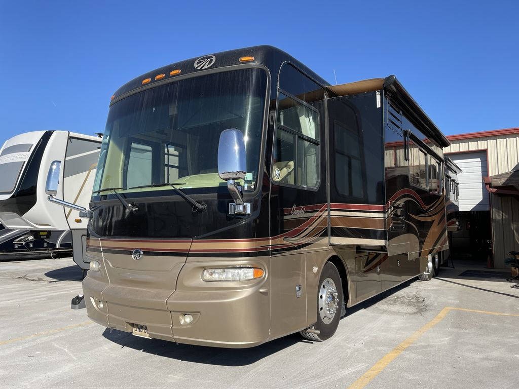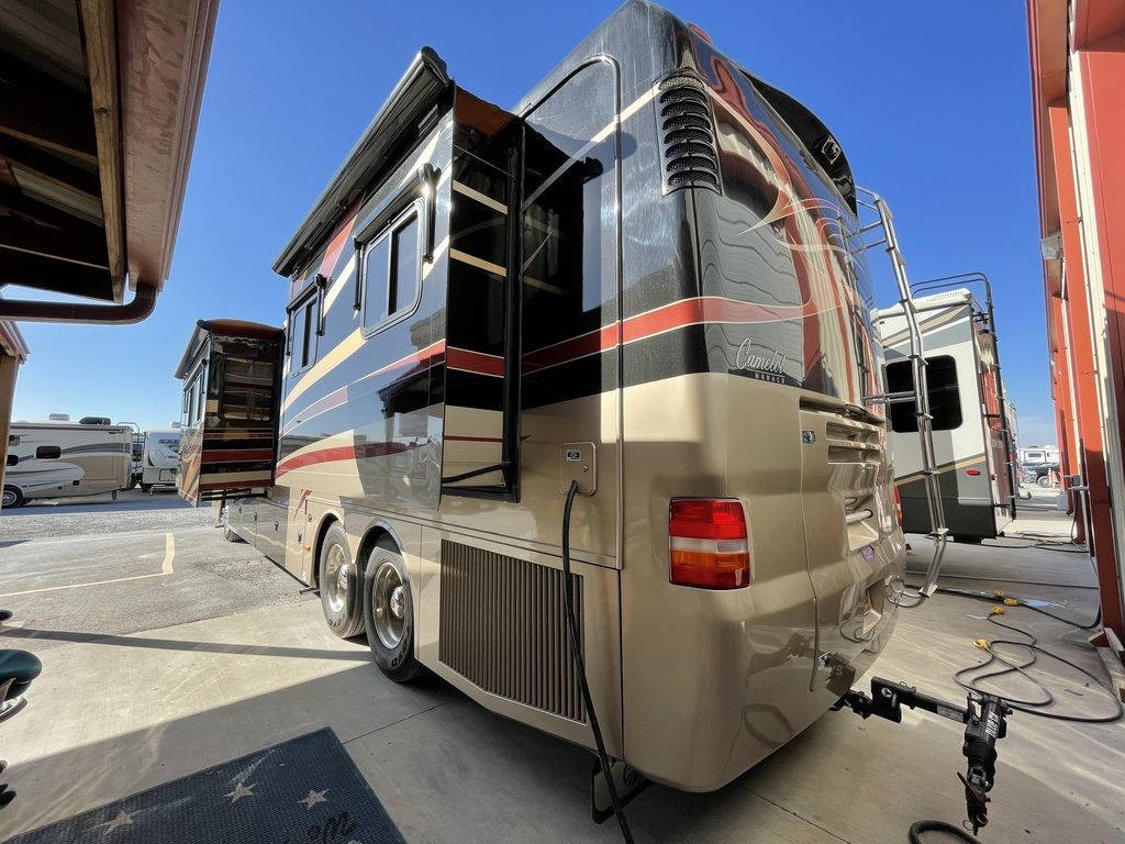 2008 Monaco Camelot 42KFQ, , Basic Information – Year: 2008, Basic Information – Make: Monaco , Basic Information – Model: Camelot, Basic Information – Trim: 42KFQ, Basic Information – Stock Number: 047595,Engine – Fuel Type: Diesel, Basic Information – Type: Motorized Class A, Basic Information – Sleeping Capacity: 6, Basic Information – Length (Feet): 42.83, Basic Information – Chassis Model: Raised Rail Chassis, Basic Information – Chassis Brand: Roadmaster, Basic Information – Construction Body Material: Aluminum, Basic Information – Sidewall Construction: Fiberglass, Bedroom / Bath – Bathroom, Bedroom / Bath – Bathroom Flooring Type: Tile, Bedroom / Bath – Bathroom Location: Center, Bedroom / Bath – Bathroom Medicine Cabinet, Bedroom / Bath – Bathroom Mirror, Bedroom / Bath – Bathroom Vent / Fan System, Bedroom / Bath – Full Size Master Bedroom Closet, Bedroom / Bath – Master Bedroom, Bedroom / Bath – Master Bedroom Door Style: Full Sliding Door, Bedroom / Bath – Master Bedroom Flooring Type: Carpet, Bedroom / Bath – Master Bedroom Location: Rear, Bedroom / Bath – Master Bedroom Mirror Doors, Bedroom / Bath – Number Of Bathrooms: 1, Bedroom / Bath – Number Of King Size Beds: 1, Bedroom / Bath – Shower, Bedroom / Bath – Shower Door Type: Plastic / Glass, Bedroom / Bath – Toilet, Bedroom / Bath – Toilet Type: Porcelain, Cargo / Storage – Pass-Thru Storage, Cockpit Features – Power Adjustable Seat, Cockpit Features – Seat Armrests, Cockpit Features – Cruise Control, Cockpit Features – Power Windows, Comfort – Heater, Comfort – Sofa, Comfort – Reclining Seats, Comfort – Swivel Seats, Comfort – Number Of Sofas: 2, Comfort – Number Of Seats: 2, Comfort – Number Of Convertible / Sofa Beds: 2, Comfort – Seat Type: Bucket, Comfort – Air Conditioning Type: Automatic, Comfort – Seat Material: Leather, Comfort – Sofa Material: Cloth, Comfort – Air Conditioning, Comfort – Heater (BTUs): 51000, Comfort – Heater Type: Automatic, Convenience – Power Retractable Entry Steps, Convenience – Sky Light, Convenience – Roof Vents, Convenience – Leveling Jack Type: Front Power / Rear Power, Drivetrain – Transmission, Drivetrain – Transmission Type: Automatic, Drivetrain – Transmission Speed: 6, Drivetrain – Overdrive, Drivetrain – Transmission Brand: Allison, Drivetrain – Driveline, Drivetrain – Driveline Type: 4X2, Drivetrain – Number Of Axles: 2, Electrical / Generator – Exterior Plugs, Electrical / Generator – Ground Fault Plugs, Electrical / Generator – Battery, Electrical / Generator – Voltage Meter, Electrical / Generator – Water Pump Power Display, Electrical / Generator – Air Conditioning Prewiring, Electrical / Generator – Heat Prewiring, Electrical / Generator – Battery Power Converter, Engine – Horsepower (kW): 298.5, Engine – Horsepower (bhp): 400, Engine – Torque RPM: 1300, Engine – Torque (Nm): 1623, Engine – Torque (Ft Lbs): 1200, Engine – Displacement (l): 8