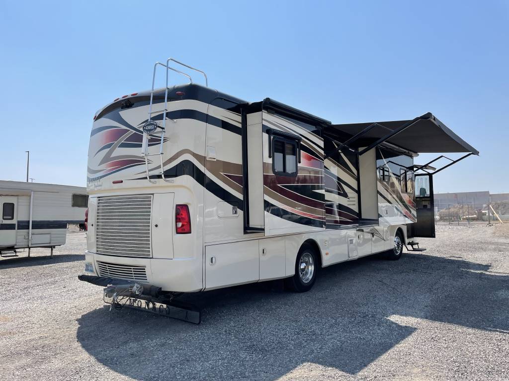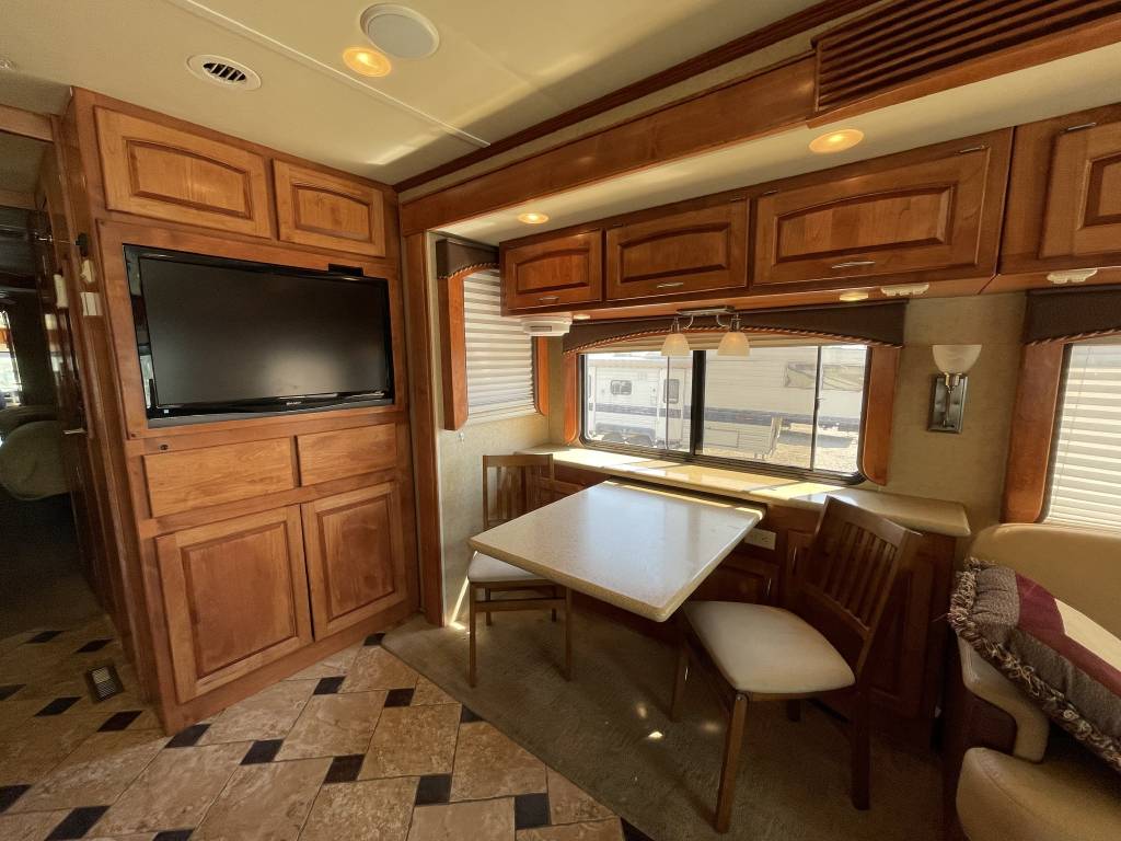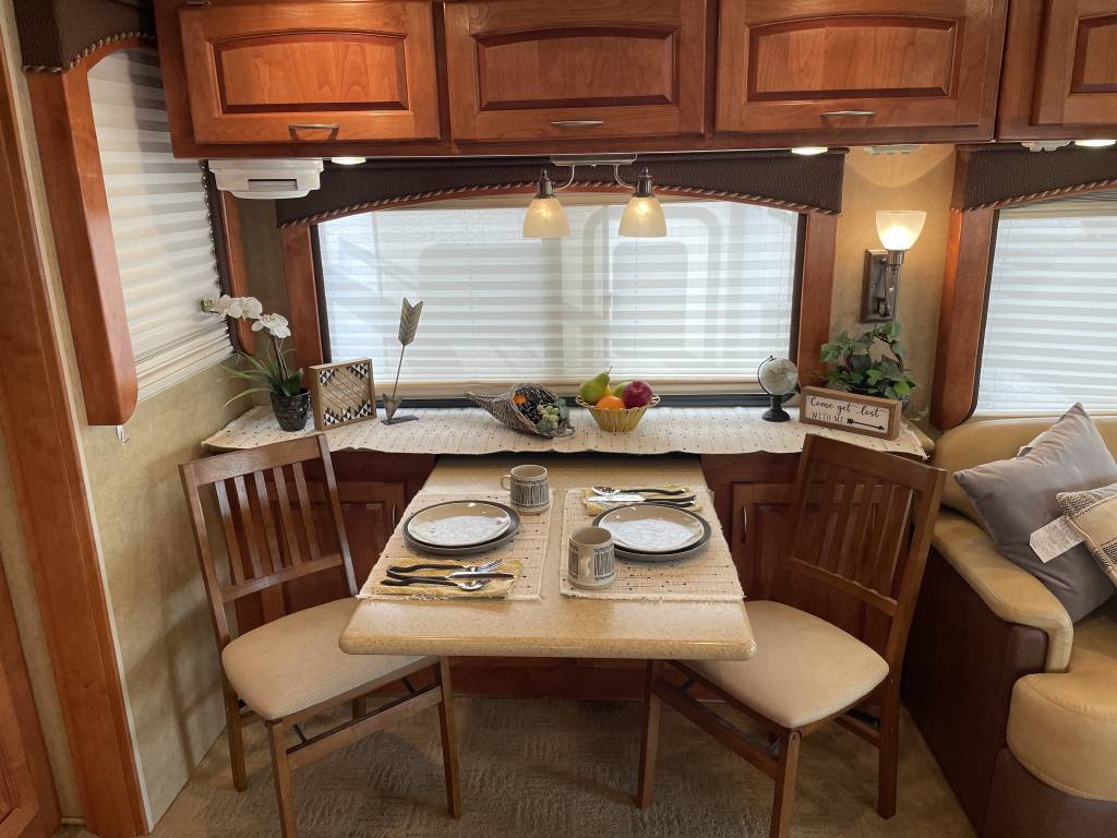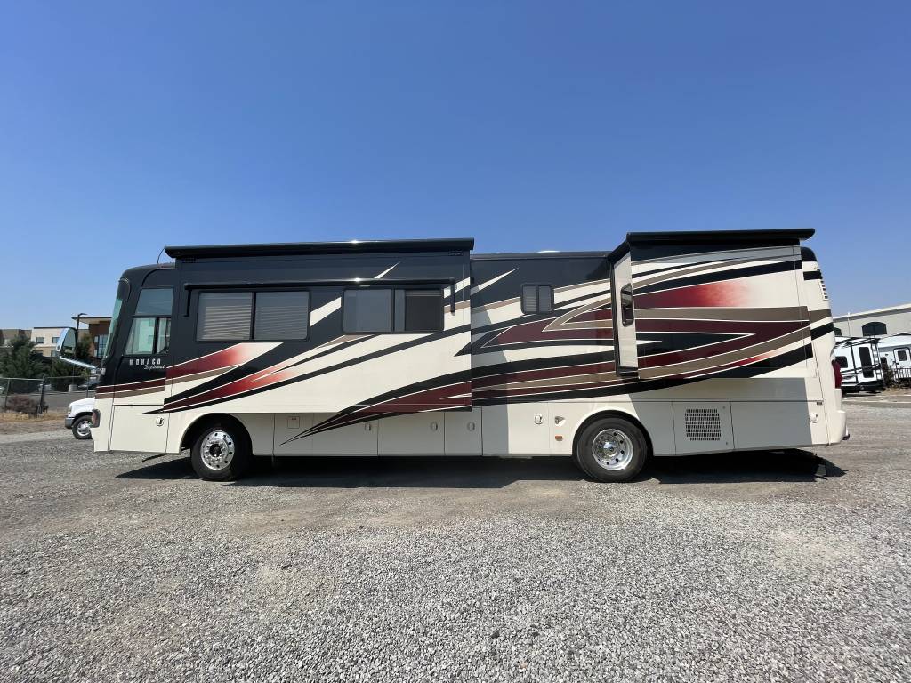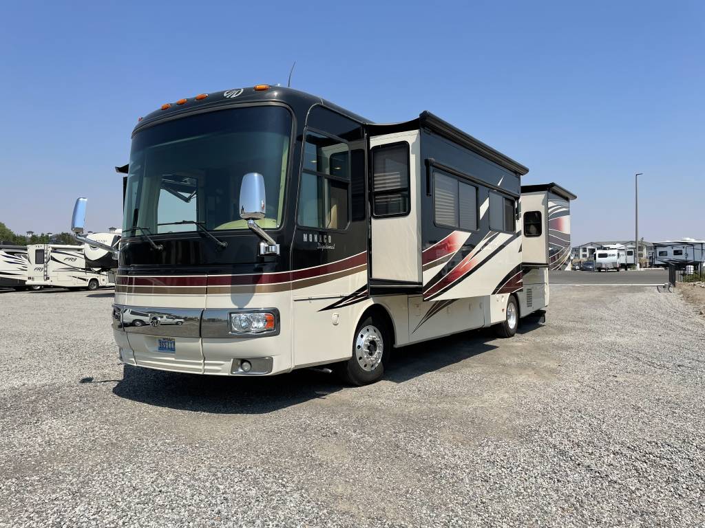 A beautiful 2009 Monaco Diplomat 38PDQ has arrived! The Diplomat is powerful with a 400HP Cummins Diesel Pusher engine and an automatic Allison Transmission, granting a 10,000lb Tow Capacity. You won’t find many powerful, quad-slide coaches out there UNDER 40ft!
