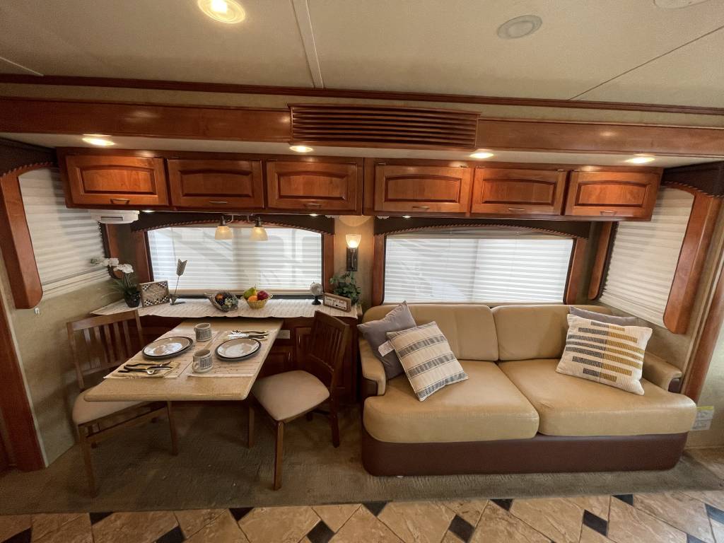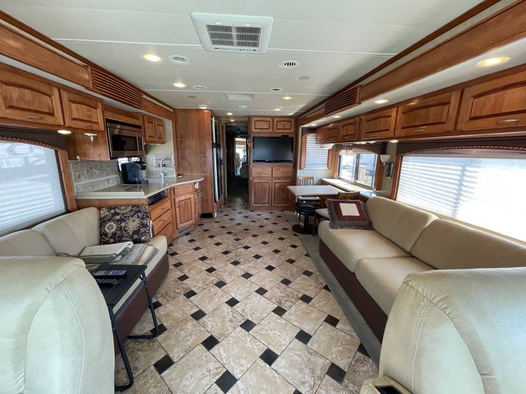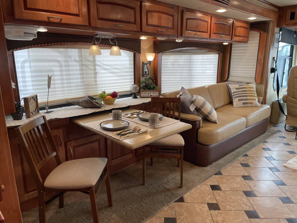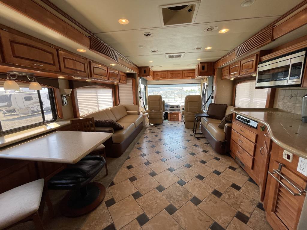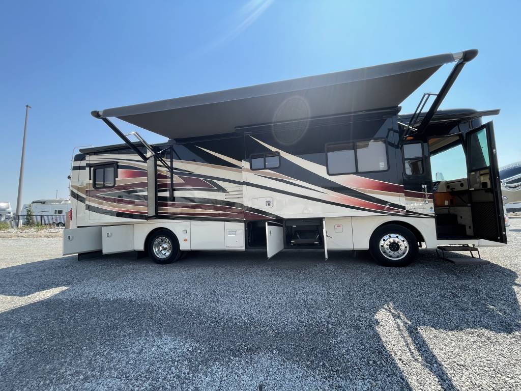 A beautiful 2009 Monaco Diplomat 38PDQ has arrived! The Diplomat is powerful with a 400HP Cummins Diesel Pusher engine and an automatic Allison Transmission, granting a 10,000lb Tow Capacity. You won’t find many powerful, quad-slide coaches out there UNDER 40ft!