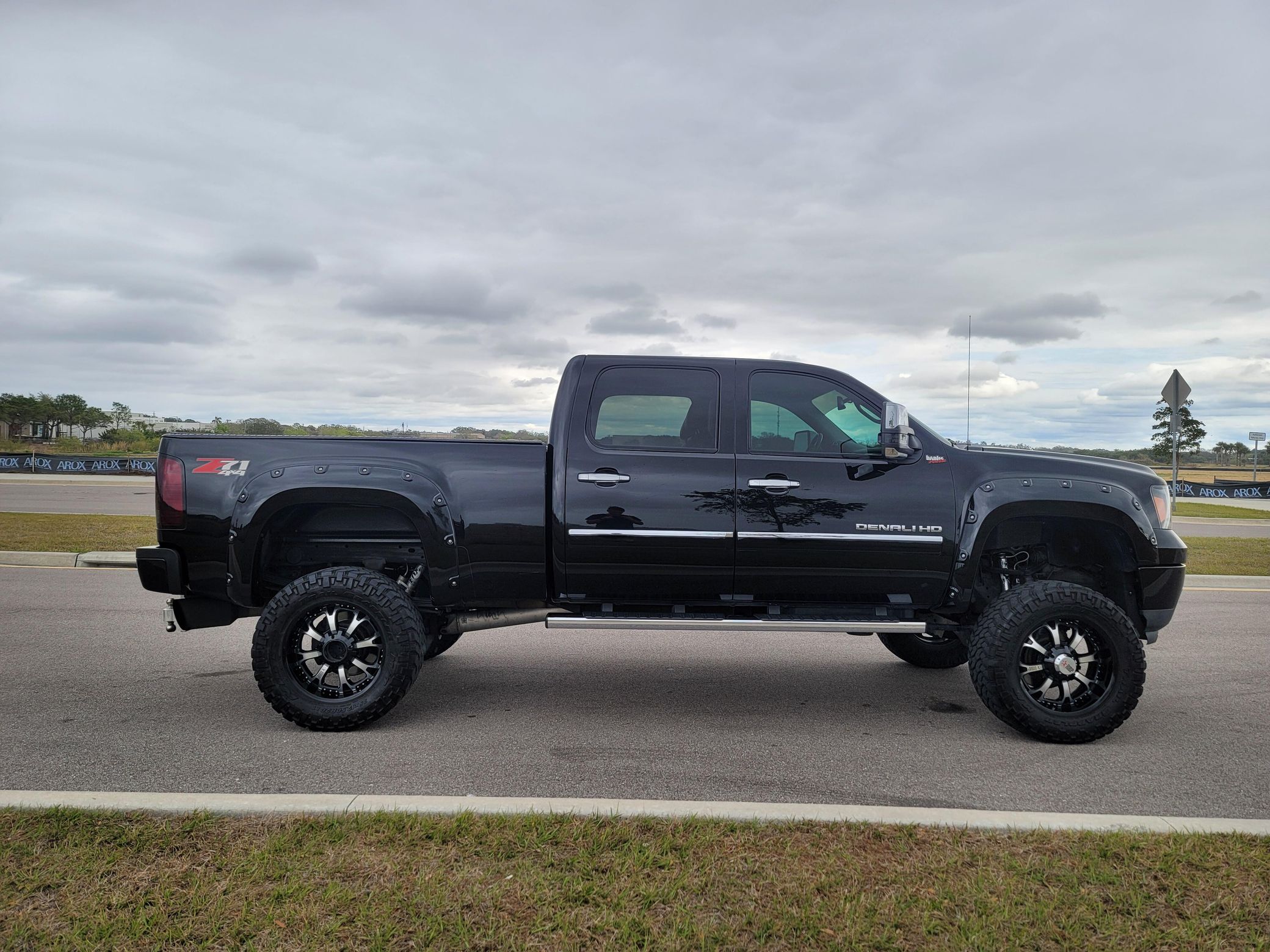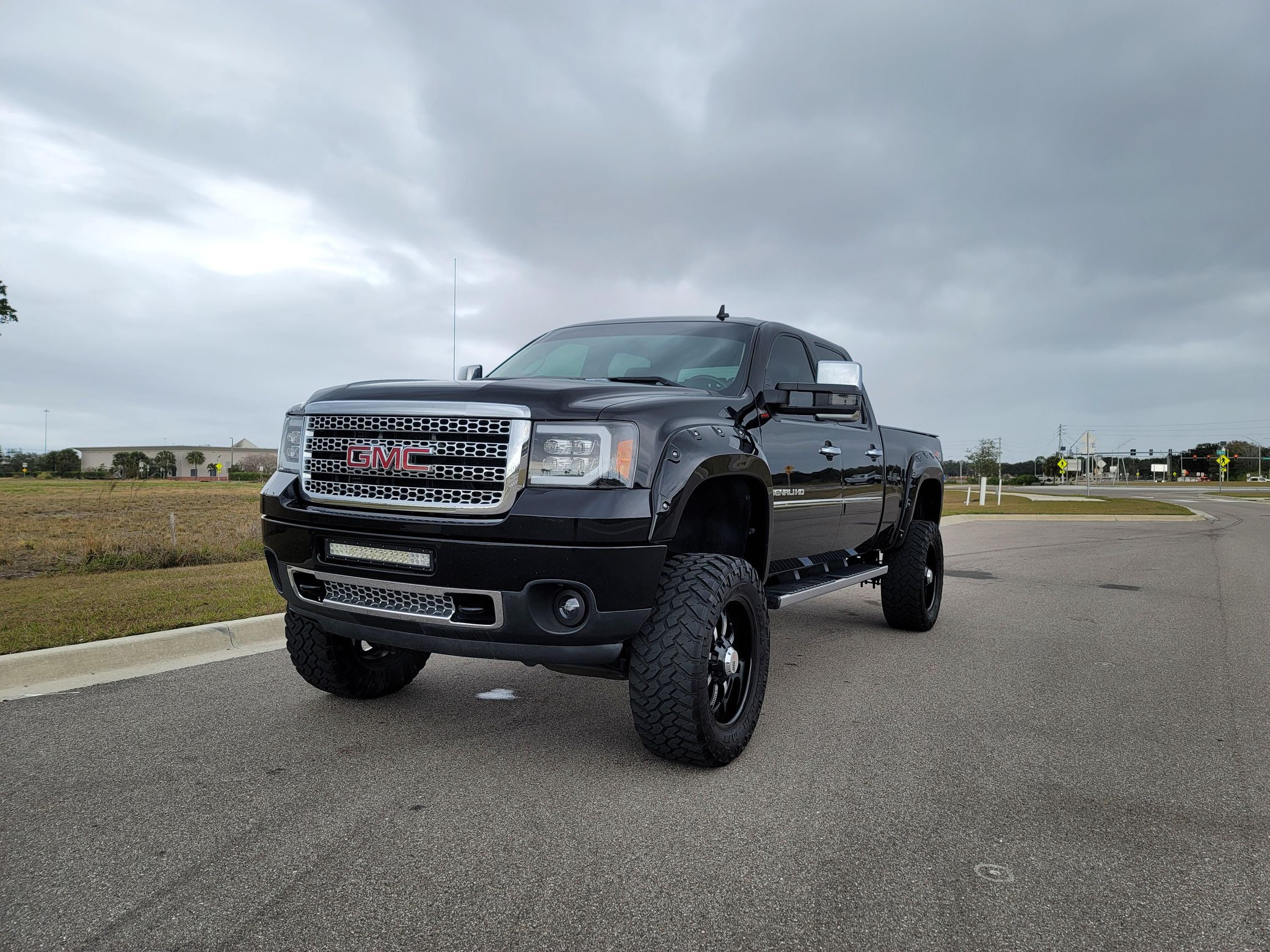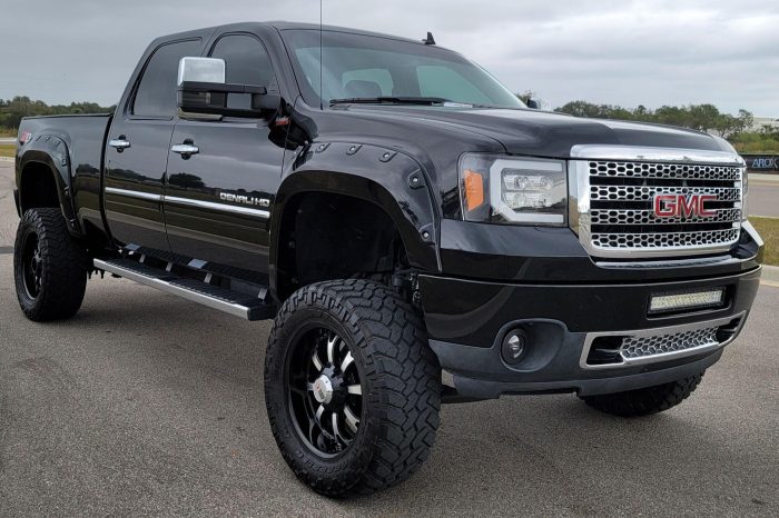 THIS… is a 2011 GMC Sierra 2500 Denali 4×4, finished in Onyx Black with an Ebony interior.This Sierra is equipped with the desirable Duramax turbodiesel V8 and Allison 6-speed automatic transmission. The attached Carfax history report shows no accidents or mileage discrepancies; it also shows that this truck has been registered in Arizona and Washington state since new. It came equipped with the Z71 Off-Road Suspension Package (off-road jounce bumpers, skid plates, Z71 decals), a locking rear differential, leather upholstery, heated and cooled front seats, power-adjustable pedals, dual-zone automatic climate control, a rearview camera, a navigation system, and more as detailed below. Modifications reported by the seller include 20-inch RBP wheels with 35-inch Nitto Trail Grappler tires, a custom exhaust system, a Banks Power intake, a Banks Power ECU tune, a Fabtech 6-inch lift kit, Fox shocks, an aftermarket front light bar, a Pioneer head unit with Apple CarPlay and Android Auto capability, and more as detailed below. The GMC Sierra Denali was marketed as the most luxurious version of GM’s trucks, offering not only a very long list of features as standard but also a distinct look from its siblings. It was seen as one of the first luxury-focused trucks in the market. Power comes from a 6.6-liter turbodiesel V8, which produces 397 horsepower and 765 lb-ft of torque in stock form. The modifications likely increase those figures, but a dyno sheet was not provided to confirm. Output is sent to the rear or all four wheels through an Allison 6-speed automatic transmission and a 2-speed transfer case.