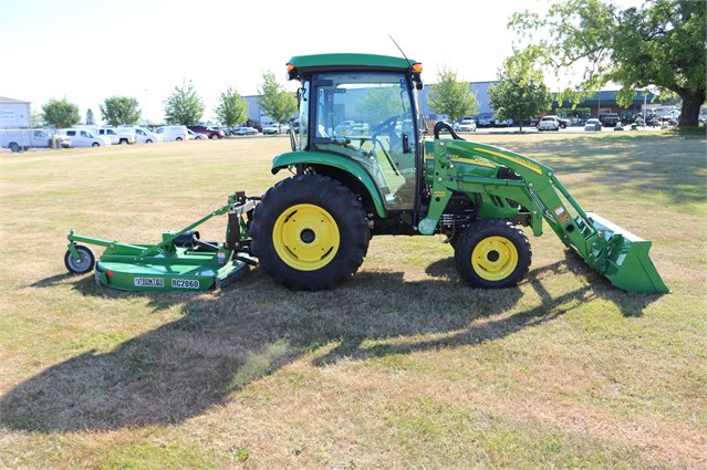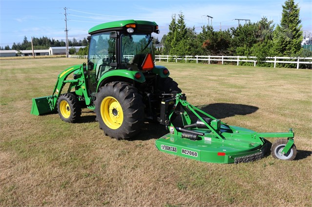 This is a stunning low how 4720 cab compact tractor. Deluxe cab, air suspension seat, defrost and ac, factory installed radio, auto throttle, 400X loader, quick hitch and it comes with an RC2060 rotary cutter.