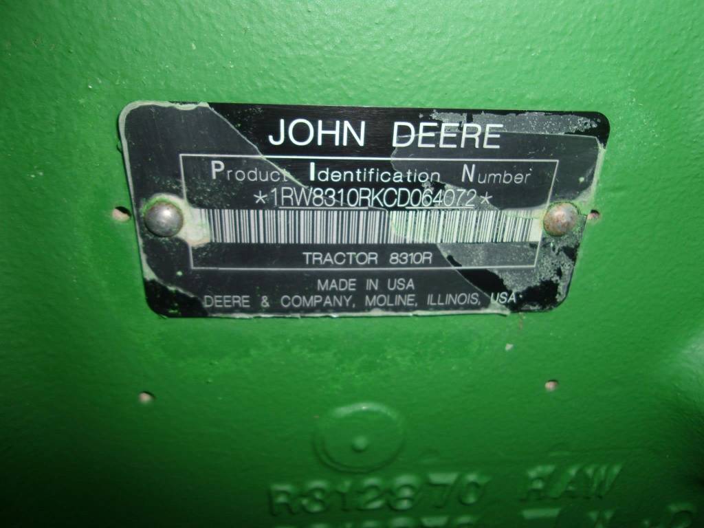 2013 JOHN DEERE, 8310R Tractors – 300 HP or Greater, 2013 8310R WITH 3400 HOURS, ONE OWNER TRACTOR FROM MID MO** NEW FRONT RUBBER, ILS/ IVT** 60 gpm pump 7 in touch display Cat 4 hitch and drawbar front fenders work light pkg 22 front weights 1400lb inside rear weights.