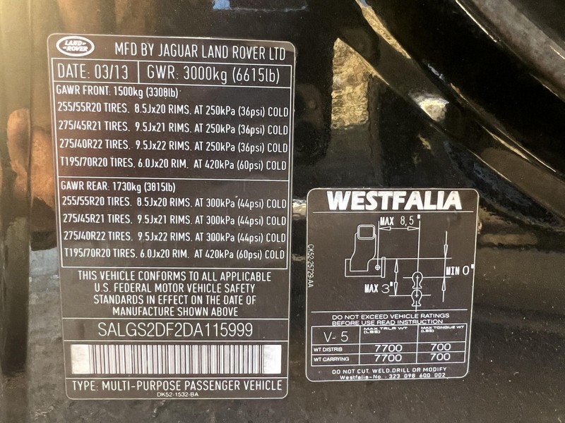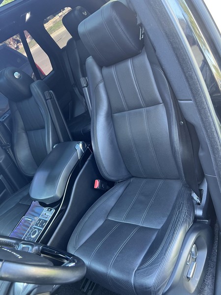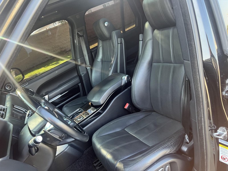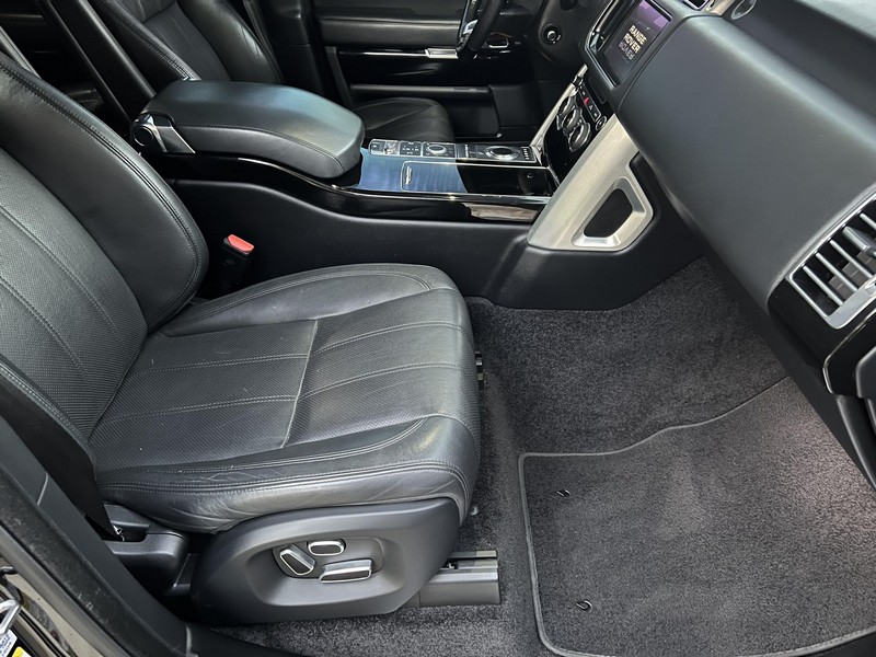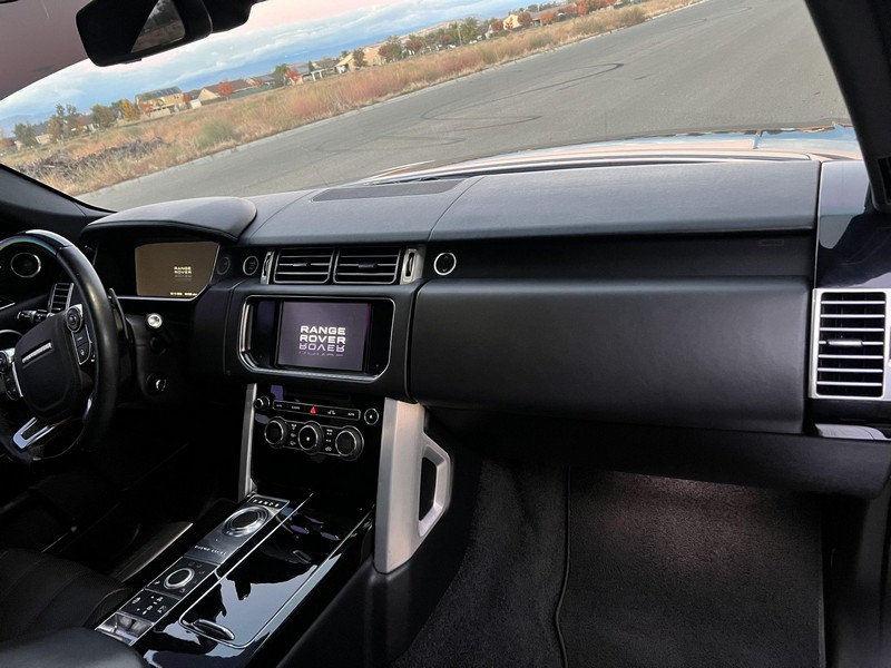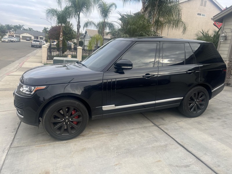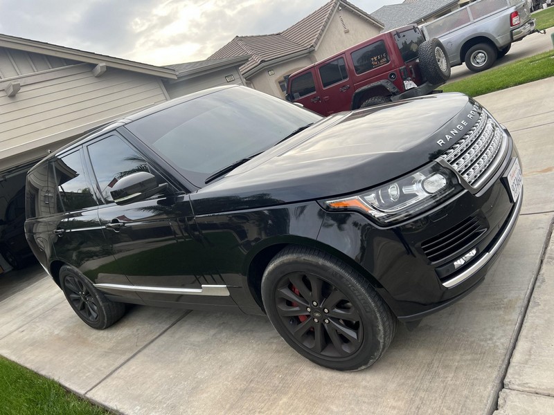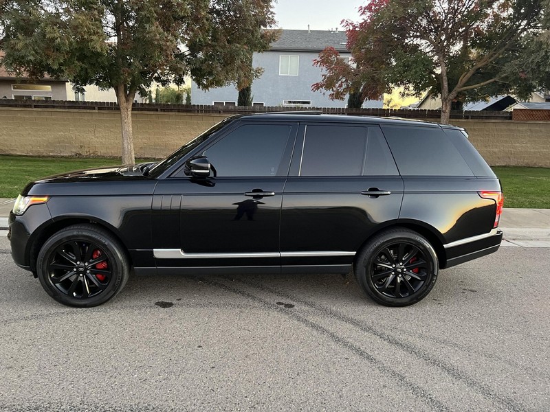 THIS… is a 2013 Range Rover HSE, finished in black with an Ebony interior. The attached Carfax history report shows this Land Rover has been California-owned since new. Factory equipment includes 20-inch wheels, a height-adjustable air suspension system, a sunroof, heated and power-adjustable front seats, heated rear seats, a 12.3-inch digital instrument cluster, and a Meridian sound system. Modifications reported by the seller include a black finish on the wheels, red-painted brake calipers, and tinted windows. Power comes from a 5.0-liter V8, rated at 375 horsepower and 375 lb-ft of torque. It spins the four wheels via an 8-speed automatic transmission and a 2-speed transfer case.