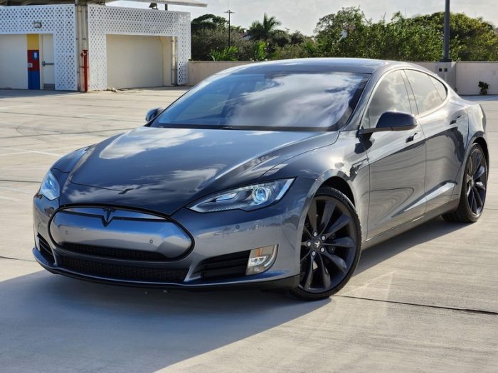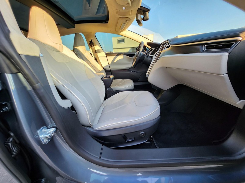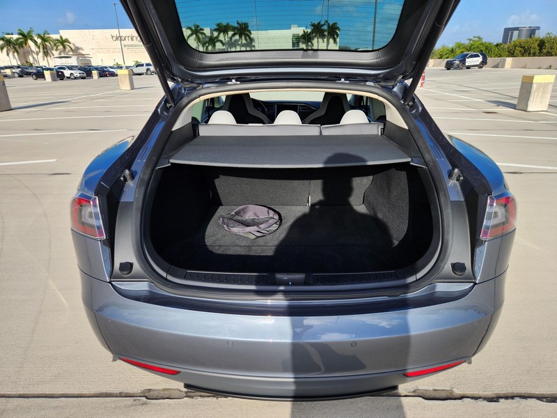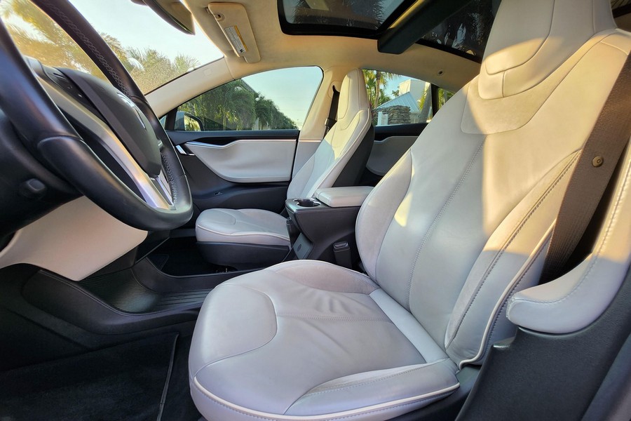 The attached Carfax history report lists no accidents or mileage discrepancies in this Tesla’s past. It also shows one owner and registrations in Florida since new. Factory equipment includes 21-inch wheels, air suspension, a panoramic glass roof, a premium interior, a 17-inch touchscreen infotainment system, a premium audio system, and a HomeLink garage door opener. Power comes from a rear-mounted electric motor, which draws electricity from an 85-kWh lithium-ion battery pack to zap the rear wheels with 416 horsepower and 443 lb-ft of torque.