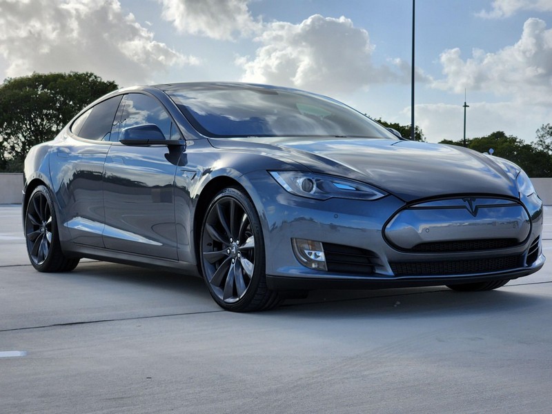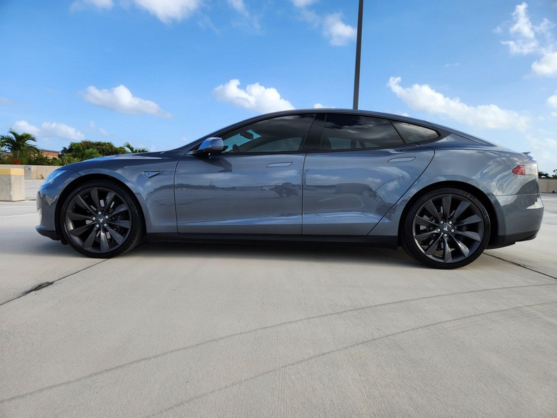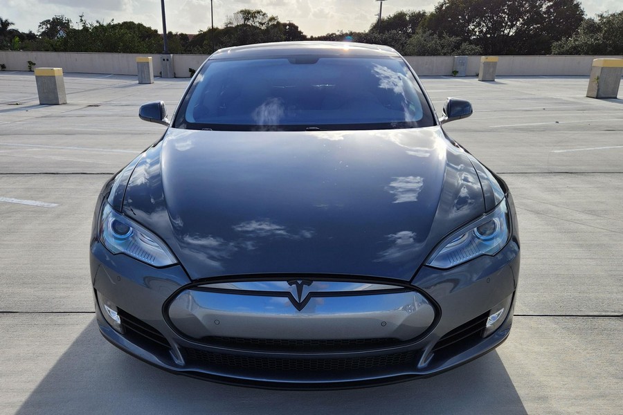 THIS… is a 2013 Tesla Model S P85+, finished in grey with a black and grey interior. The odometer on this Model S indicates roughly 14,300 miles.