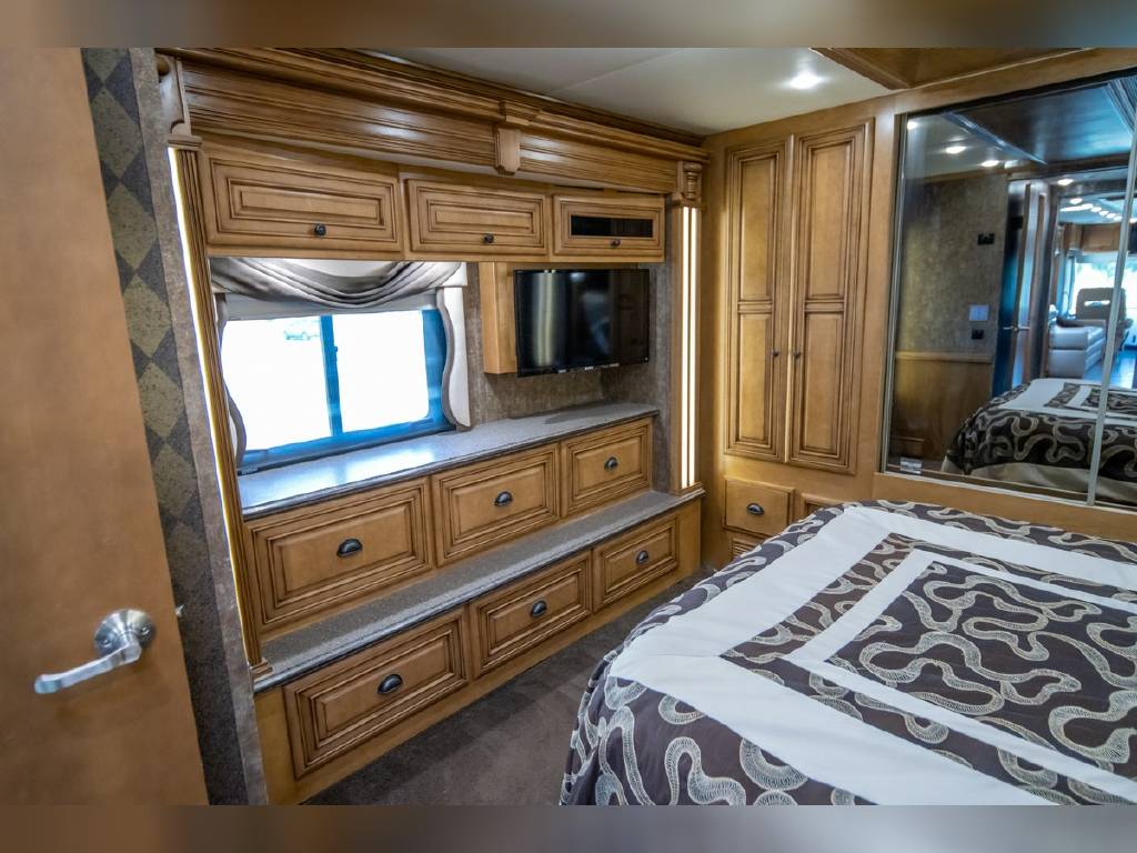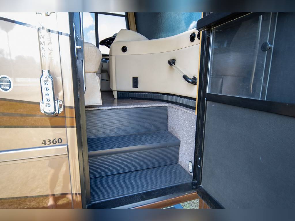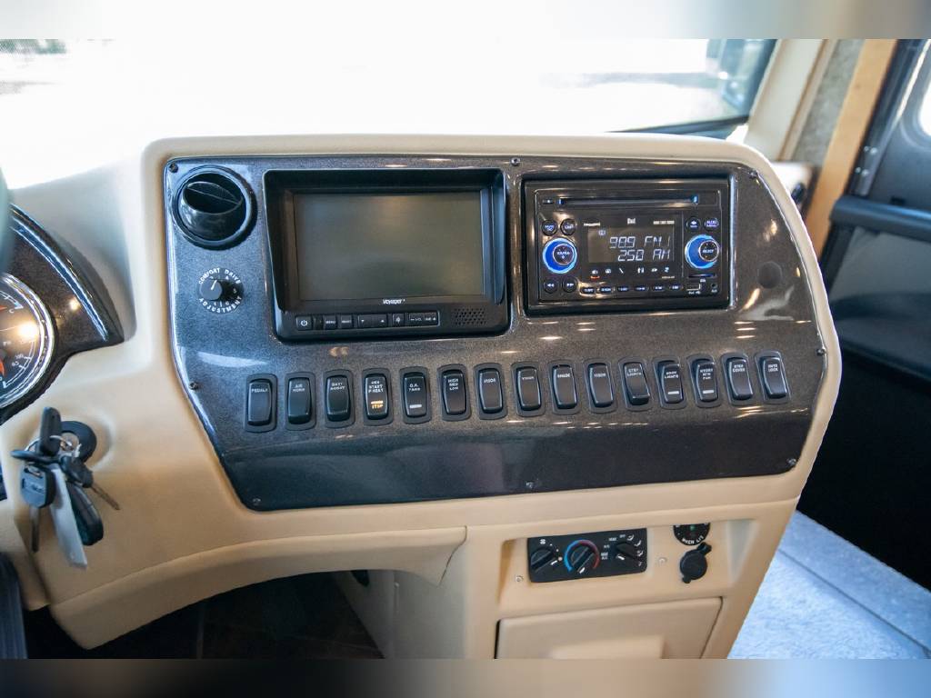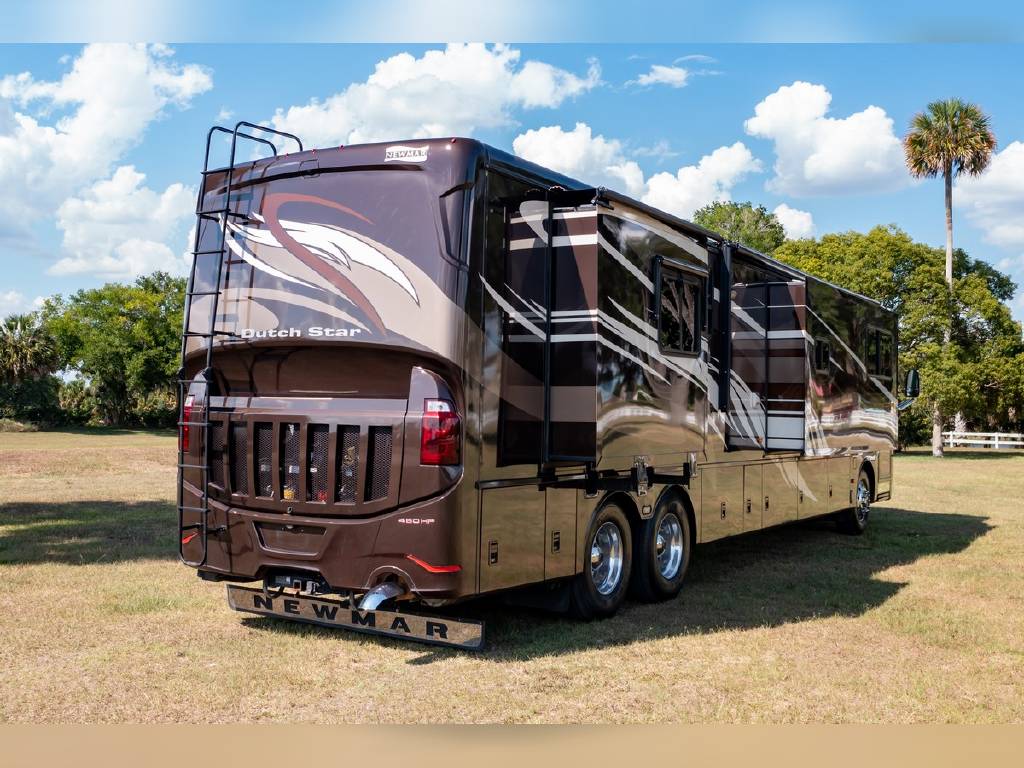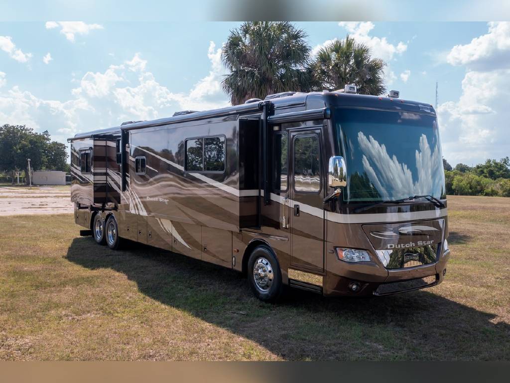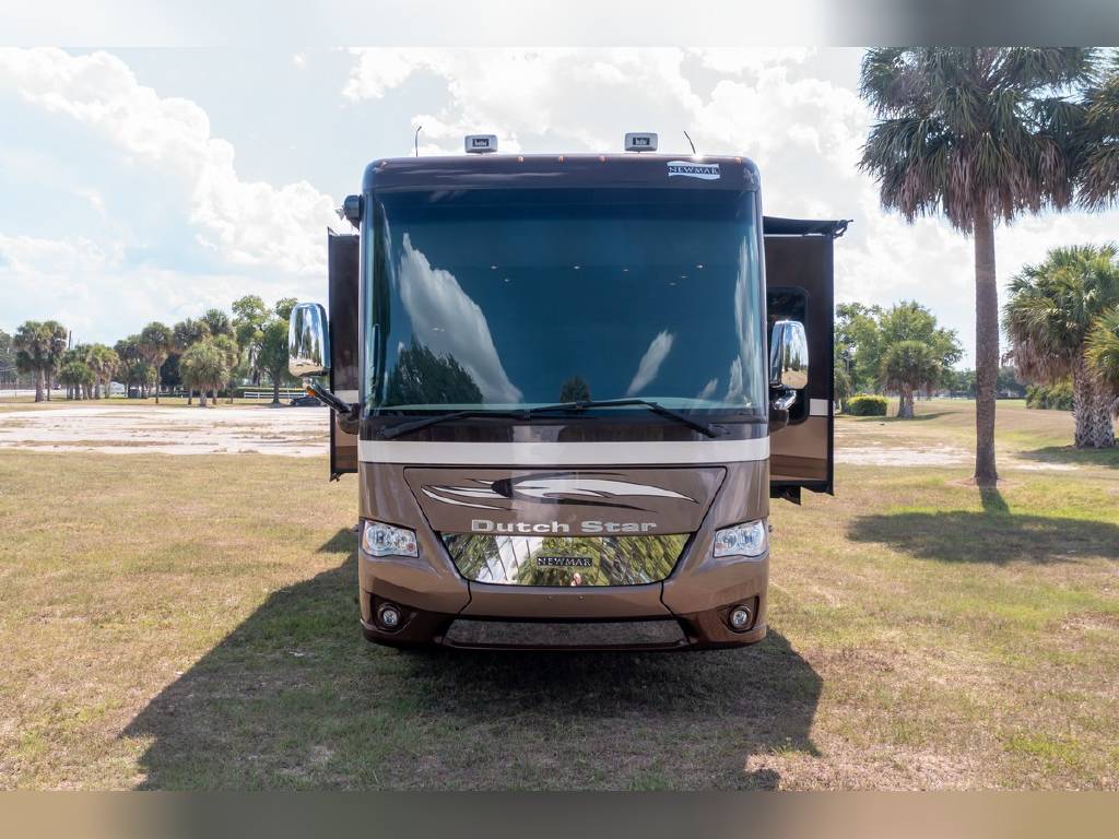 2014 Newmar DutchStar 4360 4 slide motorhome with 25,214 miles. This coach is on a Freightliner chassis powered by a 450HP Cummins diesel with Allison Transmission. This coach is fully loaded and includes Comfort Drive steering with adjustable control, porcelain floor with glass tile inserts, 50″ HDTV overhead mount, desk/ dinette with hidden leaf, vertical fascia accent lighting, king bed, residential refrigerator, rearview monitoring system, and more!