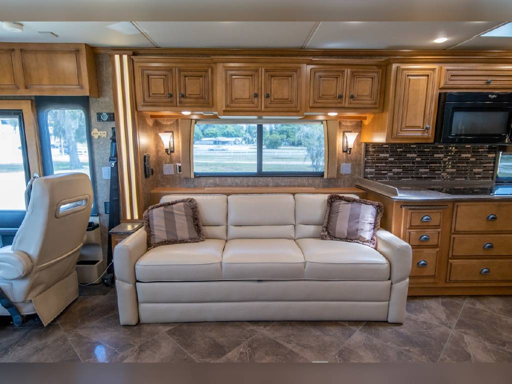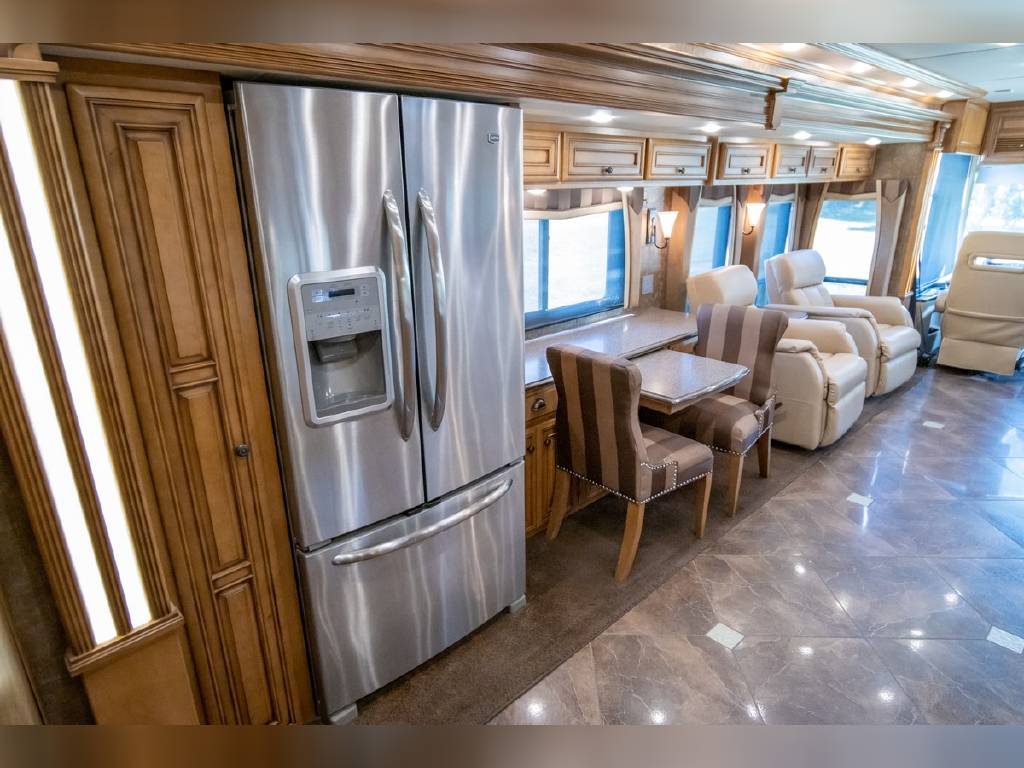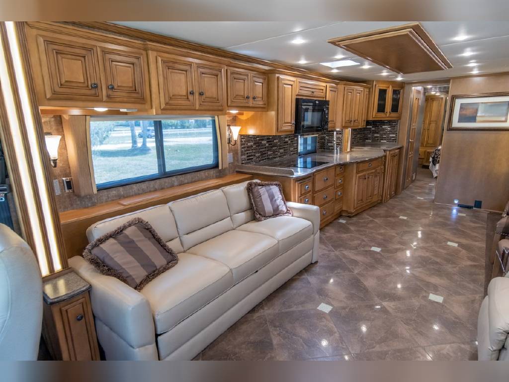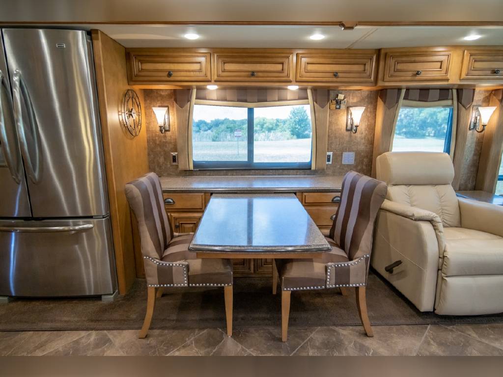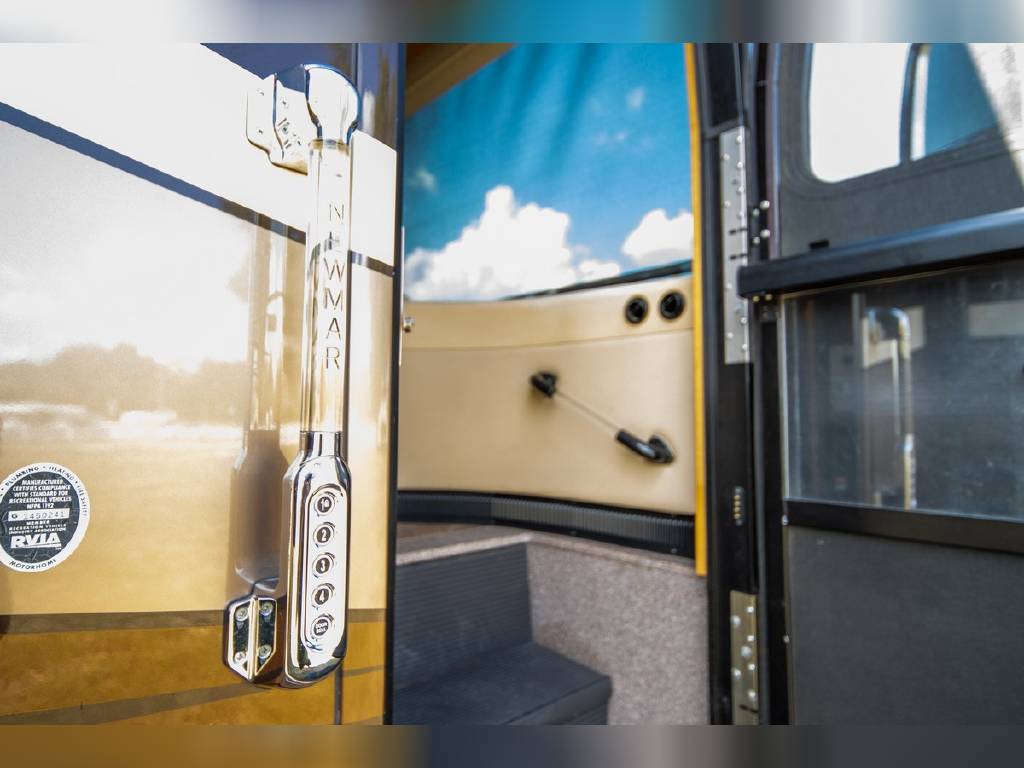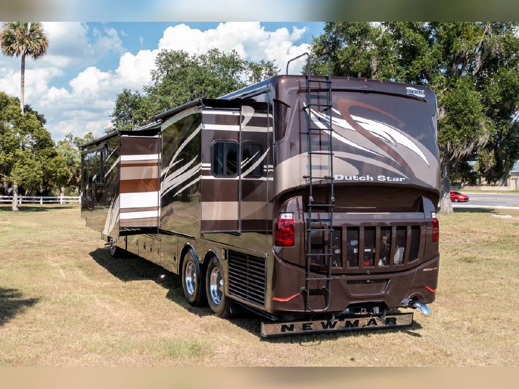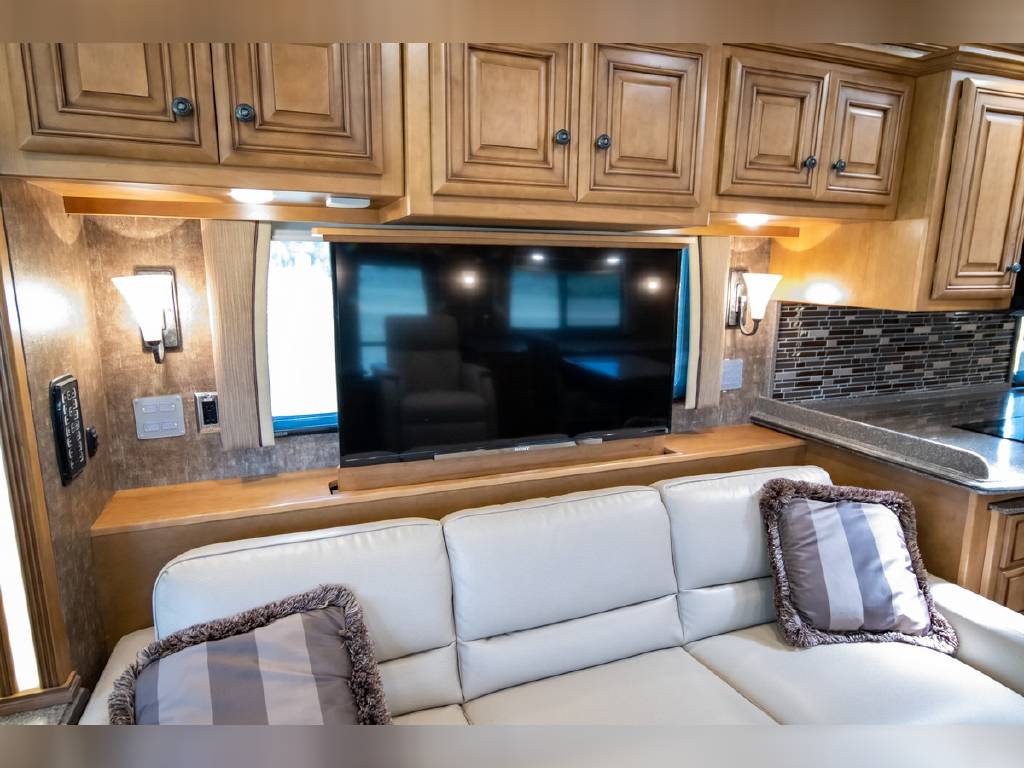 2014 Newmar DutchStar 4360 4 slide motorhome with 25,214 miles. This coach is on a Freightliner chassis powered by a 450HP Cummins diesel with Allison Transmission. This coach is fully loaded and includes Comfort Drive steering with adjustable control, porcelain floor with glass tile inserts, 50″ HDTV overhead mount, desk/ dinette with hidden leaf, vertical fascia accent lighting, king bed, residential refrigerator, rearview monitoring system, and more!