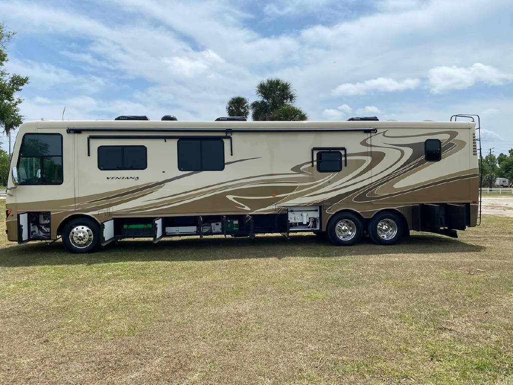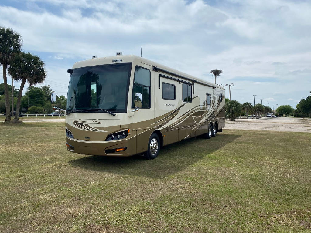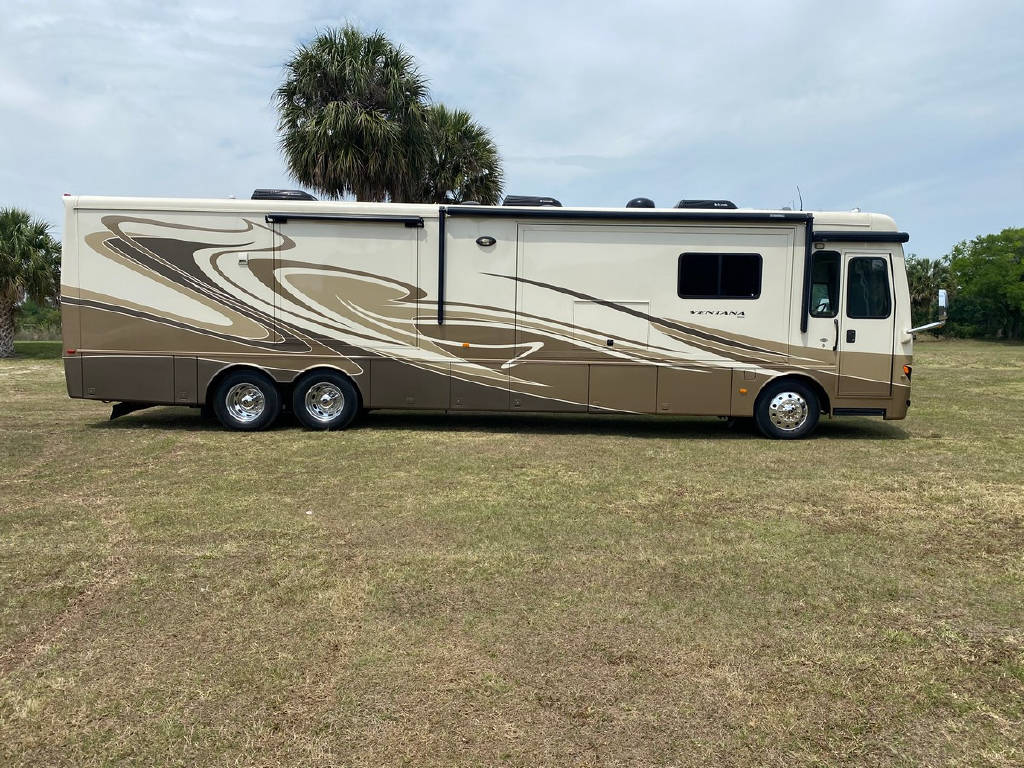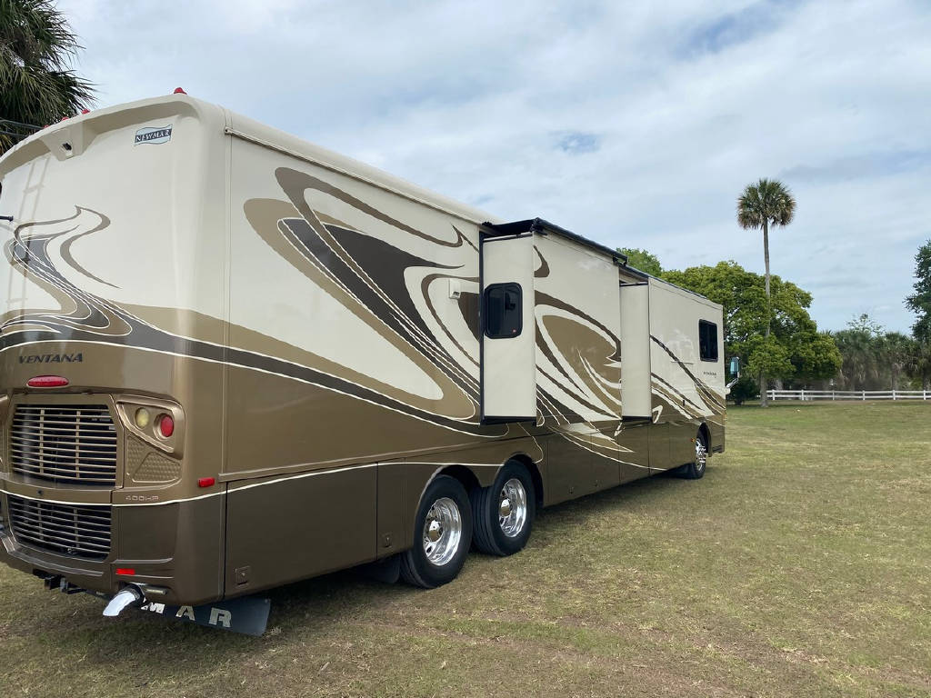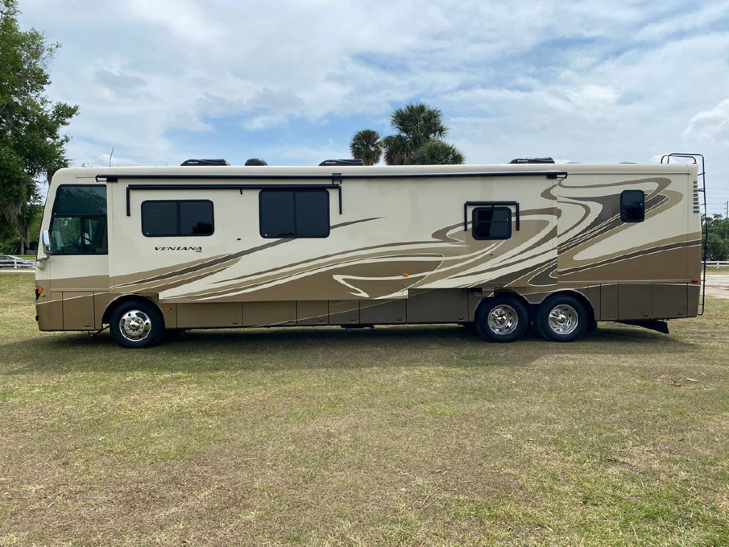 2014 Newmar Ventana 4369 3 slide motorhome with 25502 miles. This coach is on a Freightliner Chassis powered by a 400HP Cummins Diesel with Allison Transmission. This coach includes Residential Fridge, HD TVs, Electric Cooktop, a Stacked Washer/Dryer, Bath 1/2, King Bed & more !!!!