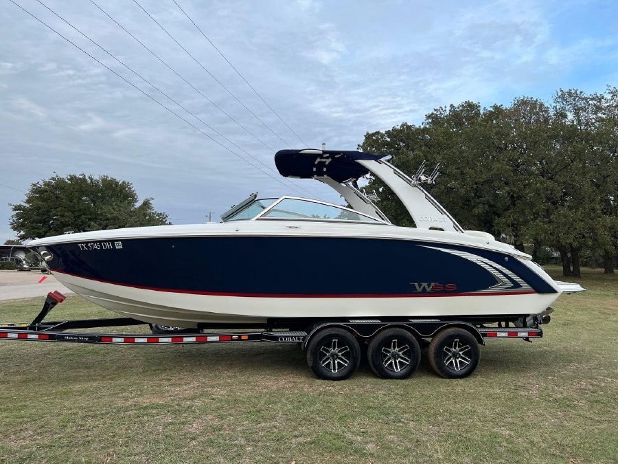 2015 Cobalt R7WSS. Trailer is included. This is a clean boat with great list of upgrades and it was the actual boat used in the 2015 Model photo shoot! Navy Blue w/ Red Stripe, Fuel Injected Volvo V8-380HP EVC Engine w/ Dual Prop, 304 Hours, Fixed Arch w/ Bimini Top, Trim Tabs with AutoGlide System, Garmin GPS. Pump Out Porta Potti, Swivel Board Racks, Snap-out Carpet, Extended Swim Platform w/ Flip Step, SeaDek on Platform, Docking Lights, Mooring Cover, Cockpit Table, Depth Finder, Tilt Steering Wheel, Upgraded Del Mar Sport Captain’s Chair w/ Bolster, Premium Sound System w/ Transom Speakers, Sub, & Amp, Swim Platform Lighting (above water), Fender Clips, Air Compressor, Dual Batteries w/ Switch. Excellent Condition. One Owner Freshwater Only Boat!