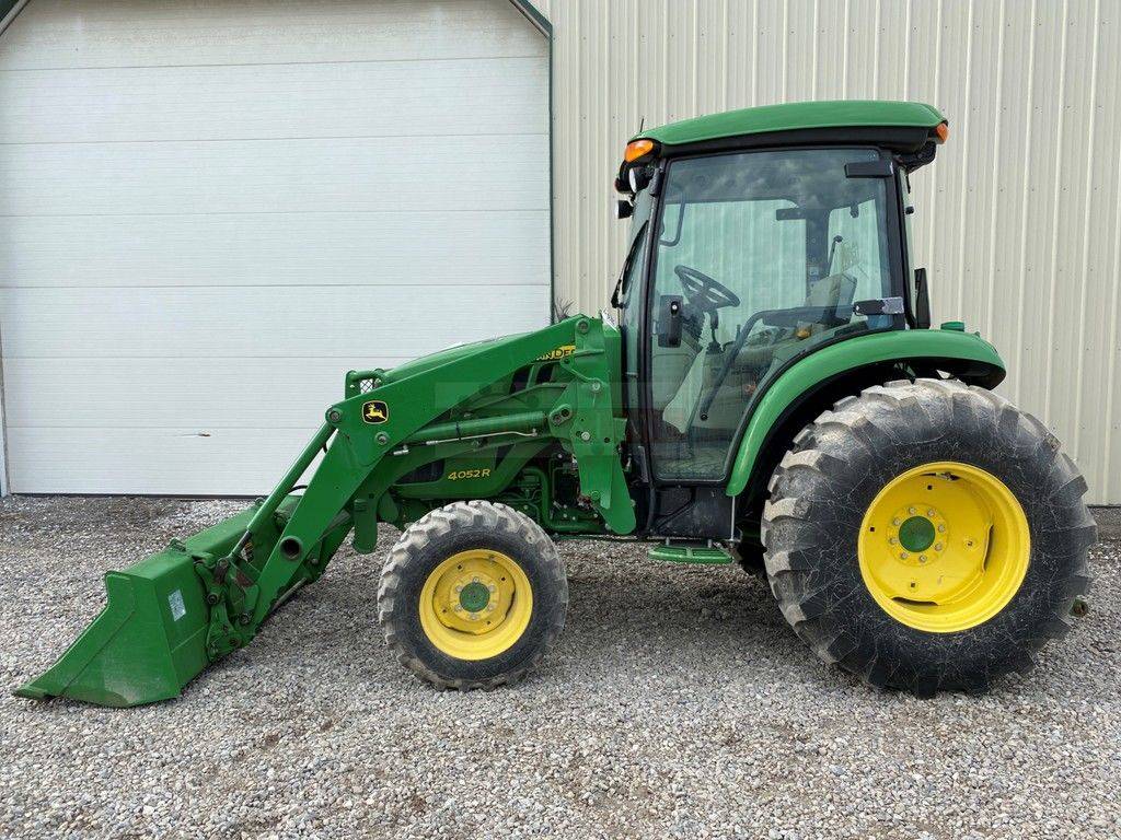 2016 John Deere, 4052R, FULLY ENCLOSED CAB, 561 HOURS, 4X4, 3 POINT, 540 PTO, DRAWBAR, BRUSHGUARD, HEAT & A/C, RADIO, 3 RANGE HYDROSTATIC TRANMISSION, 51 HP YANMAR DIESEL ENGINE, 3,770 LB OPERATING WEIGHT, 74″ BUCKET, 10-16.5 FRONT TIRES, 16.9-24 REAR TIRES, FRESH SERVICE & MULTI-POINT INSPECTION COMPLETED BY A CERTIFIED TECHNICIAN.