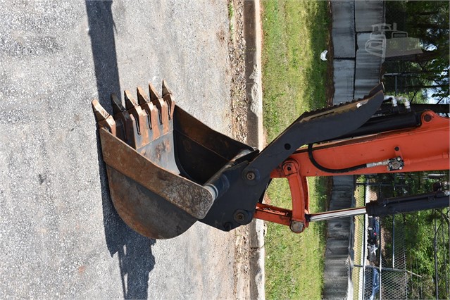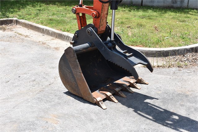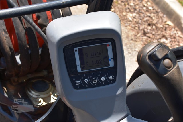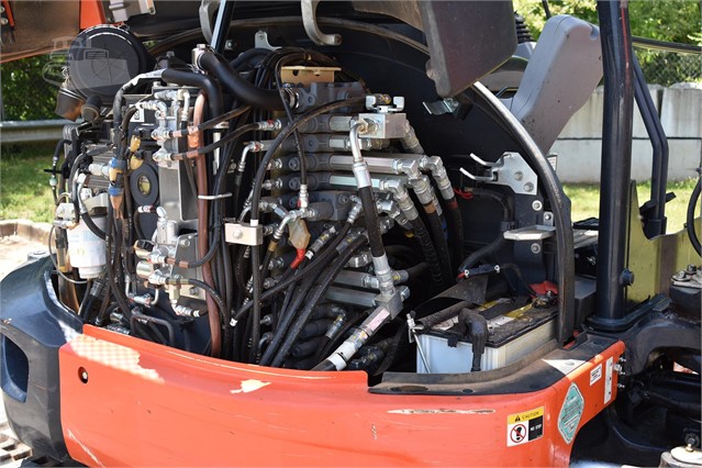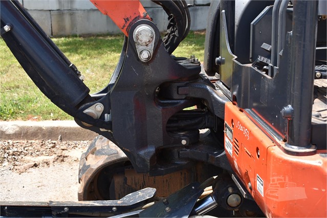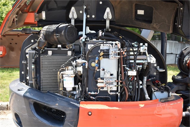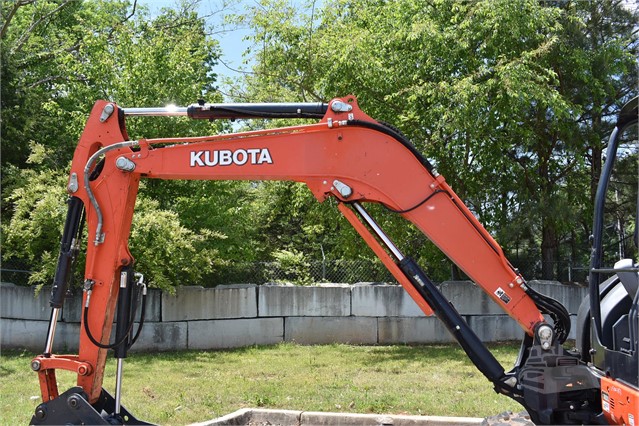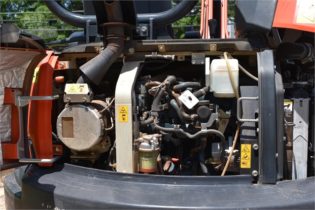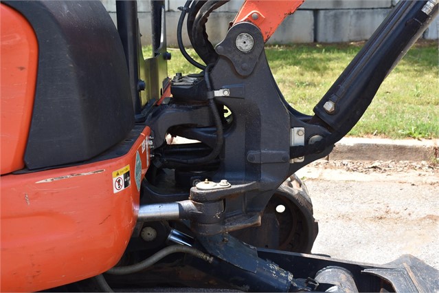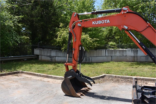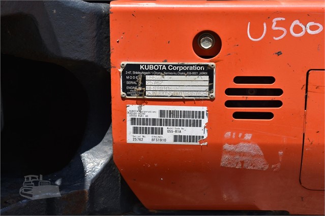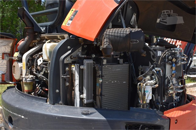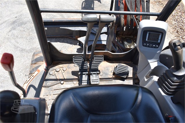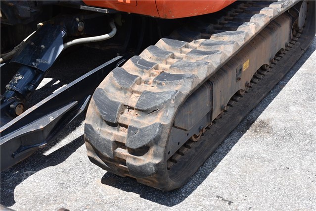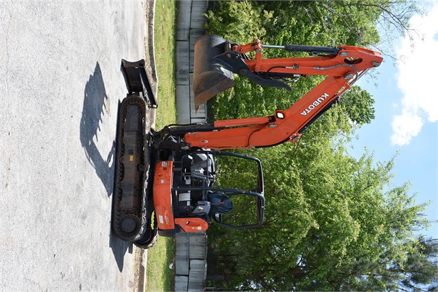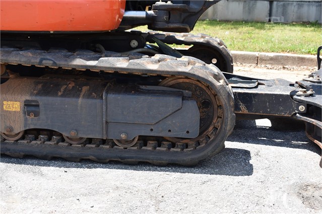 2016 Kubota U55-4 Mini Excavator. 894 hours. Open ROPS. Angle blade. Quick coupler. Hydraulic thumb. 24″ bucket. Kubota 47.6 hp (45.2 hp net) diesel engine 16″ rubber tracks 18” pin-on trenching bucket 6 ft. 5 in. Wide angle dozer blade thumb bracket 11,177 lb. Bucket breakout force 11 ft. 10 in. Maximum dig depth pump capacity gpm- 14.8 variable x 2 / 9.8 gear x 1 two travel speeds – 1.8/3.1 mph two-pattern selection system 18 gallon fuel capacity dimensions: 18’0”l x 6’5.2”w x 8’4.4”h. Operating weight: 12,280 lbs.