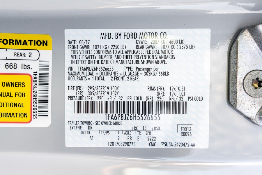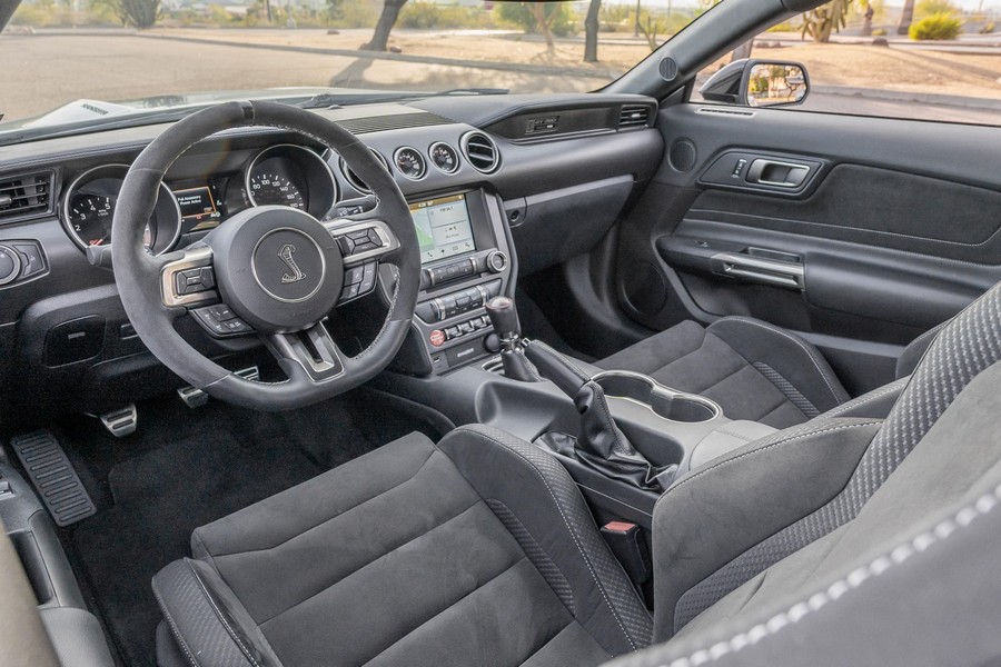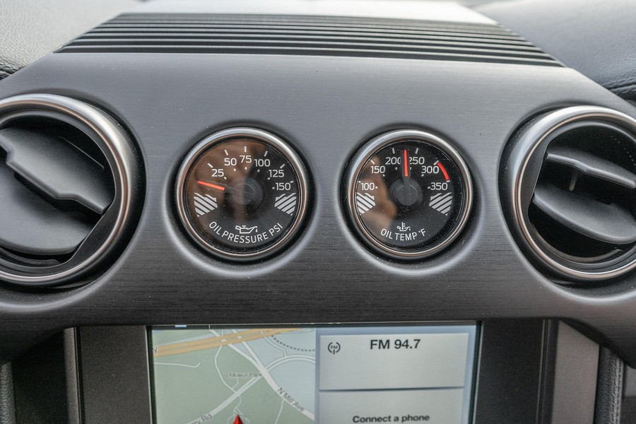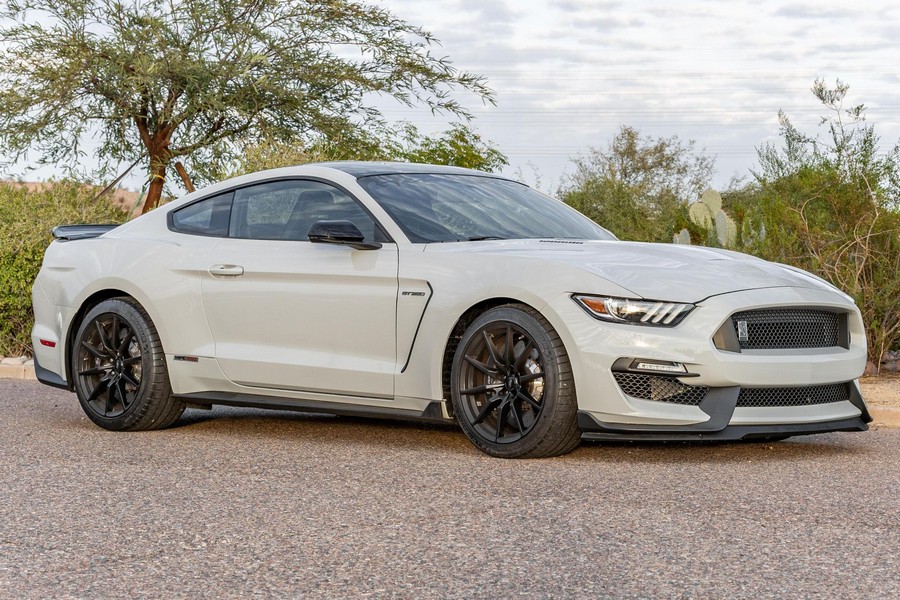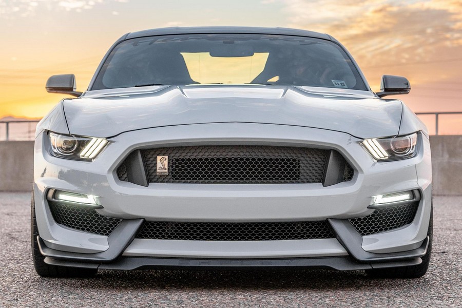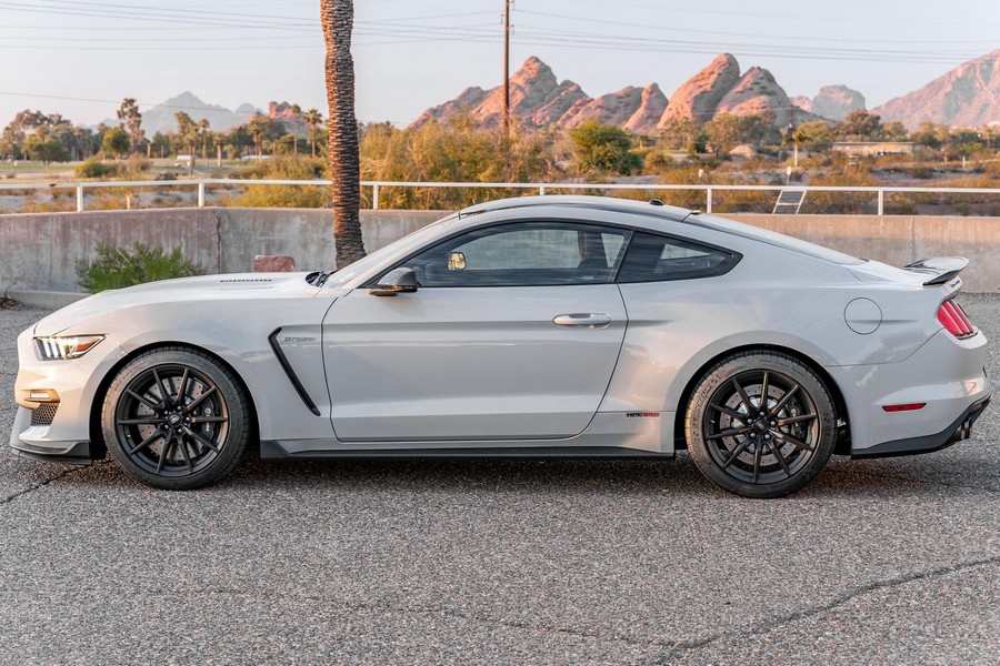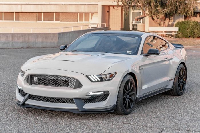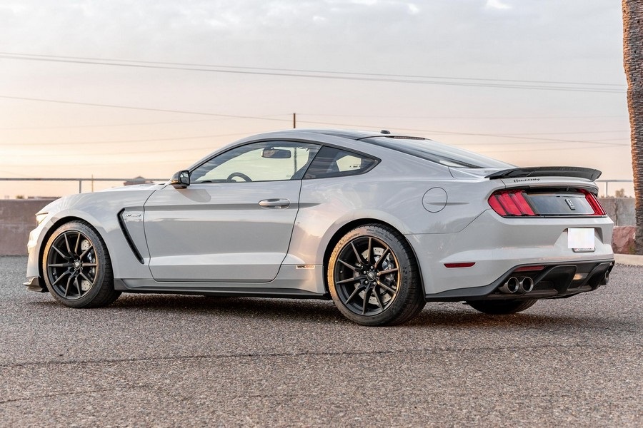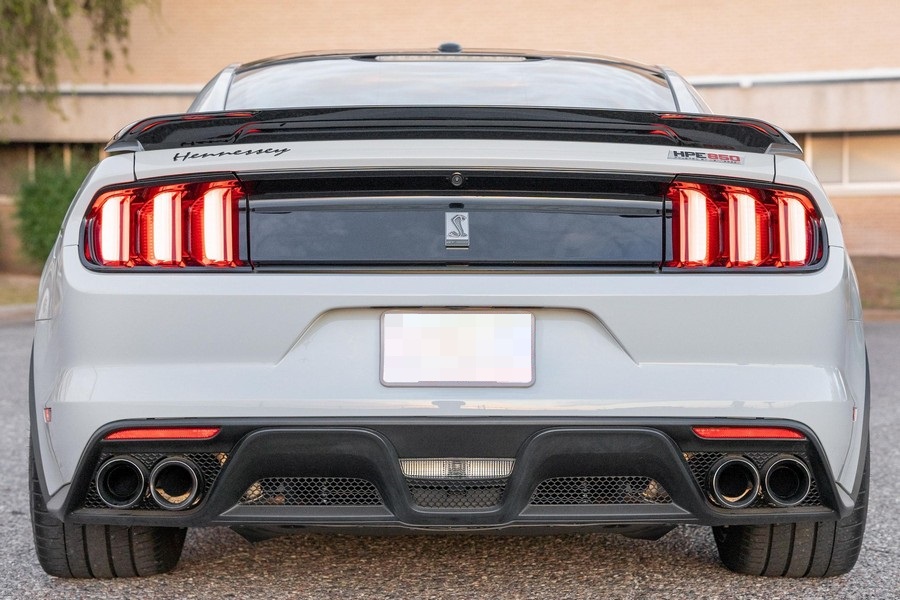 THIS… is a 2017 Ford Mustang Shelby GT350, finished in Avalanche Gray with an Ebony interior. This coupe’s odometer displays about 900 miles. The attached Carfax history report lists no accidents or mileage inconsistencies in this Ford’s past. This GT350 received Hennessey Performance’s HPE850 Package in January 2018 at 357 miles, according to documents pictured in the gallery. The package includes a 2.9-liter supercharger set to 5-6 psi of boost, high-flow fuel injectors, a high-flow air induction system, exterior emblems, and a serialized plaque. New excluding the Hennessey modifications. Factory equipment includes the Electronics Package, 19-inch wheels, the MagneRide damping system, Brembo brake calipers, leather and suede upholstery, Recaro front sport seats, split-folding rear seats, and an 8-inch touchscreen for the SYNC 3 infotainment system. Power comes from a 5.2-liter supercharged “Voodoo” V8, rated at 526 horsepower and 429 lb-ft of torque when left stock and naturally-aspirated. The modifications increase those figures to 850 horsepower and 673 lb-ft of torque, according to Hennessey, and a dyno sheet showing horsepower and torque at the wheels is pictured in the gallery. The engine spins the rear wheels via a 6-speed manual transmission.