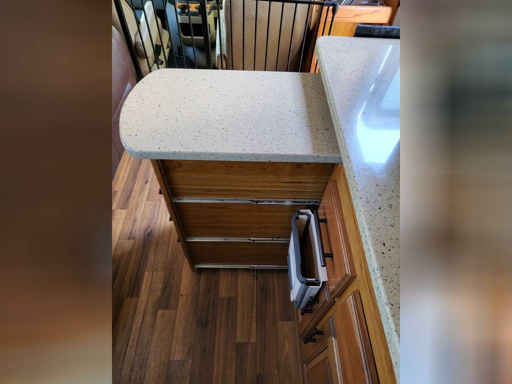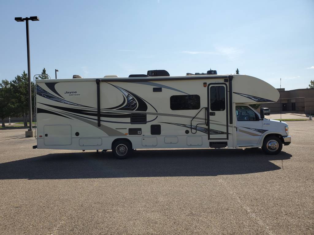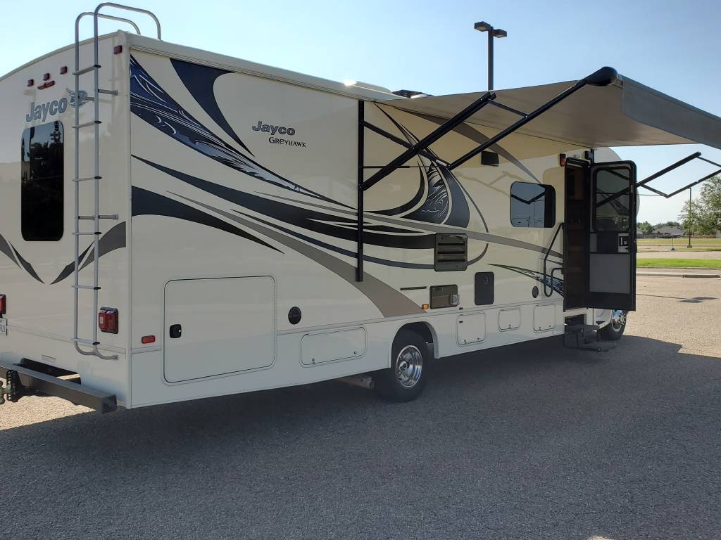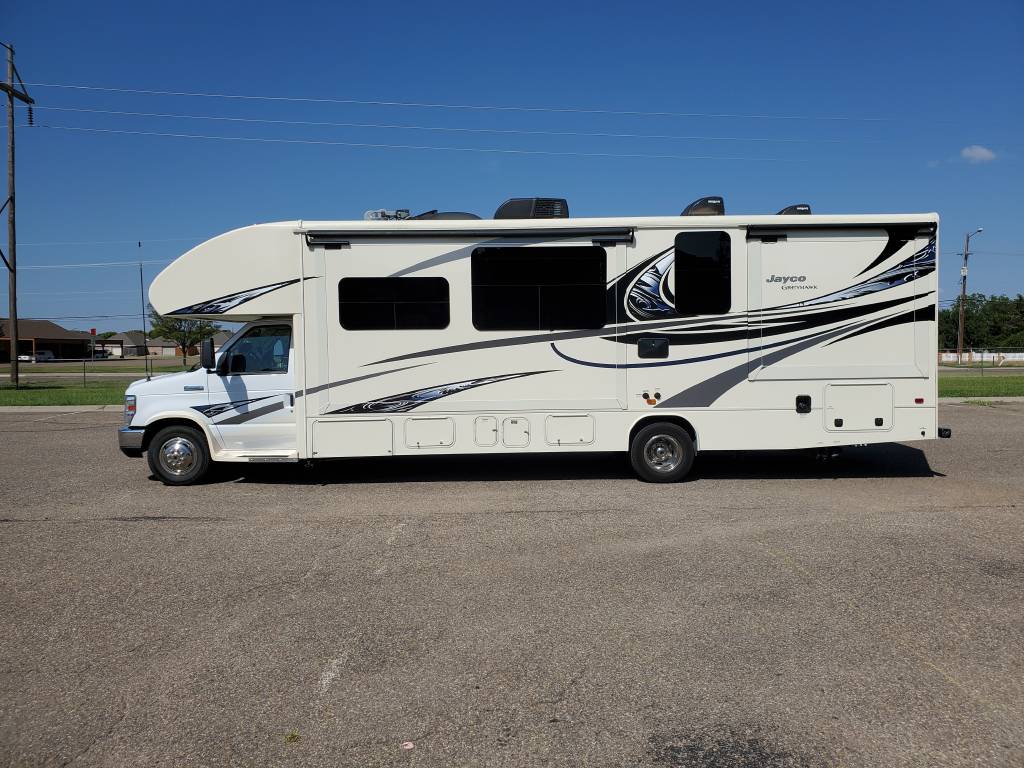 F450, Ford V10, Smoke Free, Onan Generator 525hrs, Automatic leveling system, 2 slideouts, Blackwater flushout, Outside shower, Country Fill Option, Front entertainment Center package with flat screen TV and sleeping area, TV in bedroom, Instant Hot water heater, Ducted Heat and Air, Water Filtration System, 4 Door extra large refrigerator with wood accent, Tank Heaters, J Ride stabilization system with Bilstein Shocks.