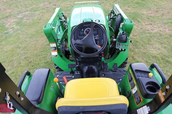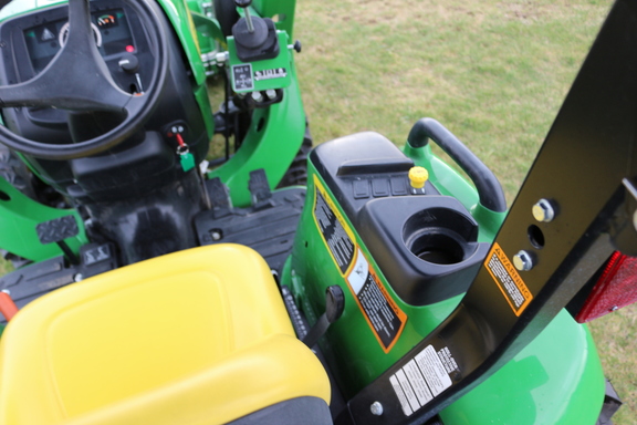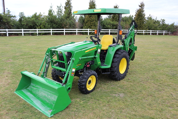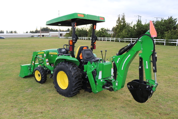 2017 John Deere 3025E, 33 hours, has a D160 loader, Woods BH75-1 backhoe and John Deere canopy attached. Transmission – Hydro, Front Axle – MFWD, Loader.