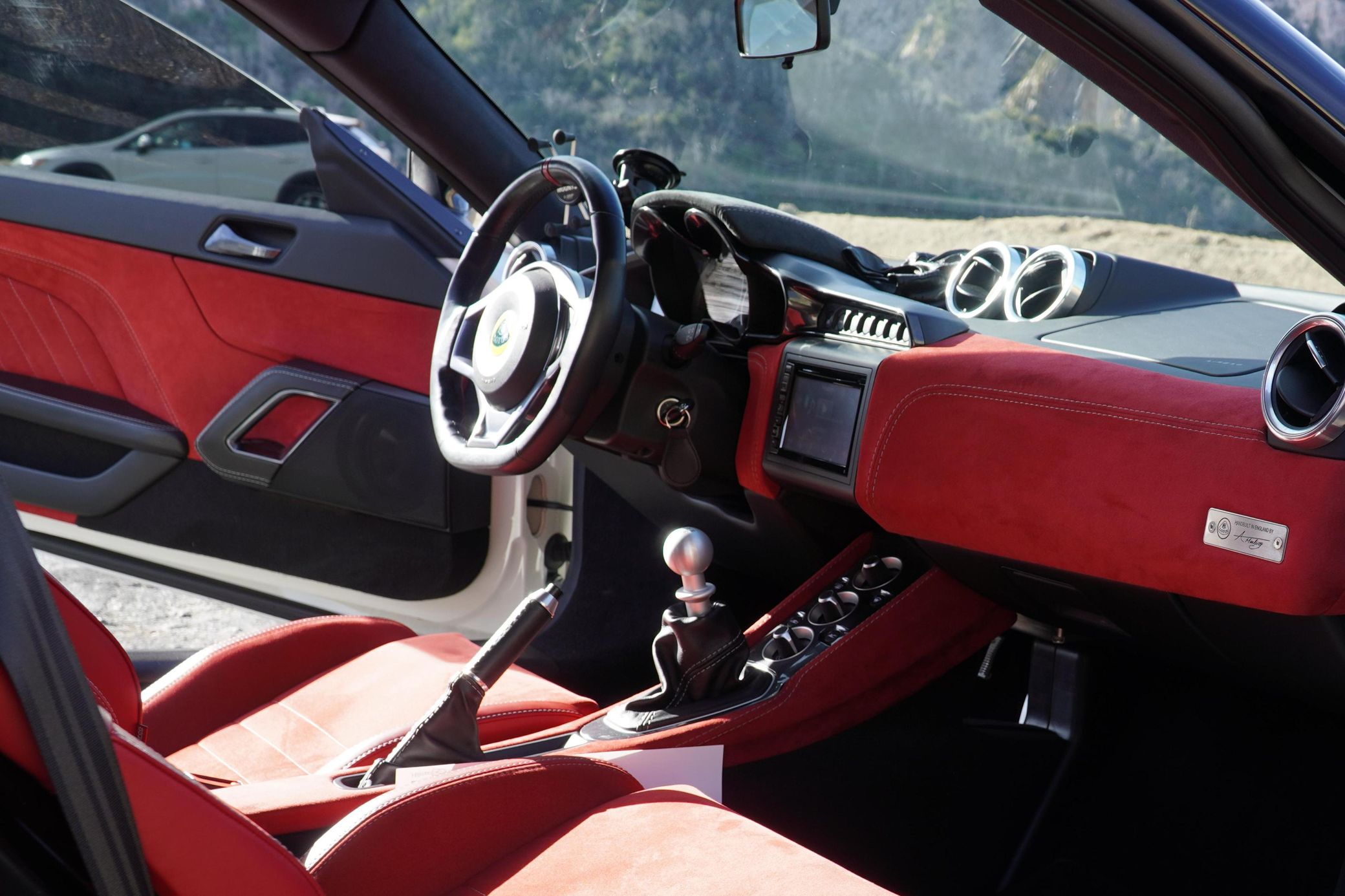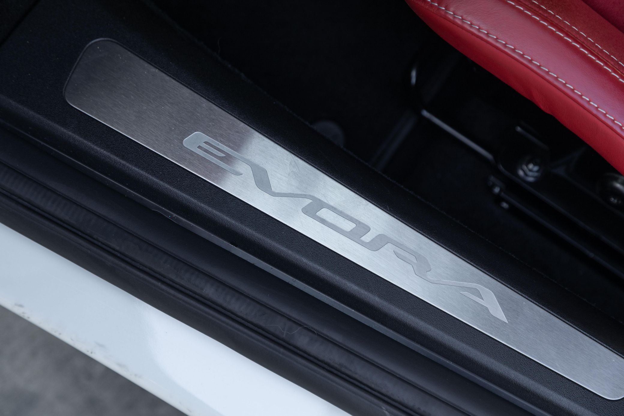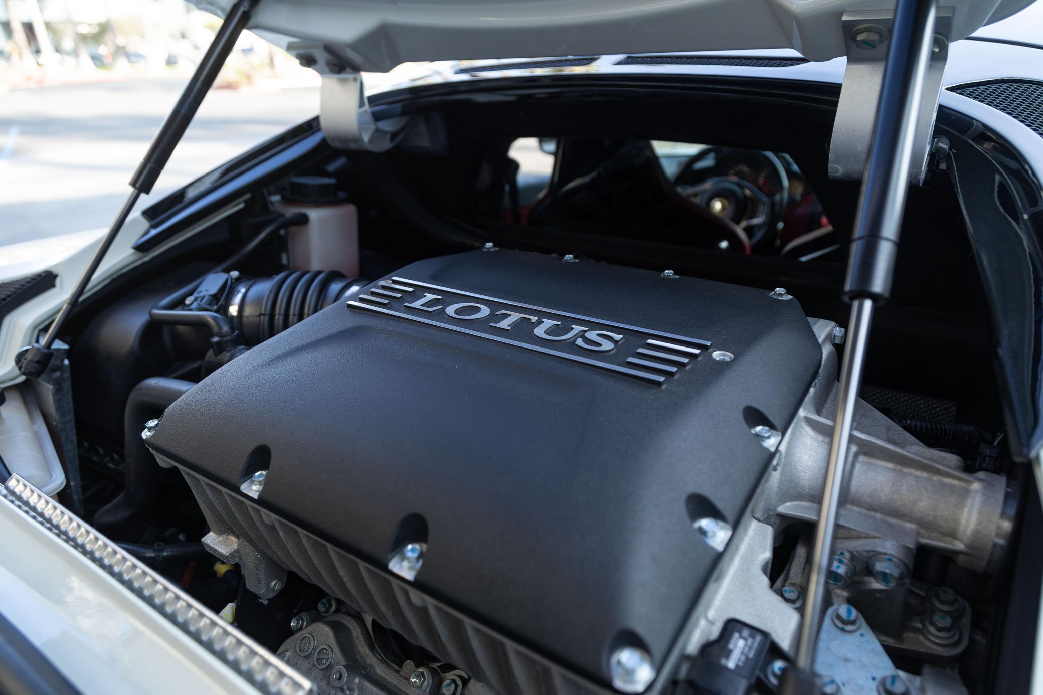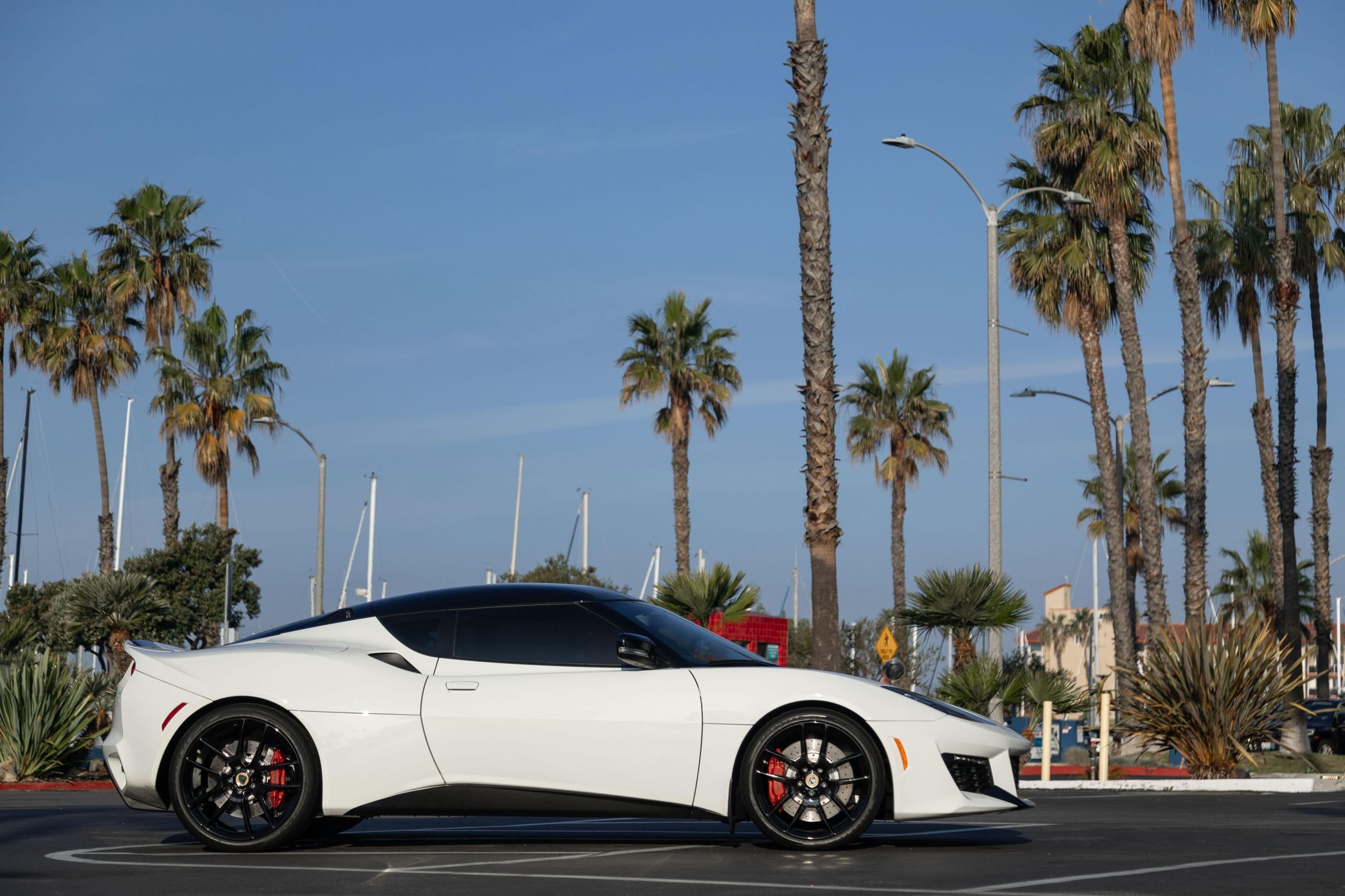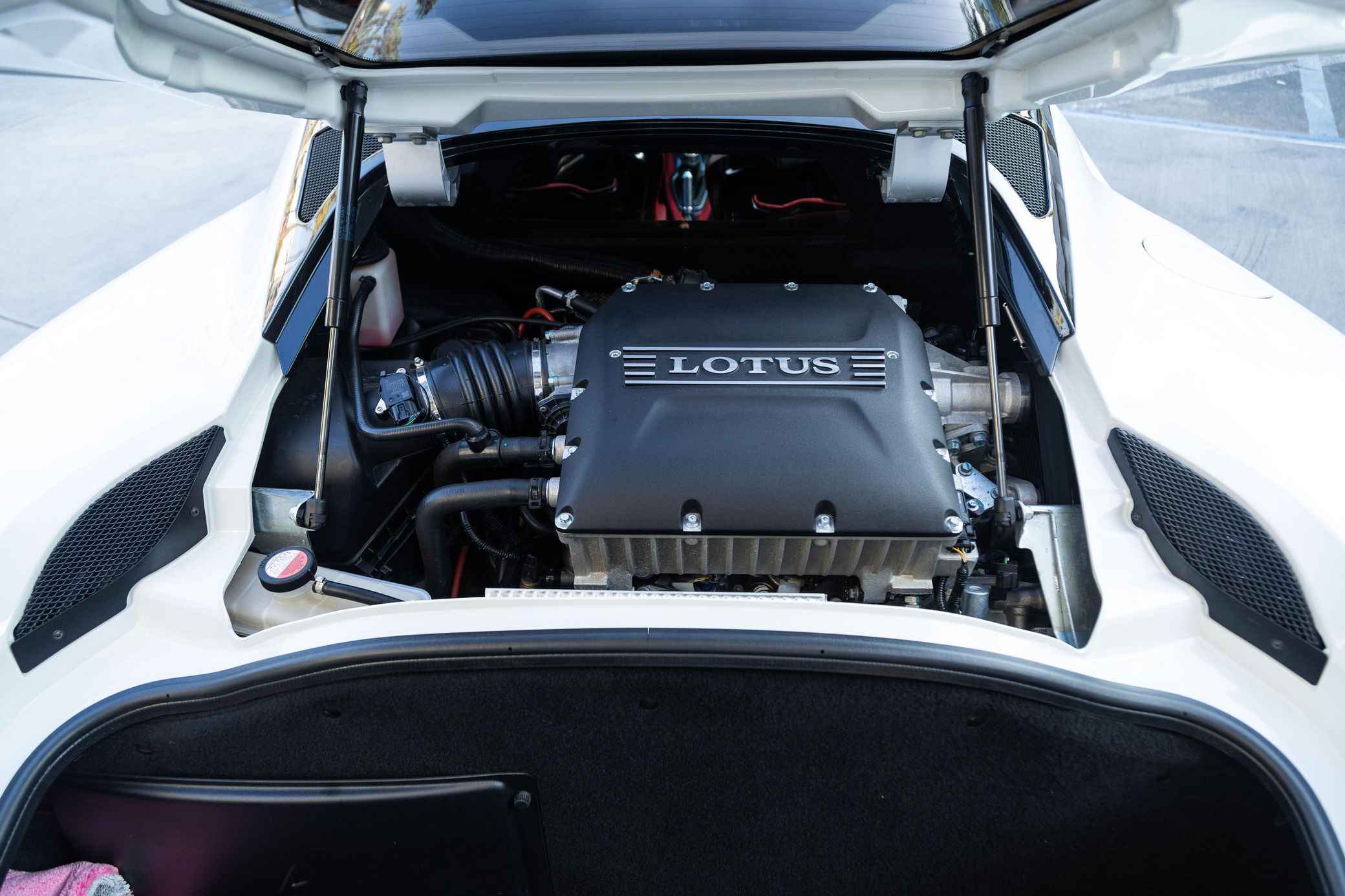THIS… is a 2017 Lotus Evora 400, finished in Metallic White with a red interior.This Evora is equipped with the desirable 6-speed manual transmission. The attached Carfax vehicle history report lists no accidents. Equipment includes the Black Pack, Alcantara Pack, cruise control, 19-inch front and 20-inch rear forged alloy wheels, and Bluetooth connectivity. The seller reports that the third catalytic converter has been removed. When the mid-engine Lotus Evora came out for the 2010 model year, it was the first all-new vehicle platform for a Lotus since the Elise debuted in 1995. The intent was to create a straightforward design that emphasizes a pure driving experience with agile handling in a stylish, lightweight road car. Power comes from a Toyota-derived supercharged 3.5-liter Toyota “2GR-FE” V6, rated at 400 horsepower and 302 lb-ft of torque. Power is sent to the rear wheels via a 6-speed manual transmission and rear limited-slip differential.