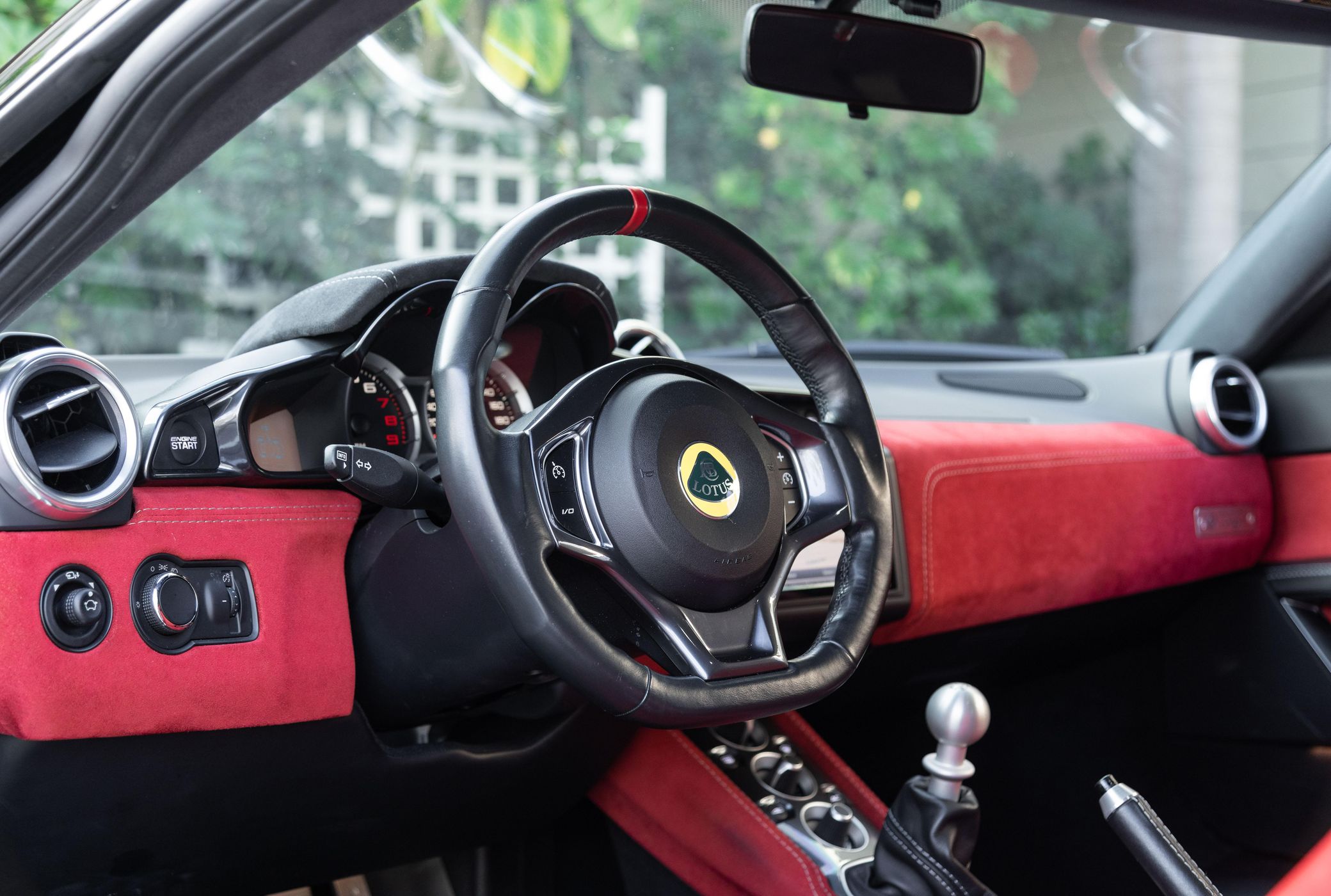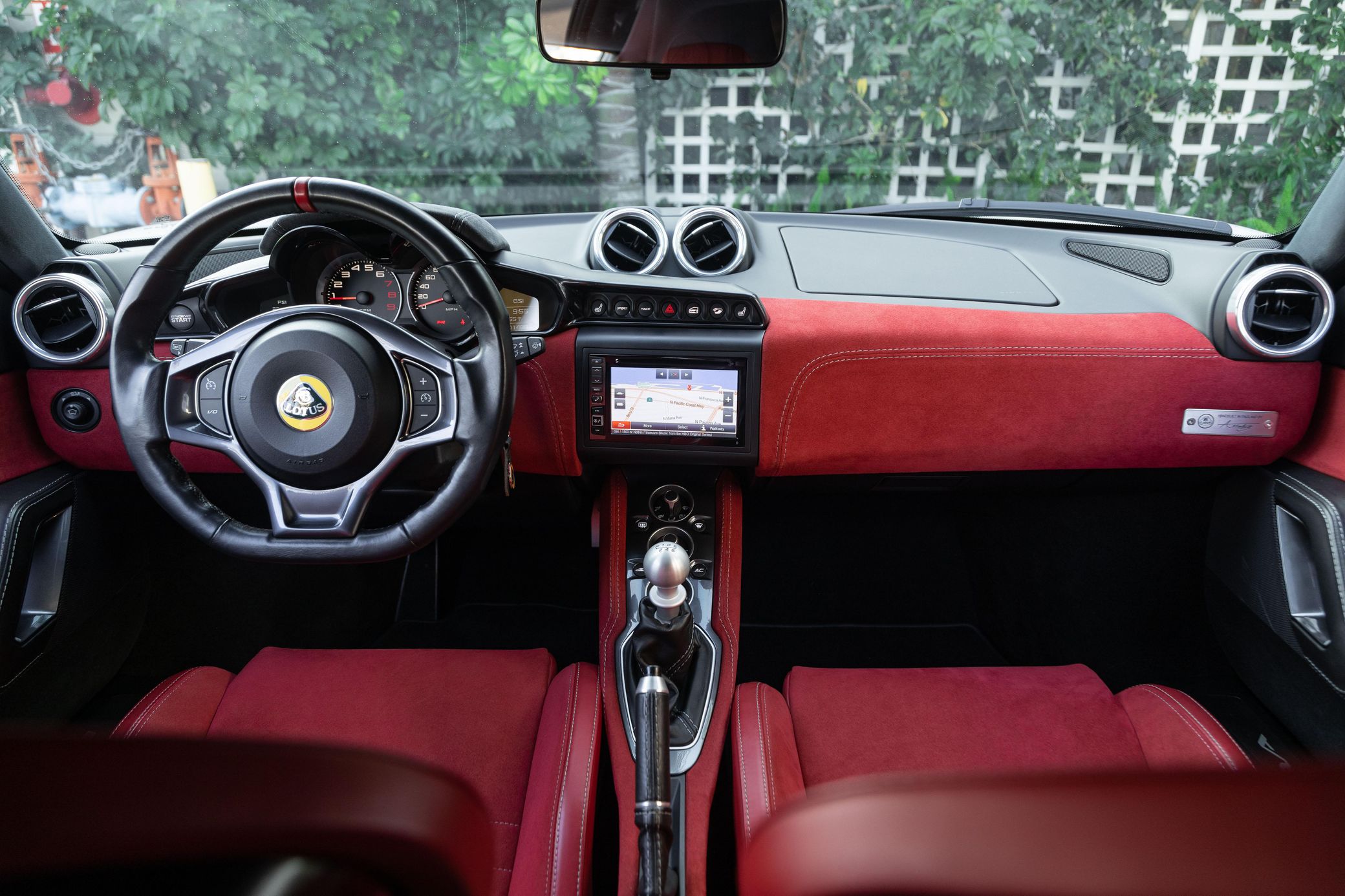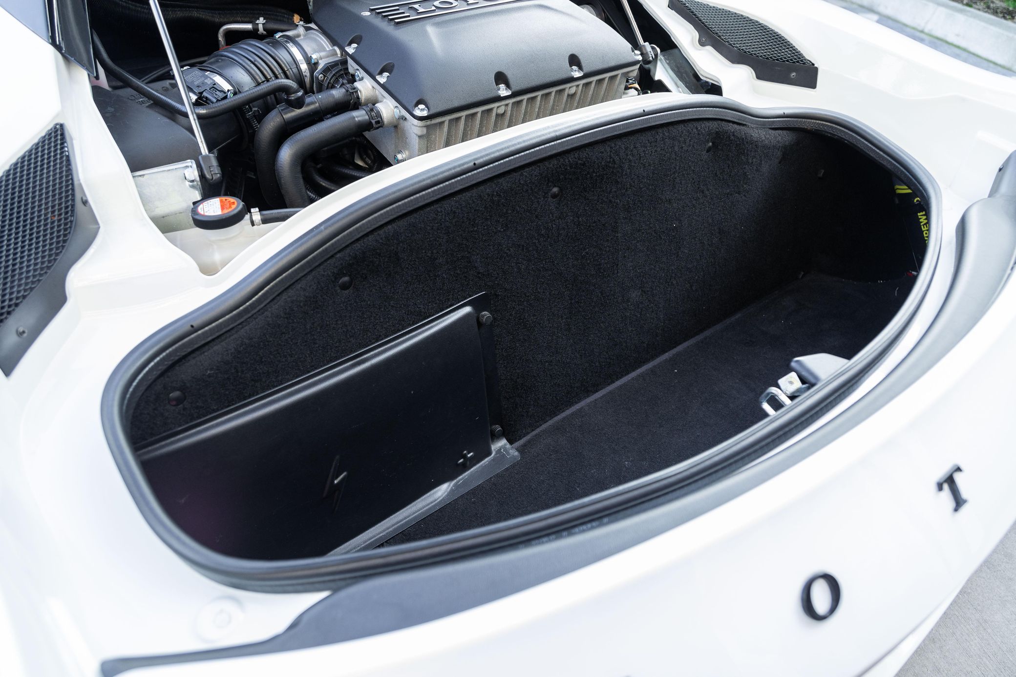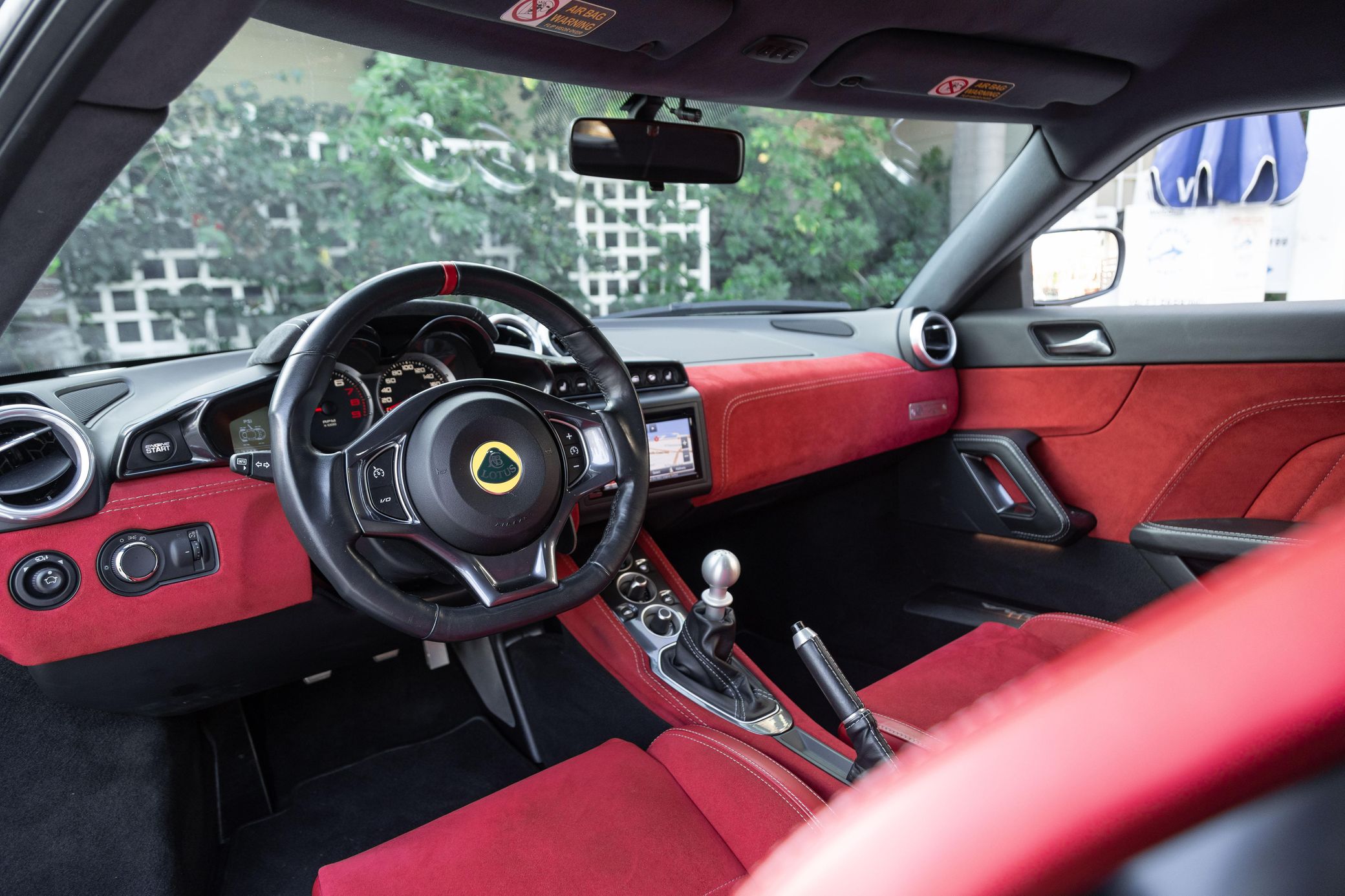 THIS… is a 2017 Lotus Evora 400, finished in Metallic White with a red interior.This Evora is equipped with the desirable 6-speed manual transmission. The attached Carfax vehicle history report lists no accidents. Equipment includes the Black Pack, Alcantara Pack, cruise control, 19-inch front and 20-inch rear forged alloy wheels, and Bluetooth connectivity. The seller reports that the third catalytic converter has been removed. When the mid-engine Lotus Evora came out for the 2010 model year, it was the first all-new vehicle platform for a Lotus since the Elise debuted in 1995. The intent was to create a straightforward design that emphasizes a pure driving experience with agile handling in a stylish, lightweight road car. Power comes from a Toyota-derived supercharged 3.5-liter Toyota “2GR-FE” V6, rated at 400 horsepower and 302 lb-ft of torque. Power is sent to the rear wheels via a 6-speed manual transmission and rear limited-slip differential.