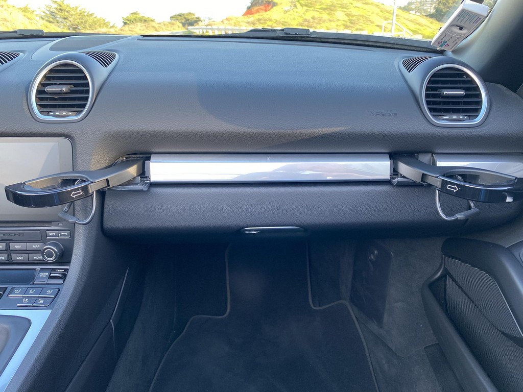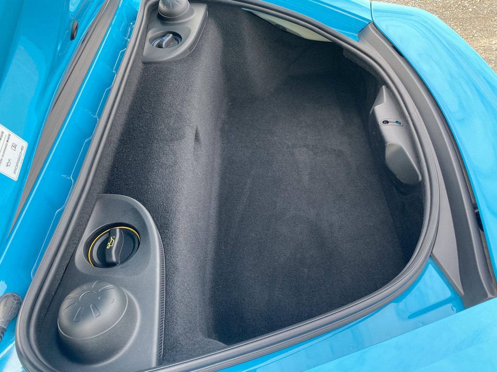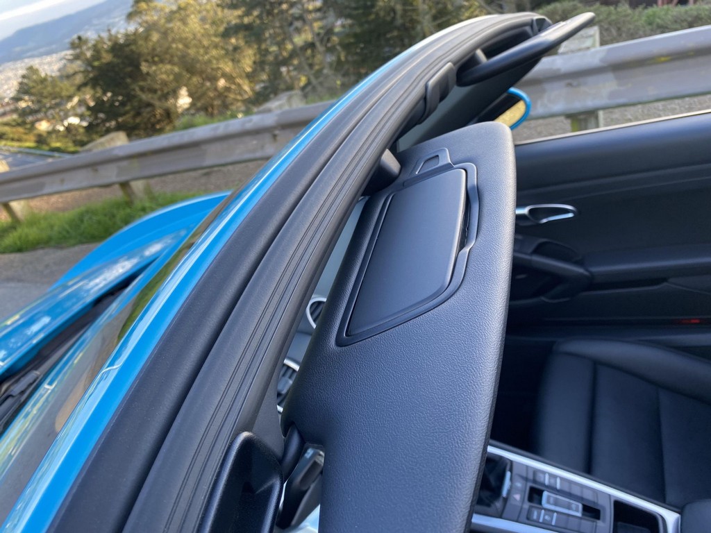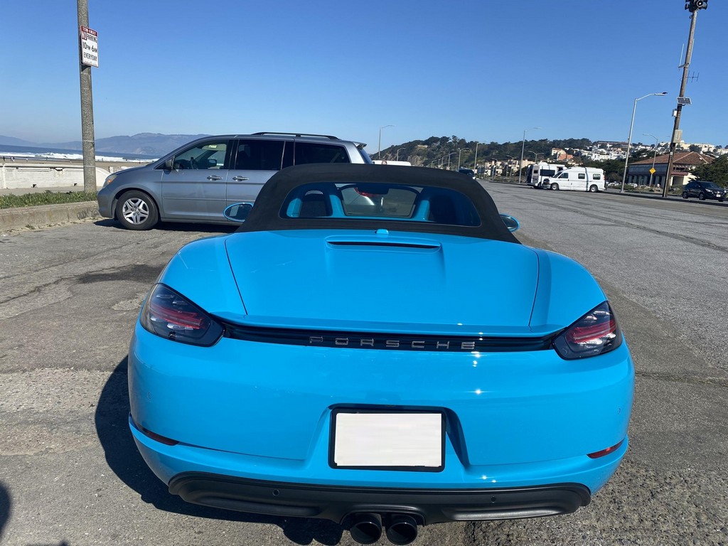 THIS… is a 2017 Porsche Boxster S, finished in Miami Blue with a black soft top and a black interior. The attached Carfax history report shows no accidents or mileage discrepancies in this Boxster’s past. Factory equipment includes the Premium Package Plus, which adds bi-xenon PDLS adaptive headlights, power-adjustable heated and ventilated sport seats with memory function, dual-zone automatic climate control, ambient lighting, rain-sensing wipers, and the Porsche Entry & Drive keyless system. Other notable equipment includes 20-inch Carrera S wheels, a body-colored roll bar, black sport tailpipes, and more as listed below. Modifications reported by the seller are limited to Euro-spec white side reflectors and a set of AlloyGator wheel curb protectors. The “982” generation of the mid-engine Porsche 718 Boxster introduced a new range of turbocharged 4-cylinder engines, replacing the 6-cylinder powerplants of previous Boxster models. The intent was to increase performance and efficiency but retain the nimble handling and distinct styling of past Boxsters. Power comes from a turbocharged 2.5-liter flat-4 engine, rated at 350 horsepower and 309 lb-ft of torque. Output is sent to the rear wheels via a 6-speed manual transmission.