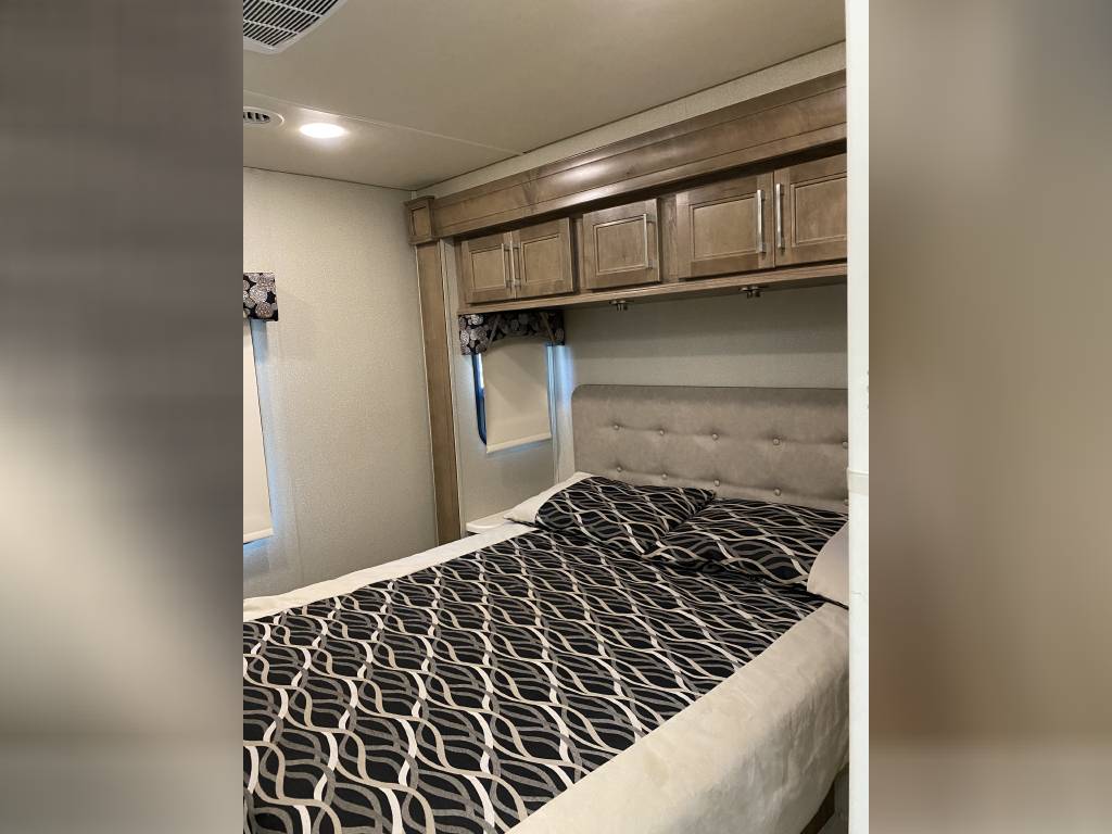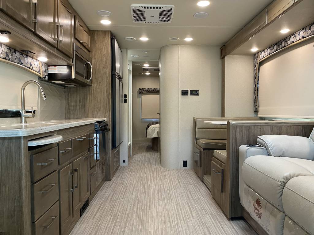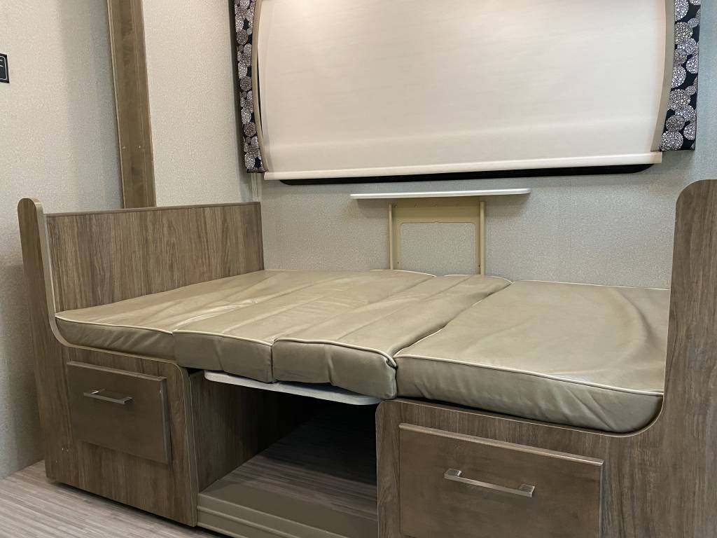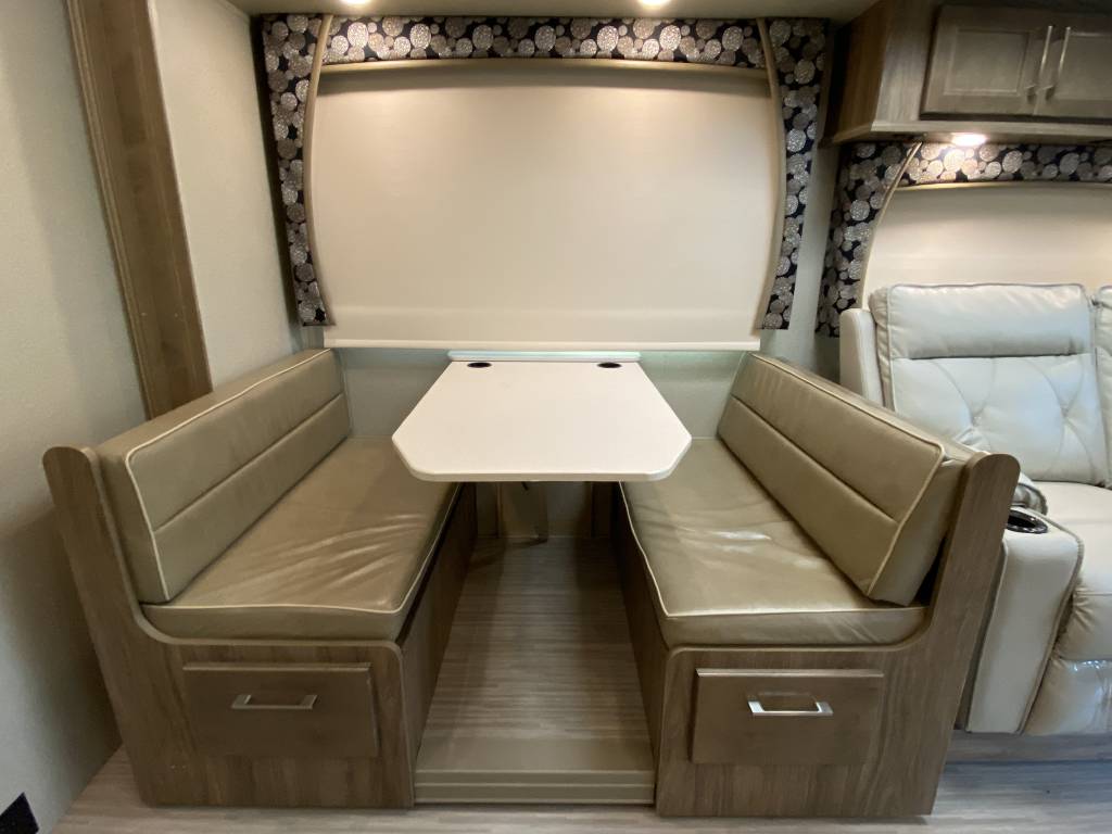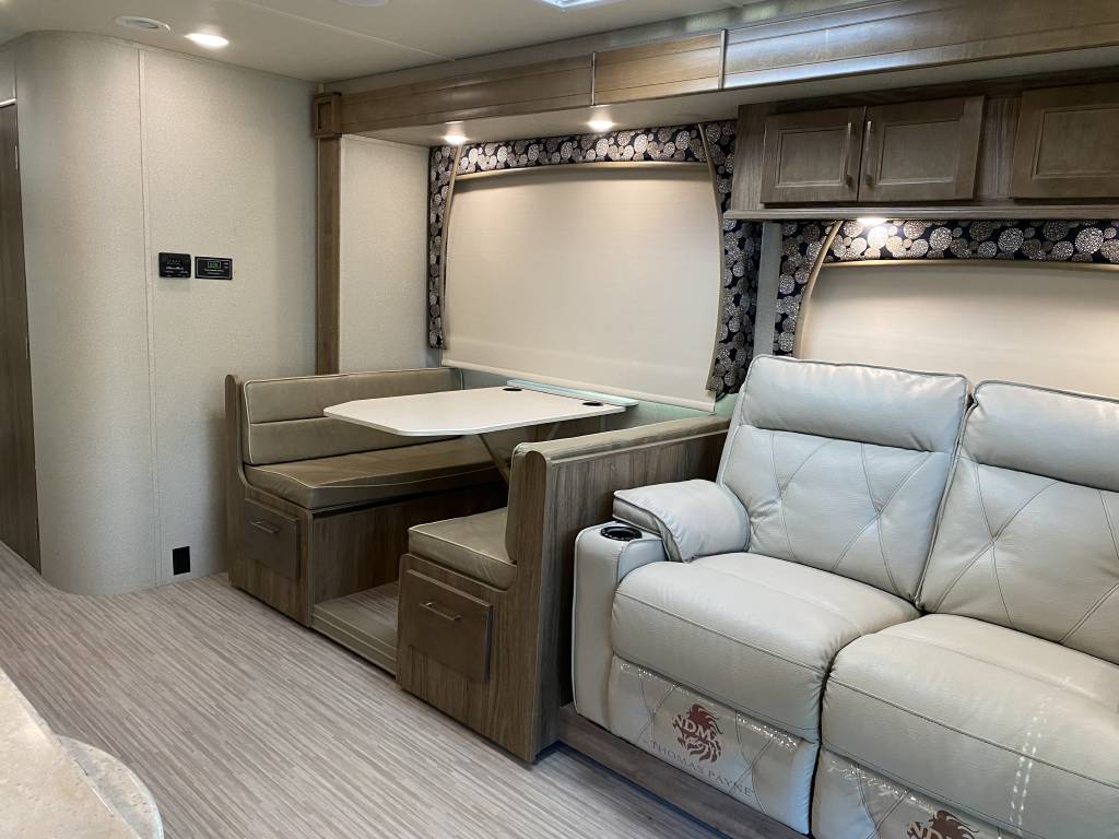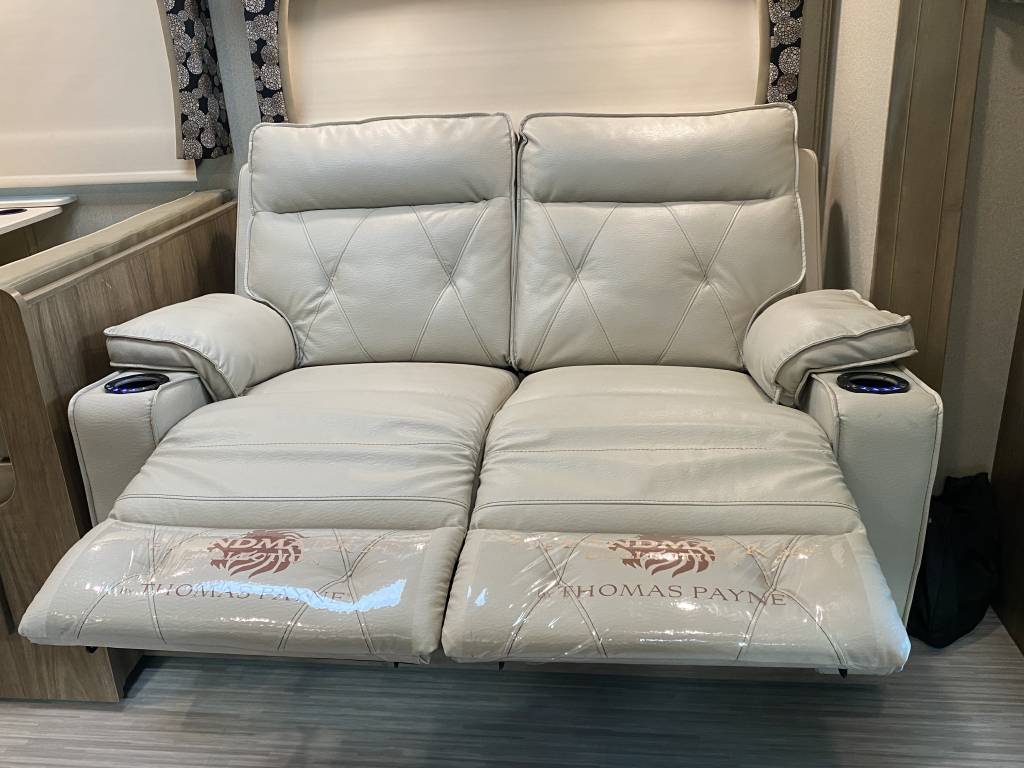 – Thomas Payne theater seating with heated seats, integrated lights, and massage functionality. (Also comes with the original Jack knife sleeper sofa bed)