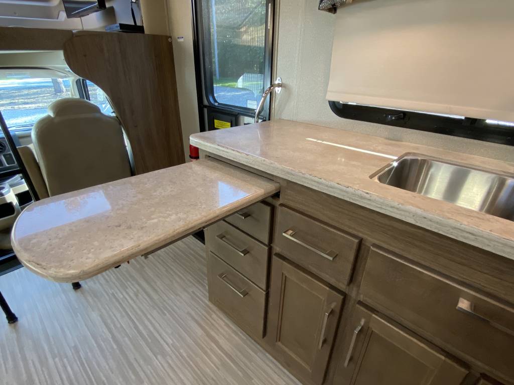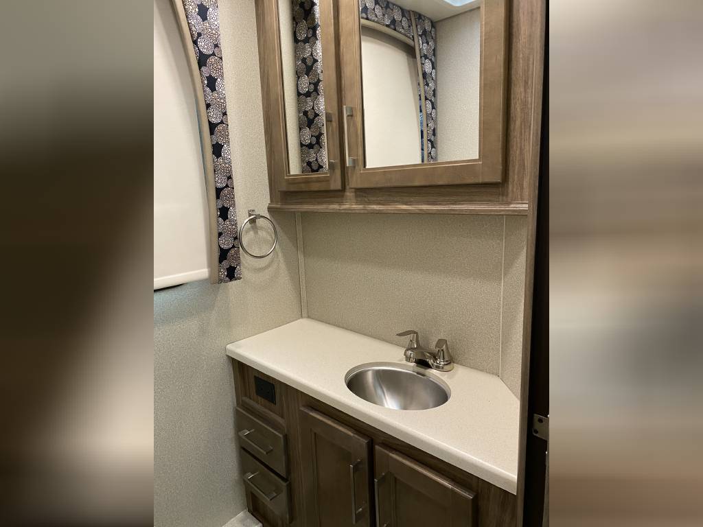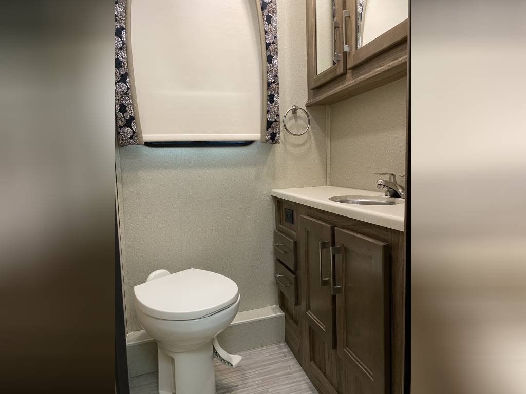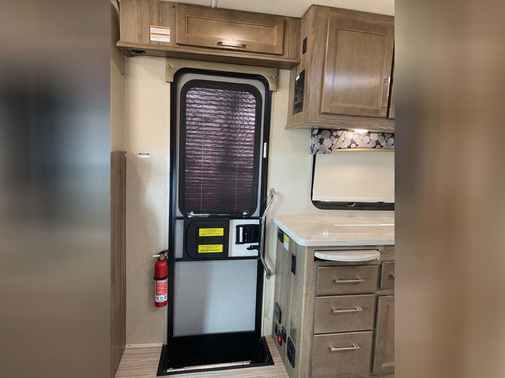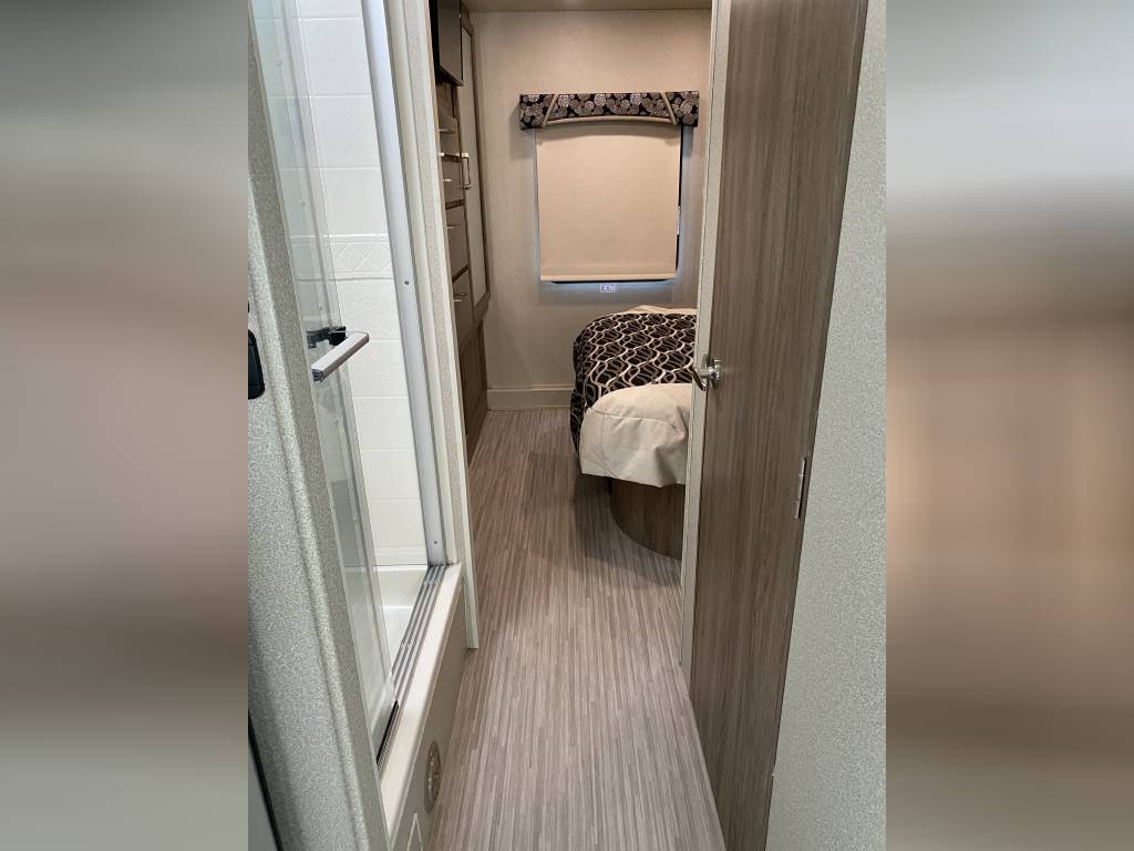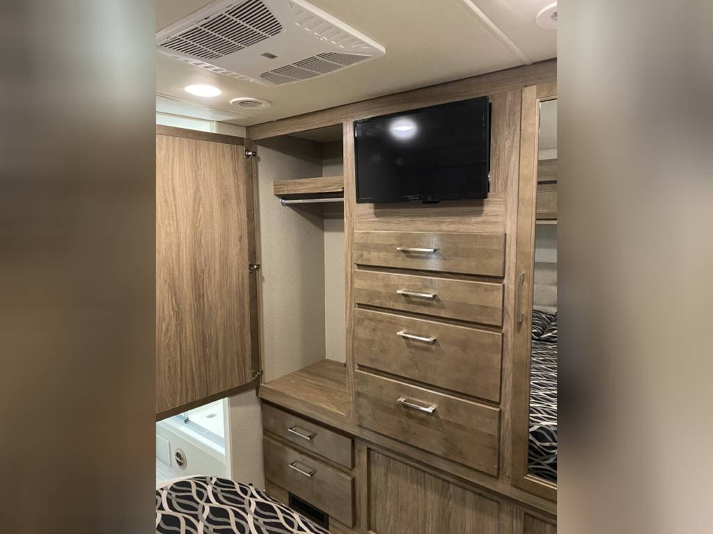 – Thomas Payne theater seating with heated seats, integrated lights, and massage functionality. (Also comes with the original Jack knife sleeper sofa bed)