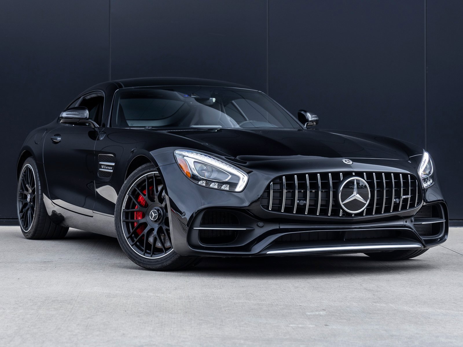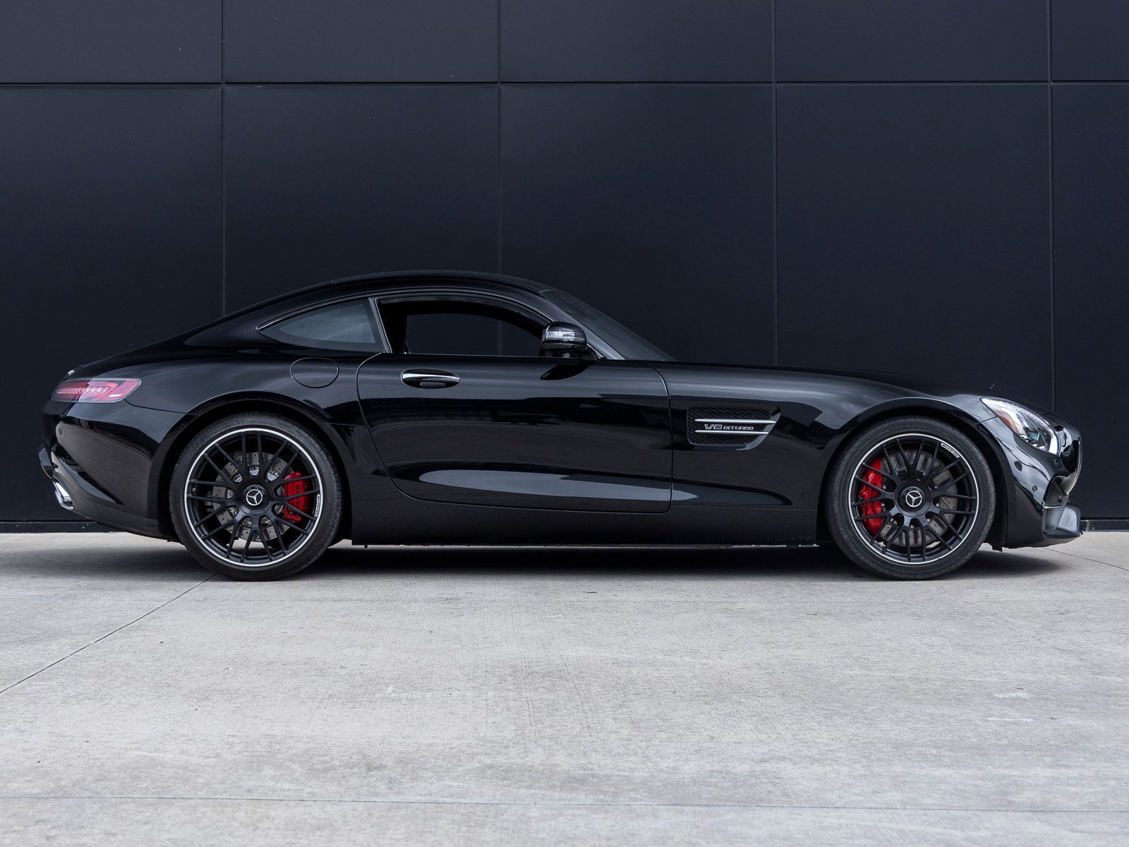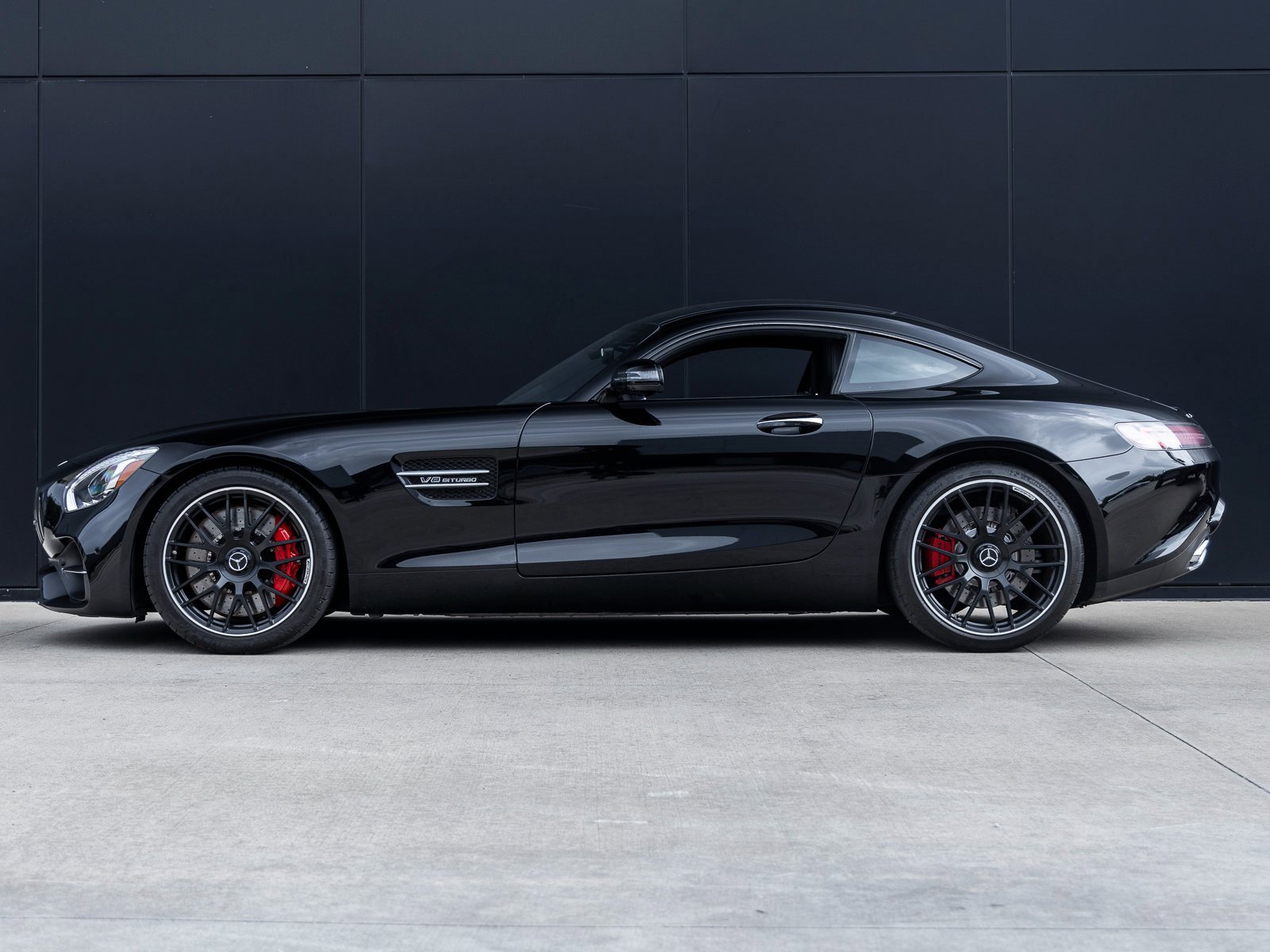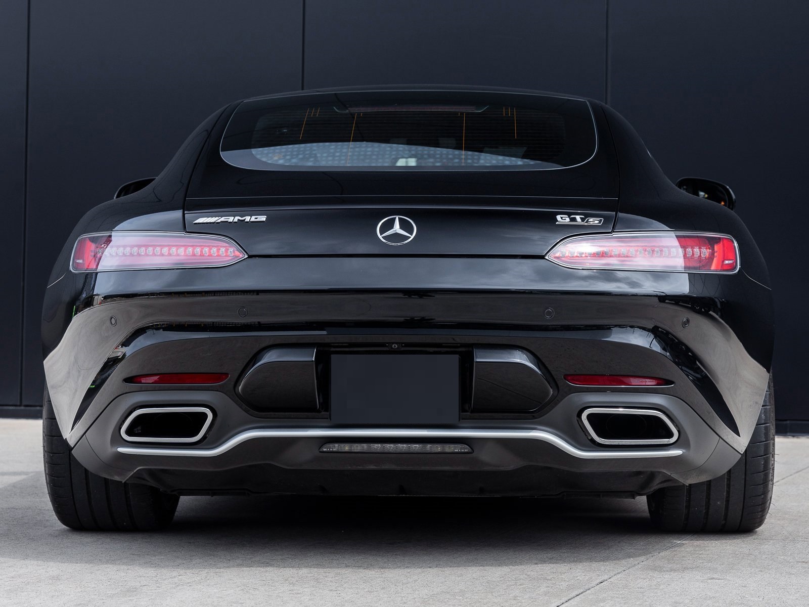 2018 Mercedes-Benz AMG® GT S in Black over a Black interior with 9,731 miles. The AMG® GT S is powered by a 4.0L Twin-Turbocharged V8 engine producing 515 hp and 494 lb-ft of torque through a 7-Speed Automatic Transmission.