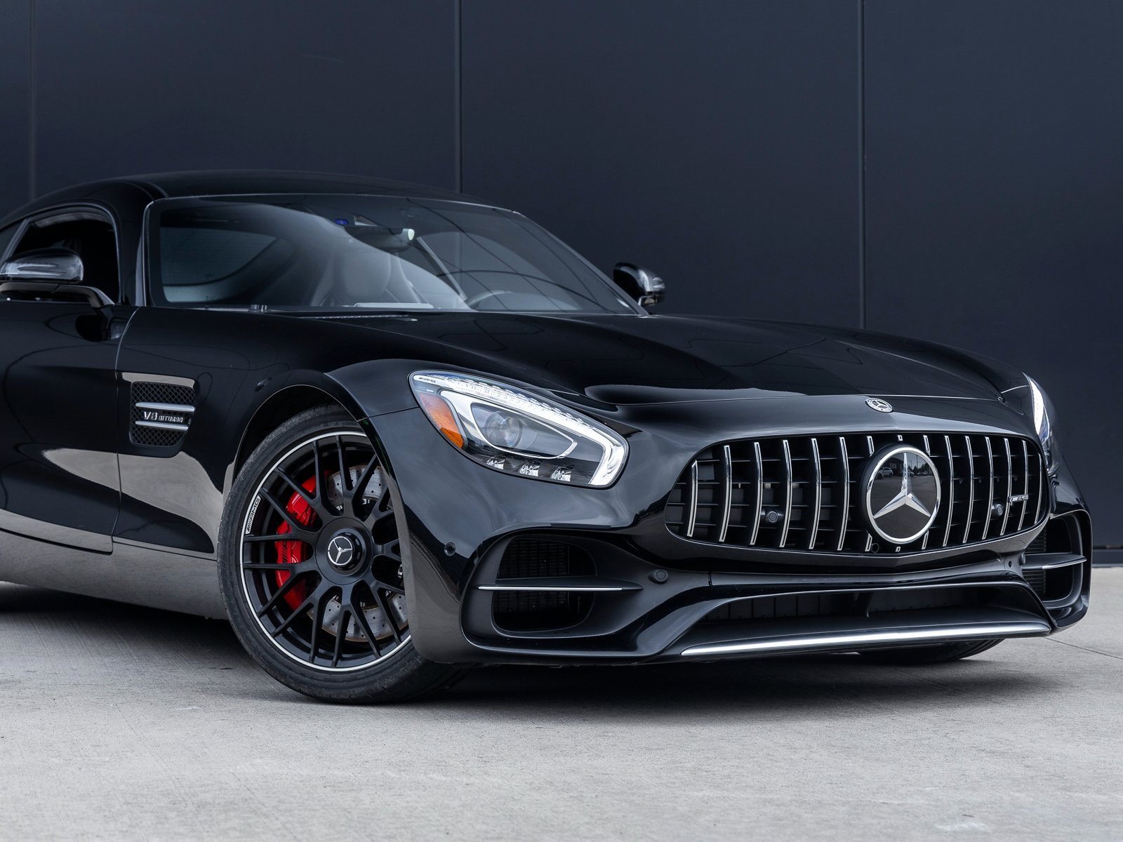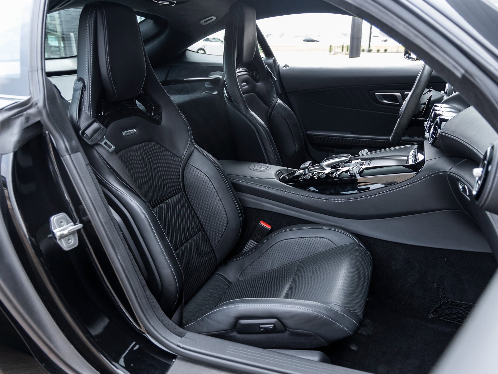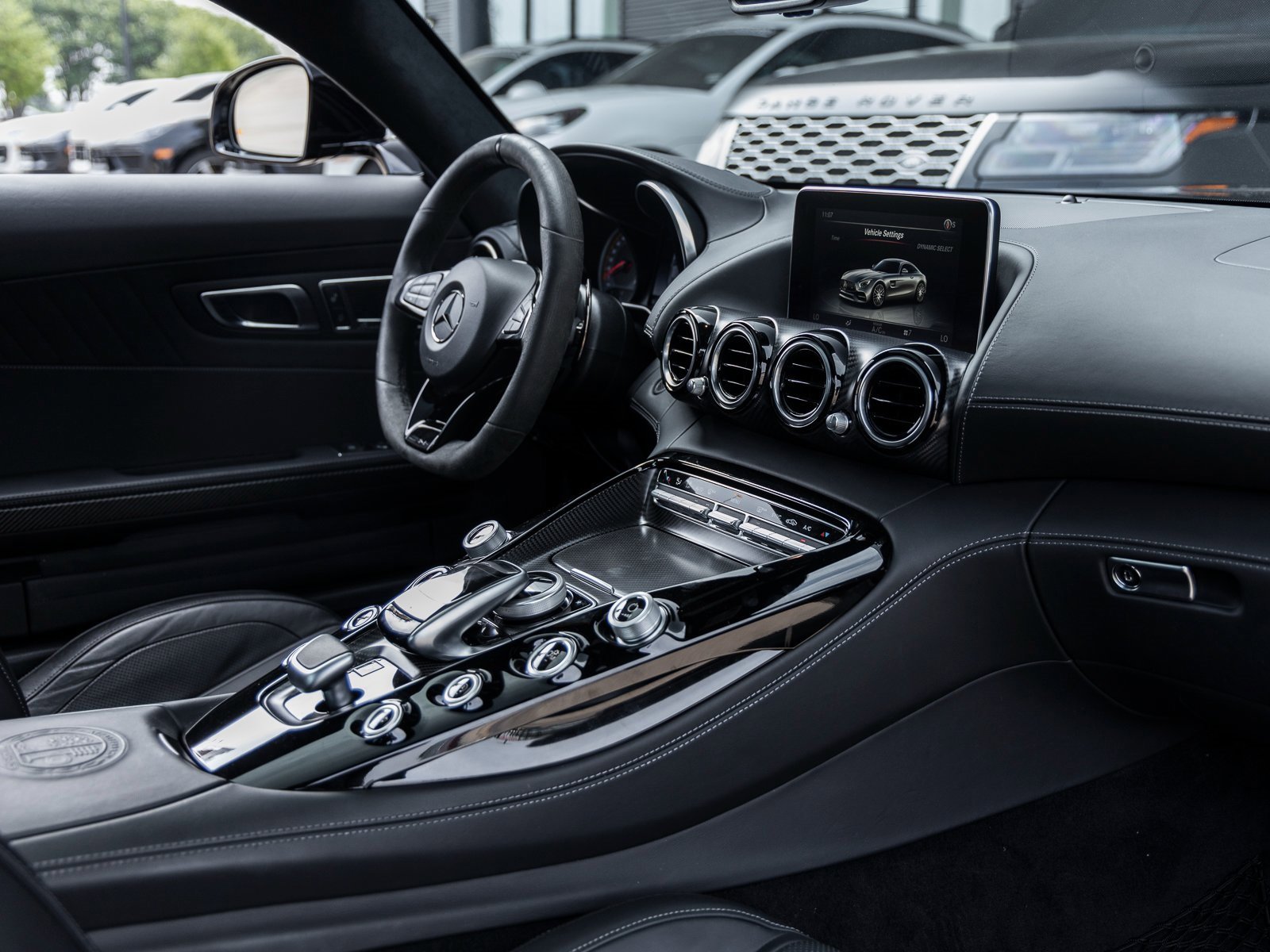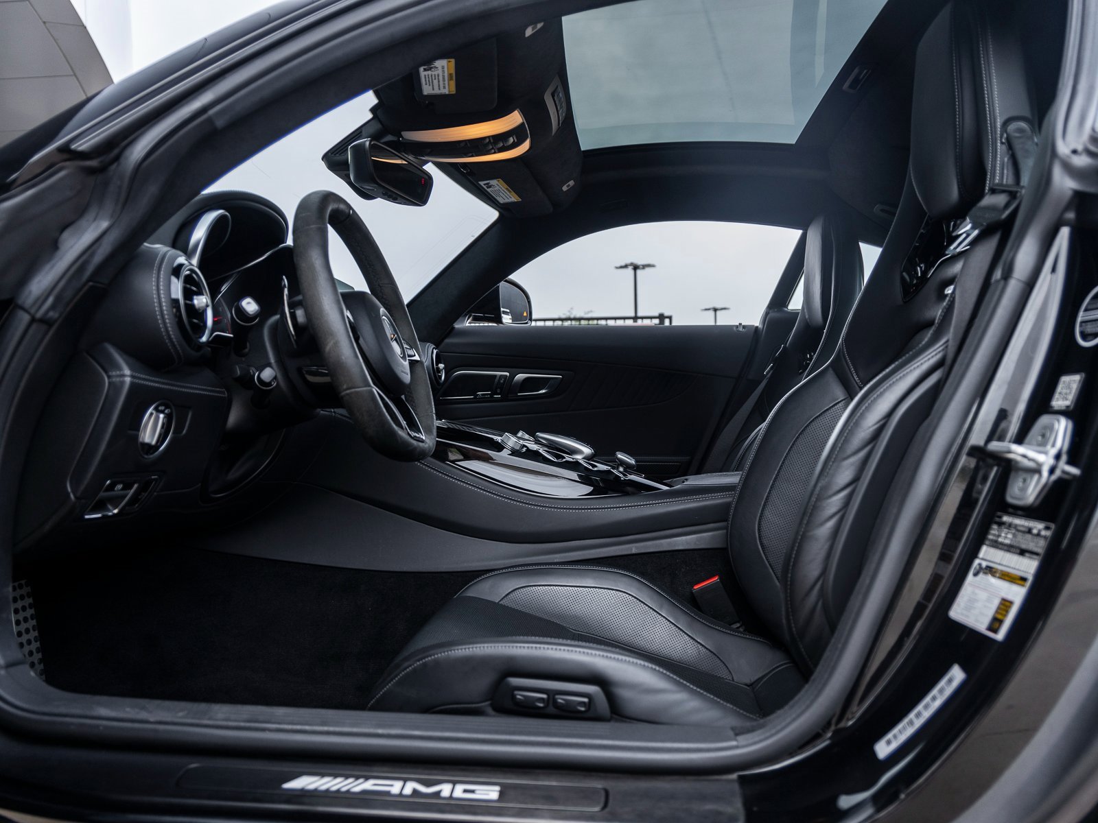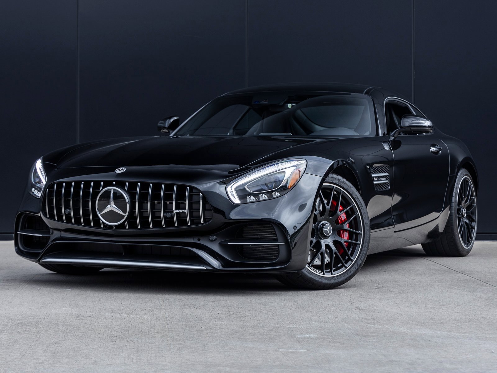 2018 Mercedes-Benz AMG® GT S in Black over a Black interior with 9,731 miles. The AMG® GT S is powered by a 4.0L Twin-Turbocharged V8 engine producing 515 hp and 494 lb-ft of torque through a 7-Speed Automatic Transmission.