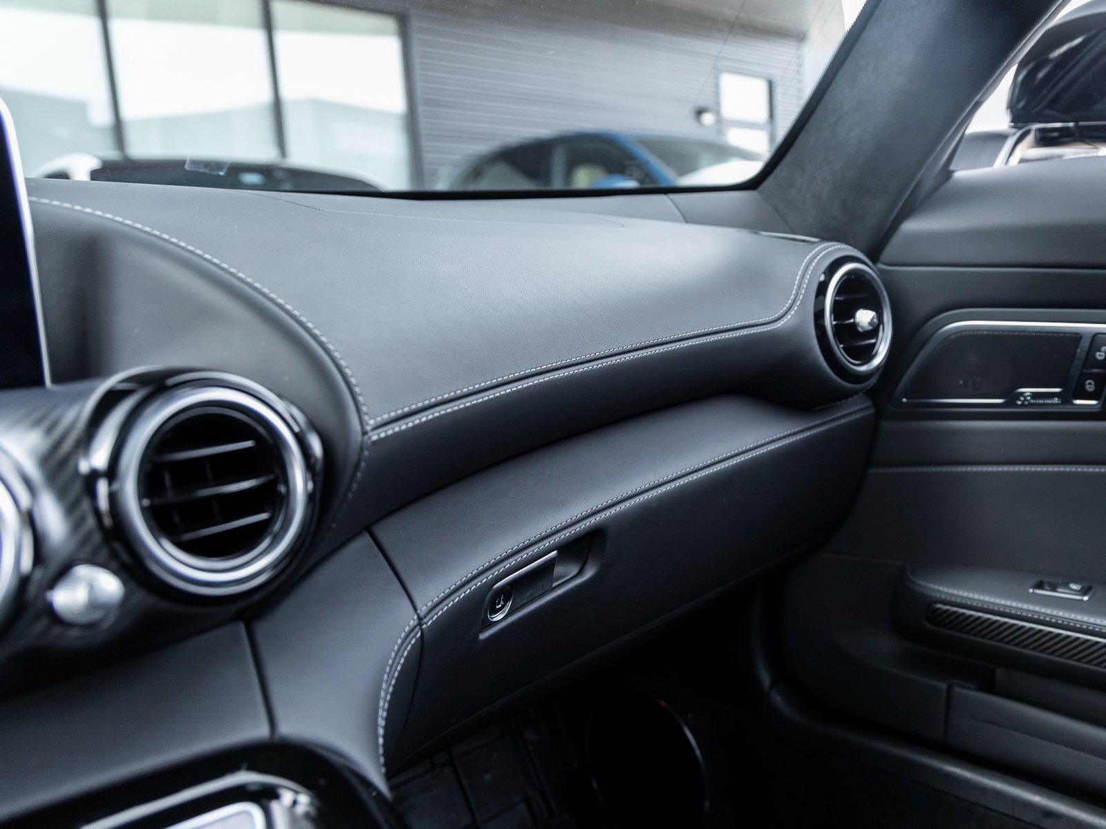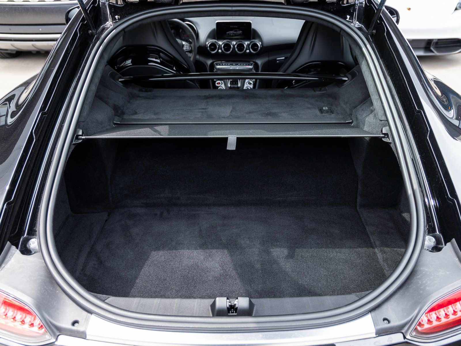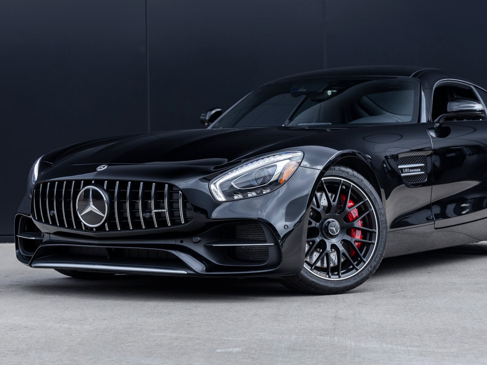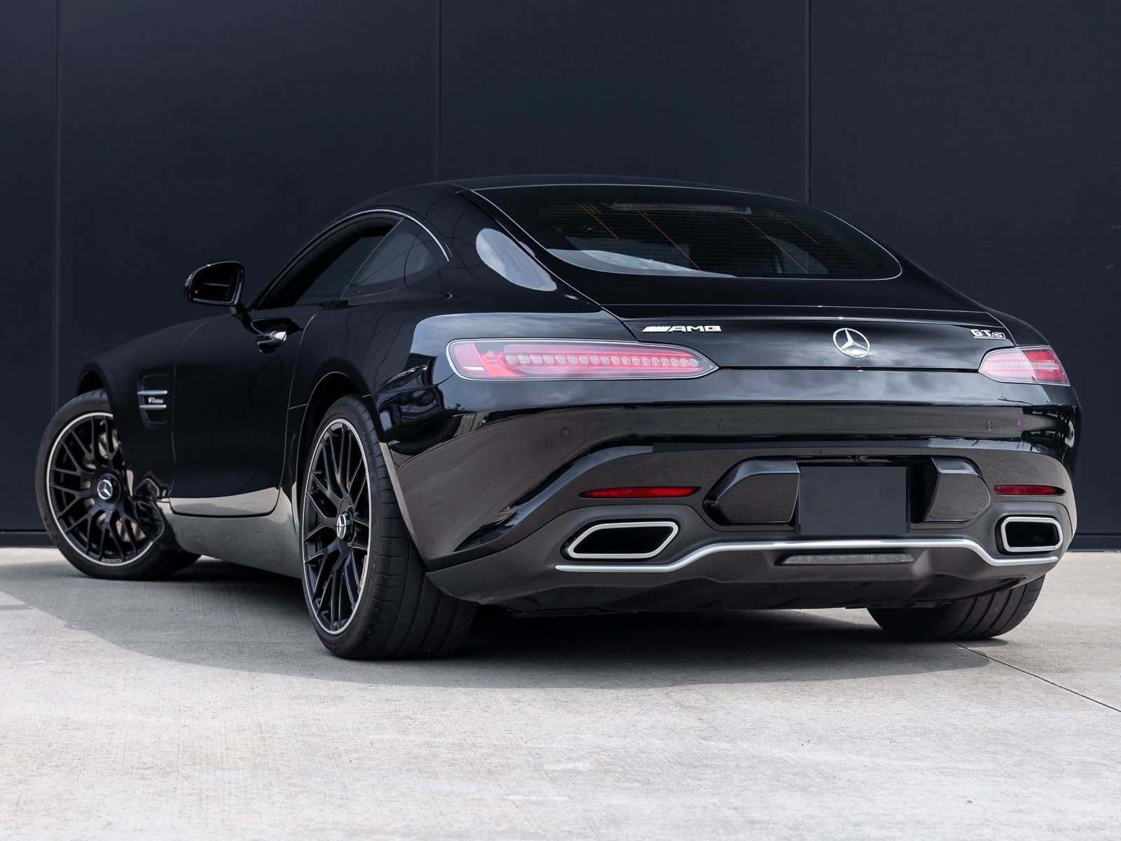 2018 Mercedes-Benz AMG® GT S in Black over a Black interior with 9,731 miles. The AMG® GT S is powered by a 4.0L Twin-Turbocharged V8 engine producing 515 hp and 494 lb-ft of torque through a 7-Speed Automatic Transmission.
