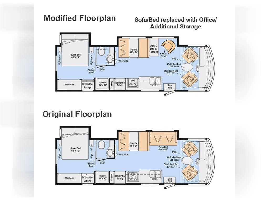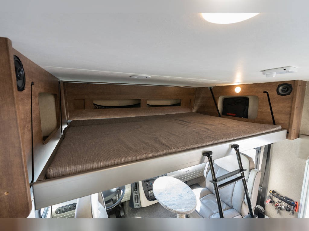 Upgraded with modern amenites and ready to hit the road while staying connected! Very clean, 14,900 miles on ODO, Triton V10 with 6-speed trans. Kitchen has been remodeled/updated to a brighter, more modern feel. Upgraded electrical system with larger capacity Battle Born lithium batteries & larger Victron Energy inverter/charger that’s wired to all the outlets (originally just fridges and TV) so everything has power when using just the batteries (AC excluded; that still requires shore power or generator). Sofa has been removed and replaced with an office area that is equipped with a pull-out desk, outlets, and padded trays to keep electronics safe and charged while traveling.