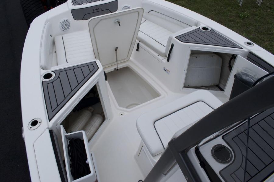 Based on Yamaha’s widely popular 210 sport boat models, the 210 FSH is well-suited for rougher waters and delivers the added peace of mind that comes with dual engines. And because the dual engines and driveline are housed in the hull underneath the captain’s leaning post, the boat provides a true, open 360-degree experience that is perfect for fishing. The boat includes all the features that fishing enthusiasts require, along with family features that are perfect for an entire day out on the water to include watersports, swimming, and lounging – all in the same boat, and at a competitive price.